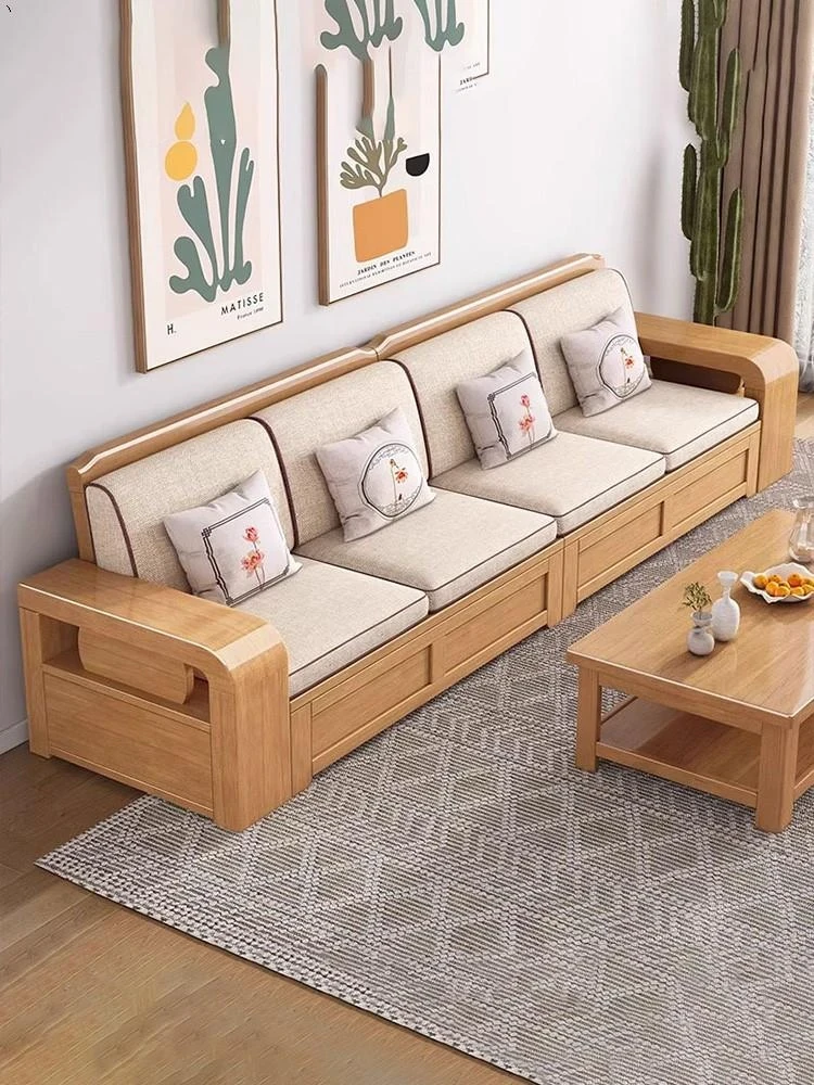 モダンでシンプルな中式ウォールナット無垢材ソファ、冬夏両用の収納機能付き!小型住宅にもぴったりのリビング用コンビネーションソファ。快適な空間を演出し、スタイリッシュにお部屋を彩ります!