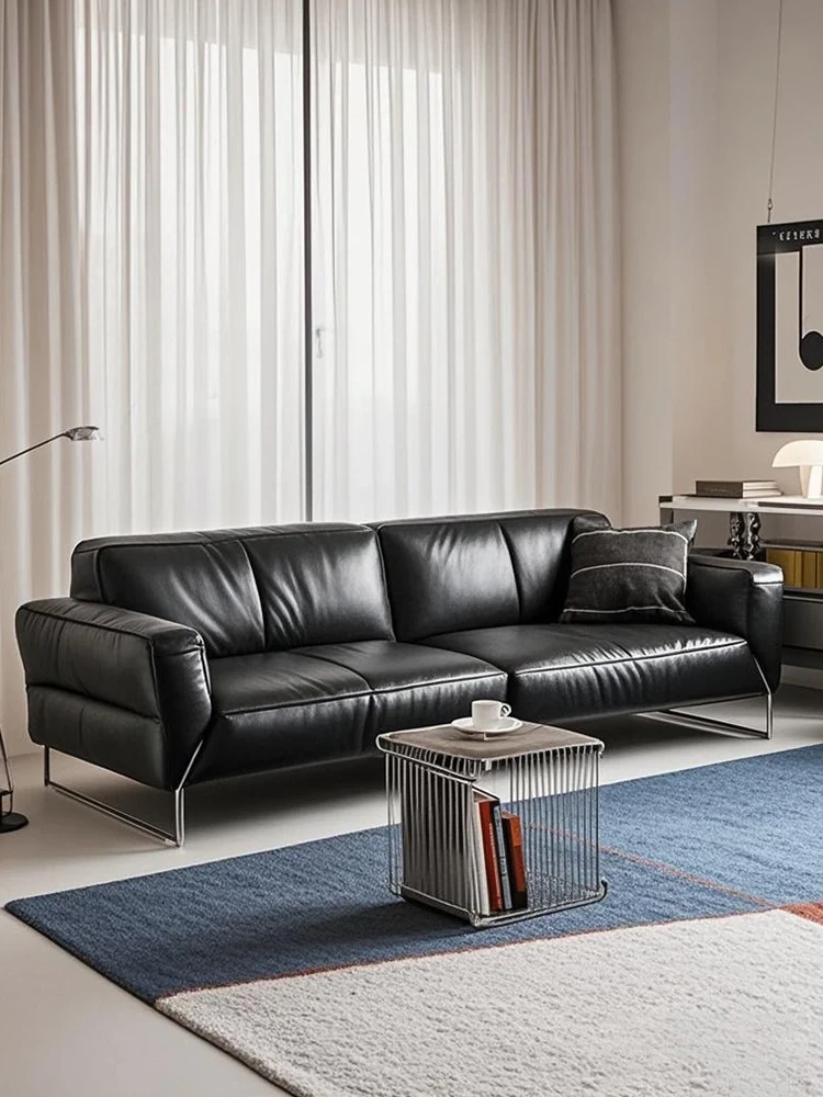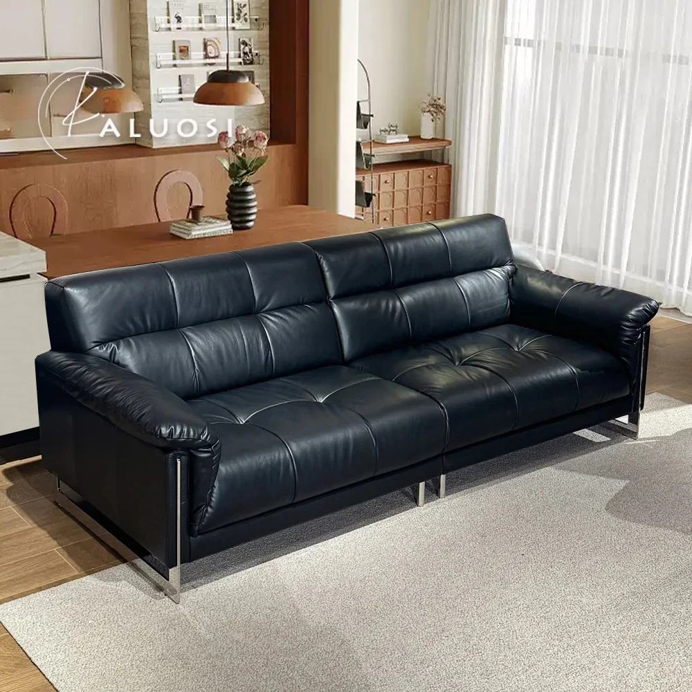 イタリアンミニマリズム真皮ソファ|モダンでシンプルな高級感|一級牛革使用|大小様々なお部屋にフィット|ダウン&スチールフレームで快適さと耐久性を両立!