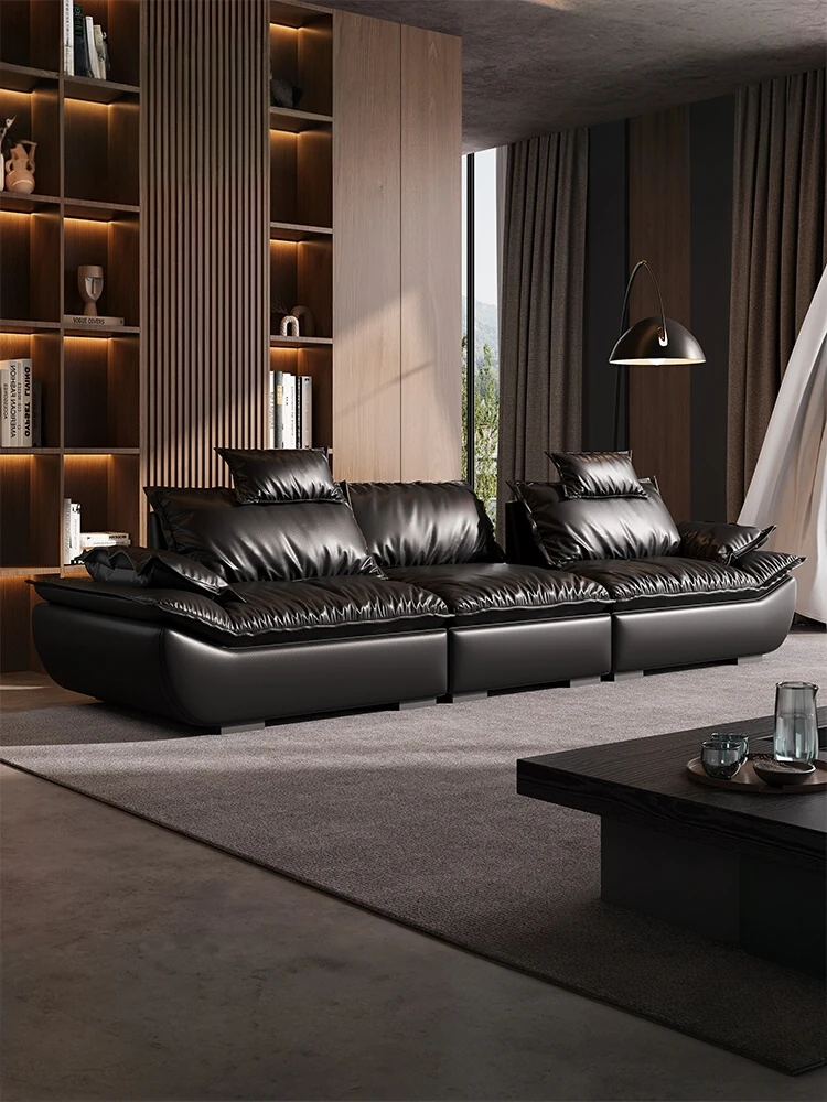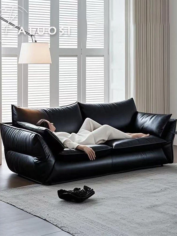 黒糖ソファ イタリアンミニマリズム風 真皮レザー 使用のトップグレード牛皮製 ブラック クラウドデザイン ソファ - おしゃれで快適、どんなインテリアにもマッチ!
