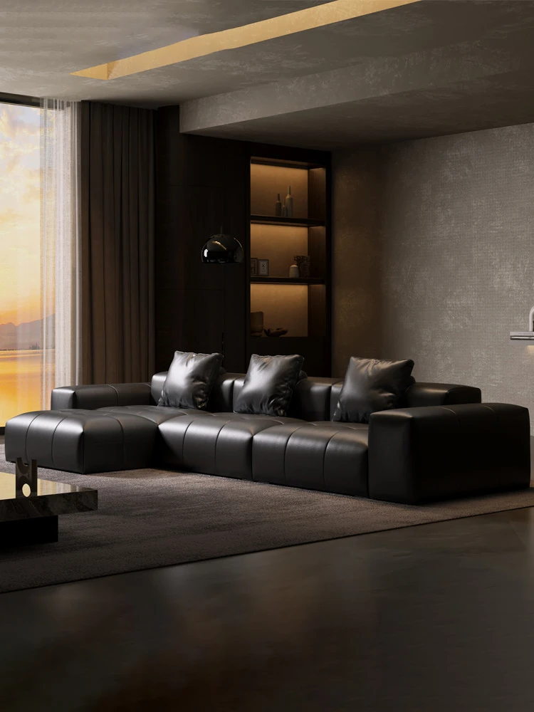 サバ ピクセルソファ イタリアン本革 モダンミニマリスト リビング用 大型豆腐ブロック セットソファ - スタイリッシュで快適な空間を演出!