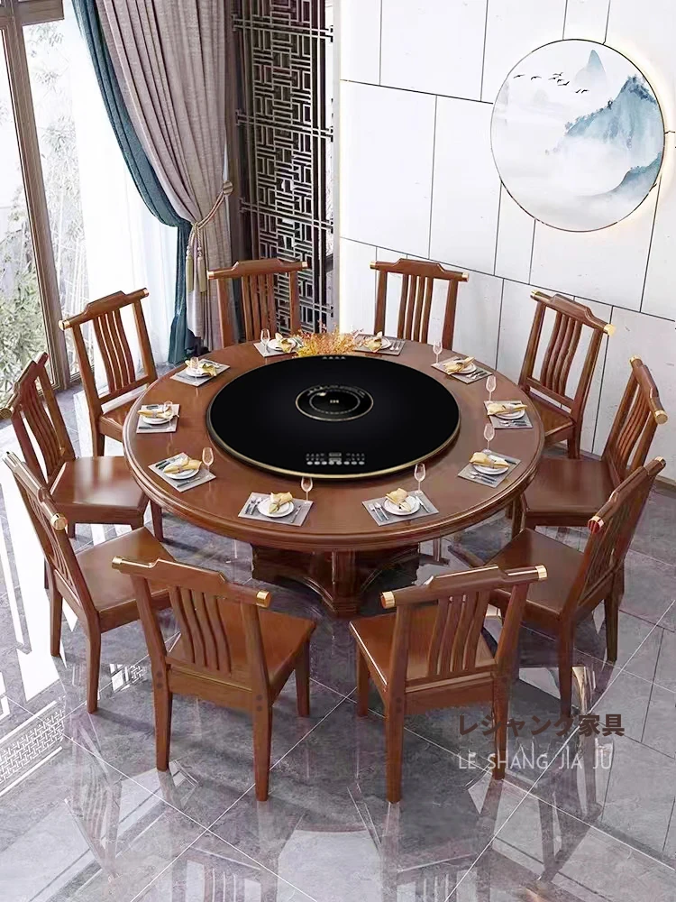 温かい料理を楽しむ!円形保温電動回転テーブル - 火鍋と電磁炉が一体化した商業用岩板ダイニングテーブル。家族や友人と特別なひとときを演出する、便利でスタイリッシュなアイテムです!