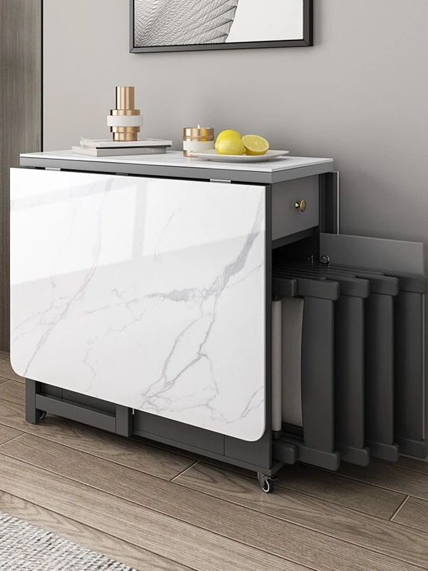 {香港送料無料} 北欧風シンプルでラグジュアリーな伸縮式折りたたみ岩板ダイニングテーブルセット - モダンデザイン、狭いスペースにも最適!
