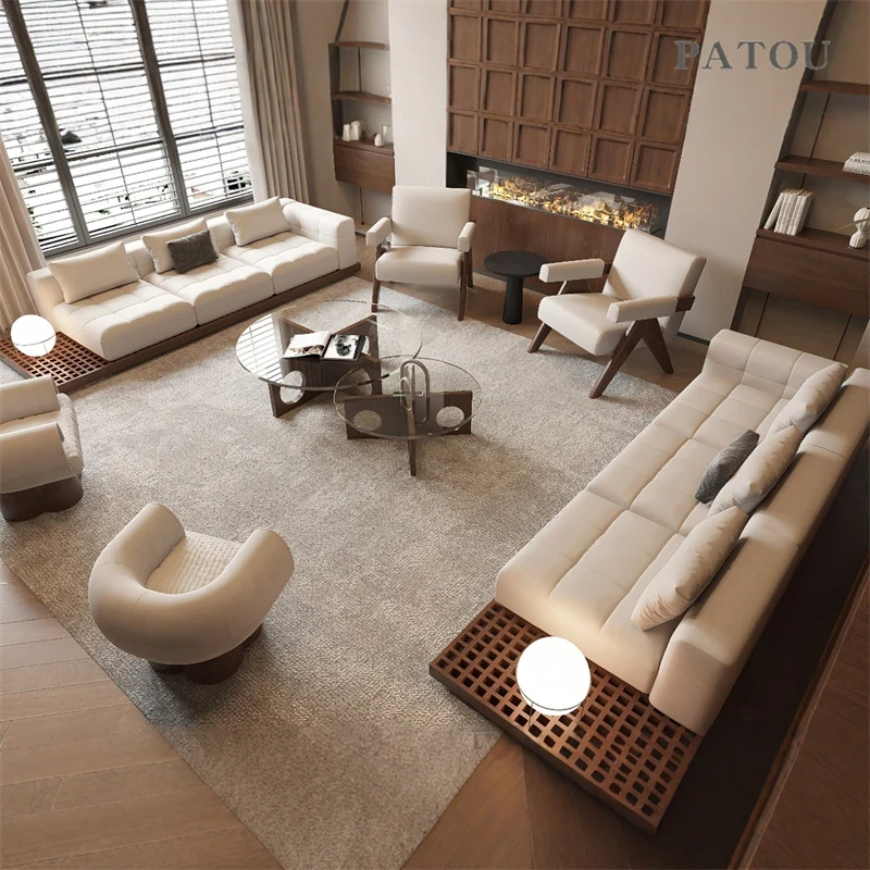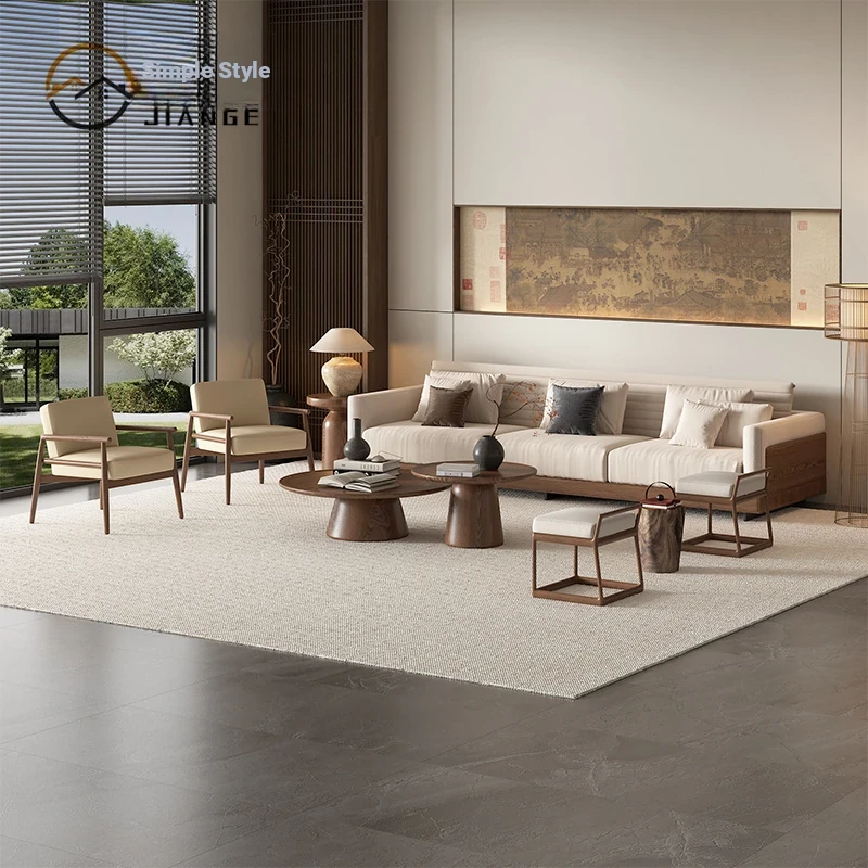 Modern Minimalist Solid Wood Sofa for Villa Living Room - New Chinese Style, Perfect for Showroom Reception Areas and Sample Rooms.