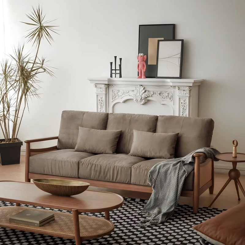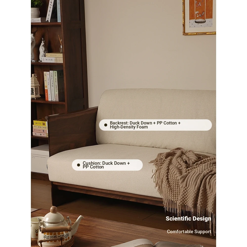 Modern Minimalist North American Black Walnut Sofa - Solid Wood Fabric Couch for Contemporary Living Rooms, Perfect Blend of Style and Comfort