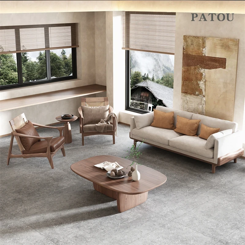 Modern Minimalist Vintage Solid Wood Sofa Set for Living Room, Hotel, and Guesthouse – Retro Style Sofa and Coffee Table Combination for Reception Areas
