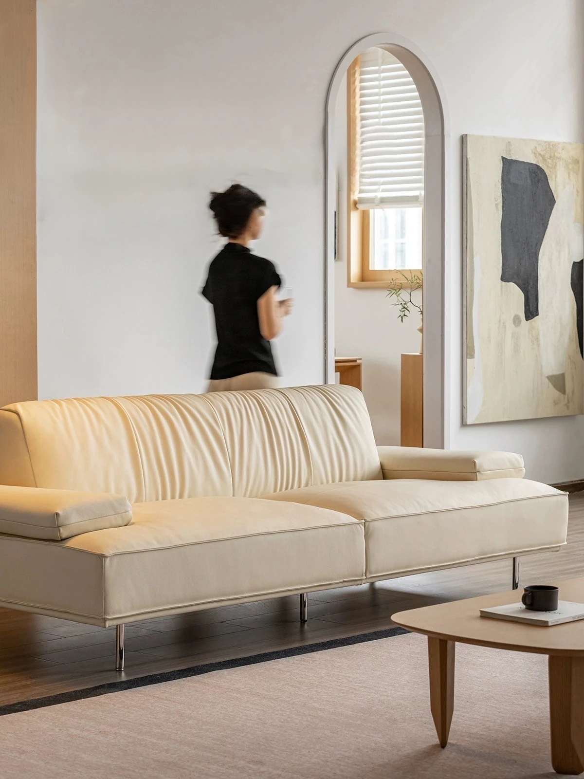 Nordic Soufflé Sofa - Vintage Bauhaus Style with Metal Floating High Back, Genuine Top-Grain Leather, and Straight-Line Design - Perfect for Modern Living Spaces