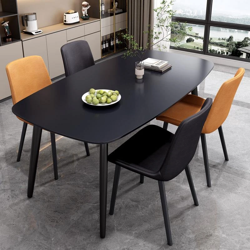 Modern Minimalist Black Stone Dining Table and Chair Set - Stylish Italian Design for Small Spaces, Perfect for Home Dining Rooms, Trendy and Creative Furniture
