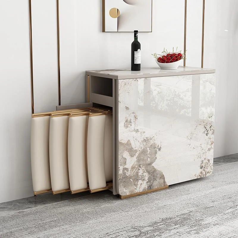 Free Shipping Modern Minimalist Folding Expandable Round Dining Table and Chair Set with Stone Surface - Stylish and Versatile Home Dining Solution from Xinjiang