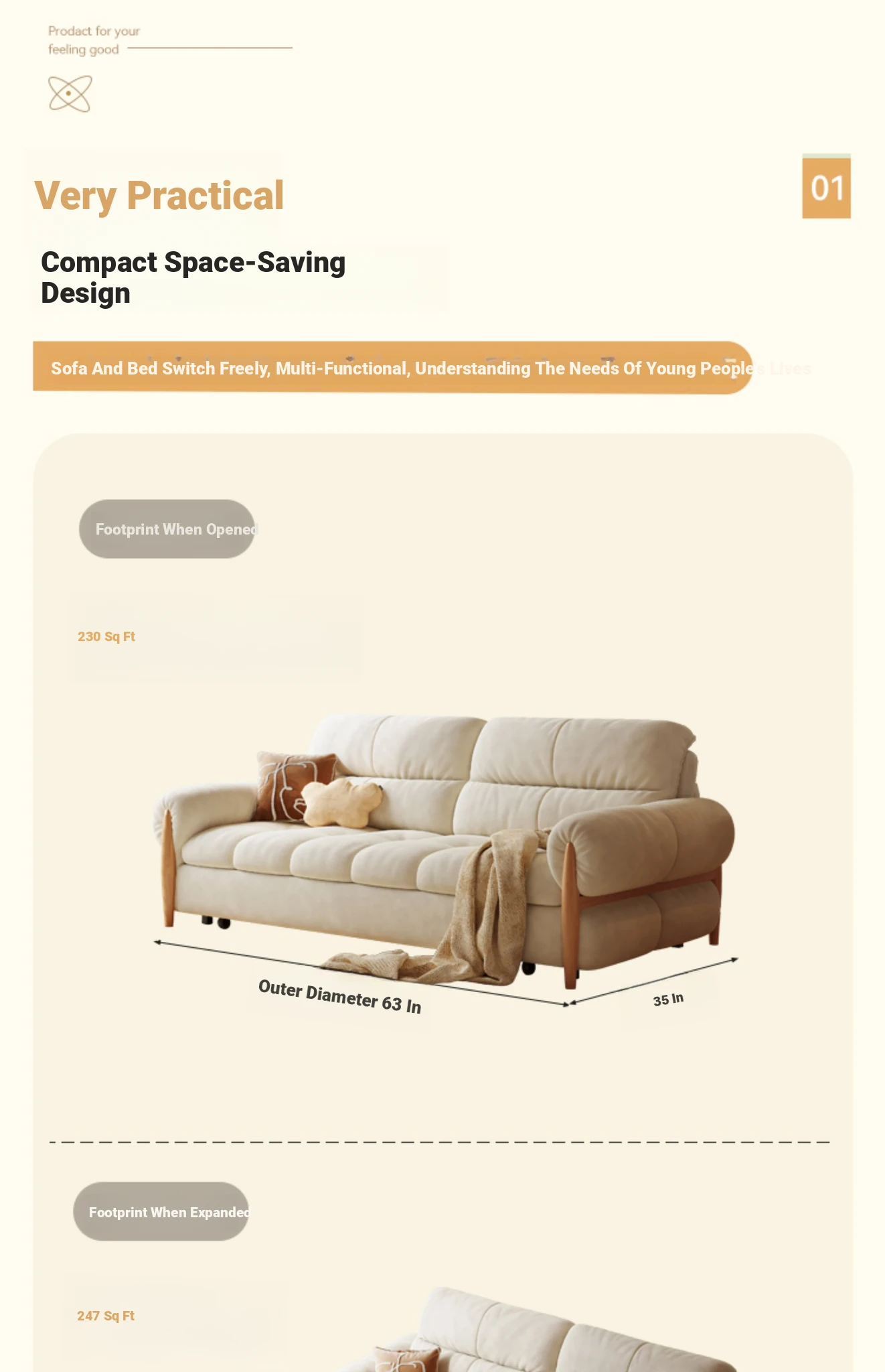 [Skin-sensitive technology leather, powder-free sponge] 86.61in((Without storage box))