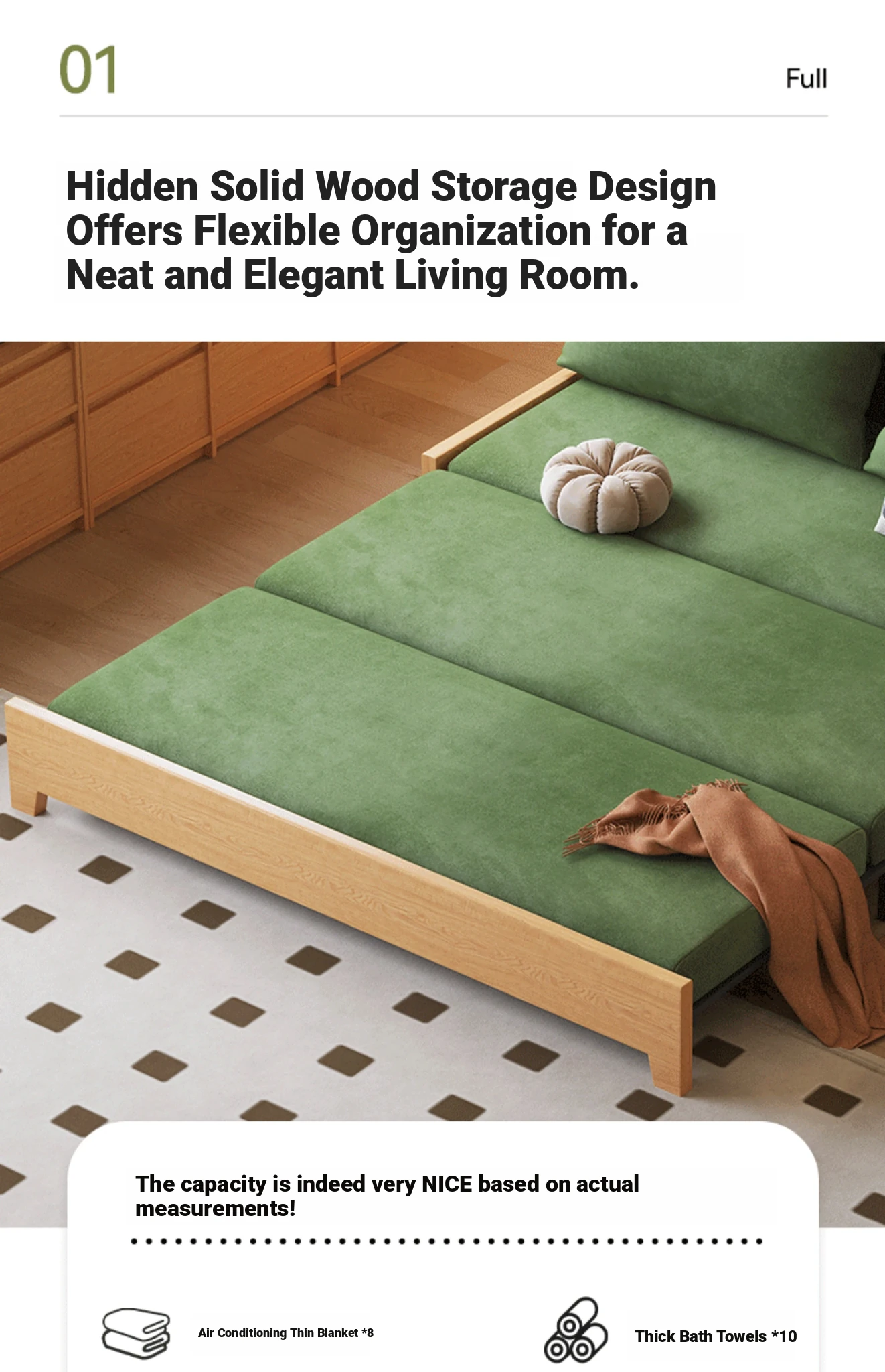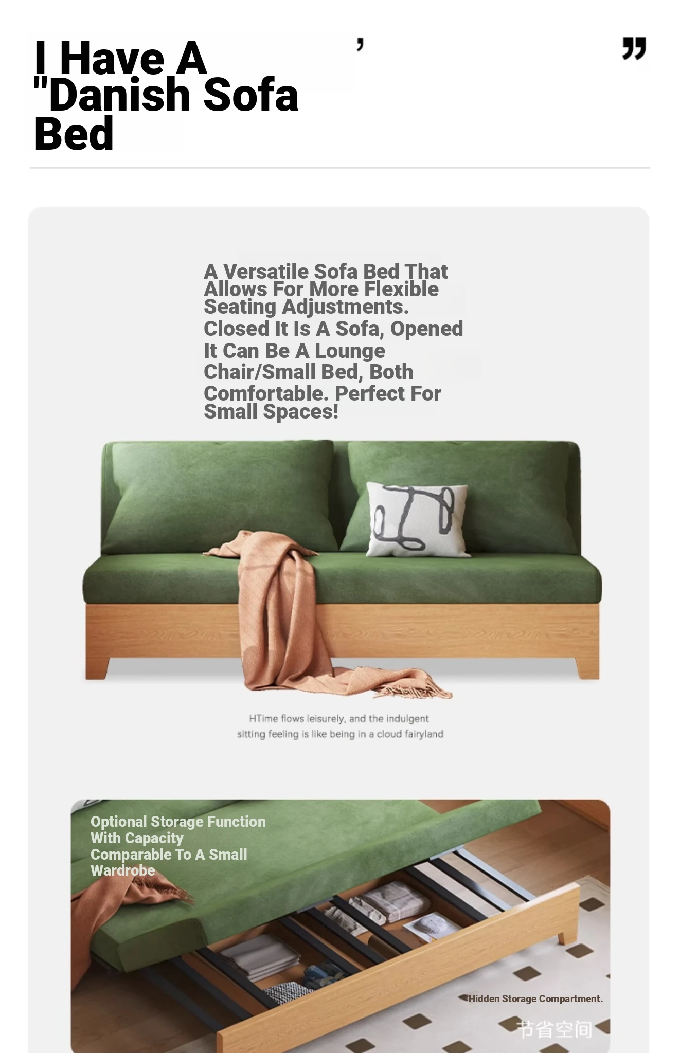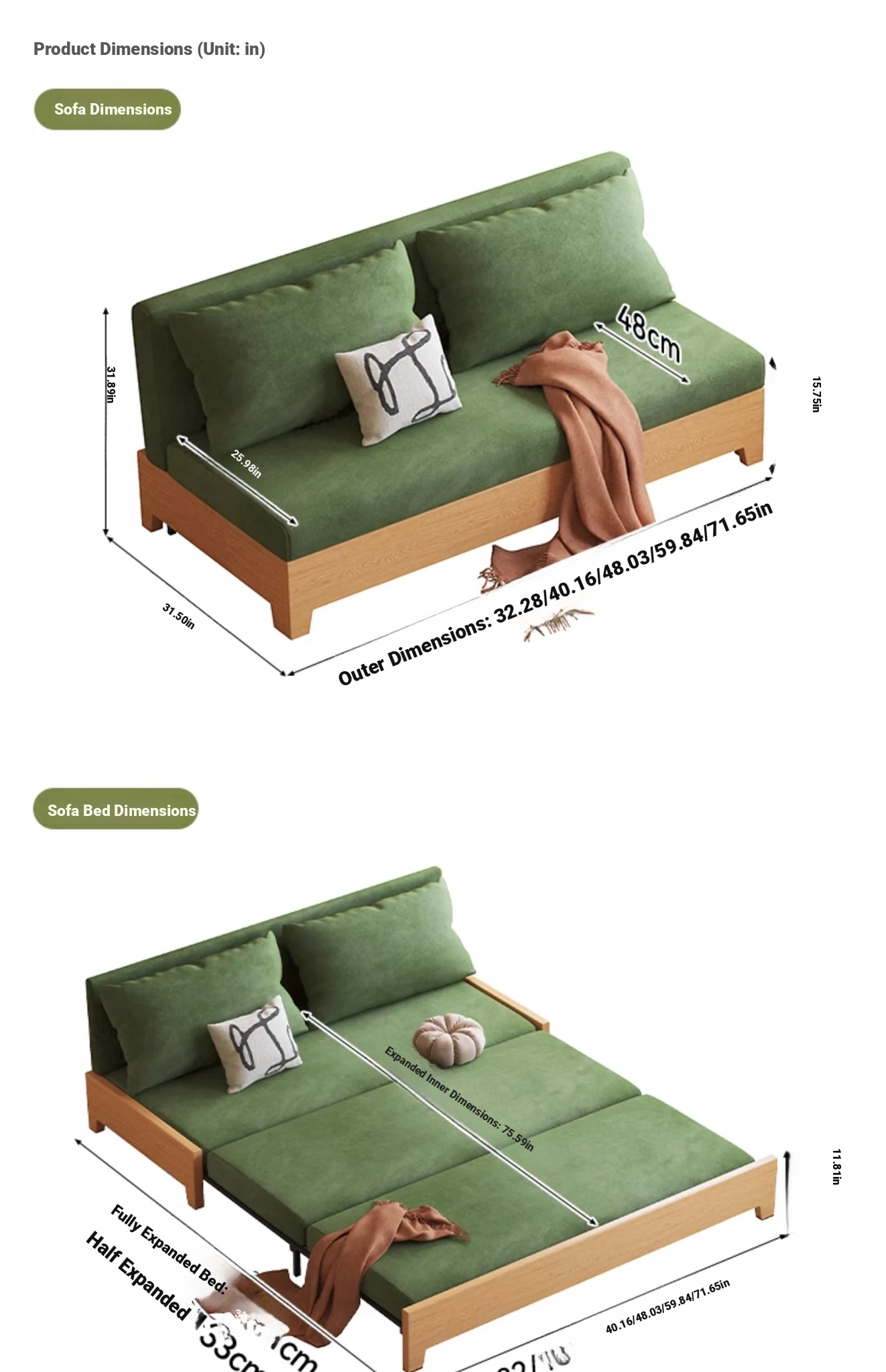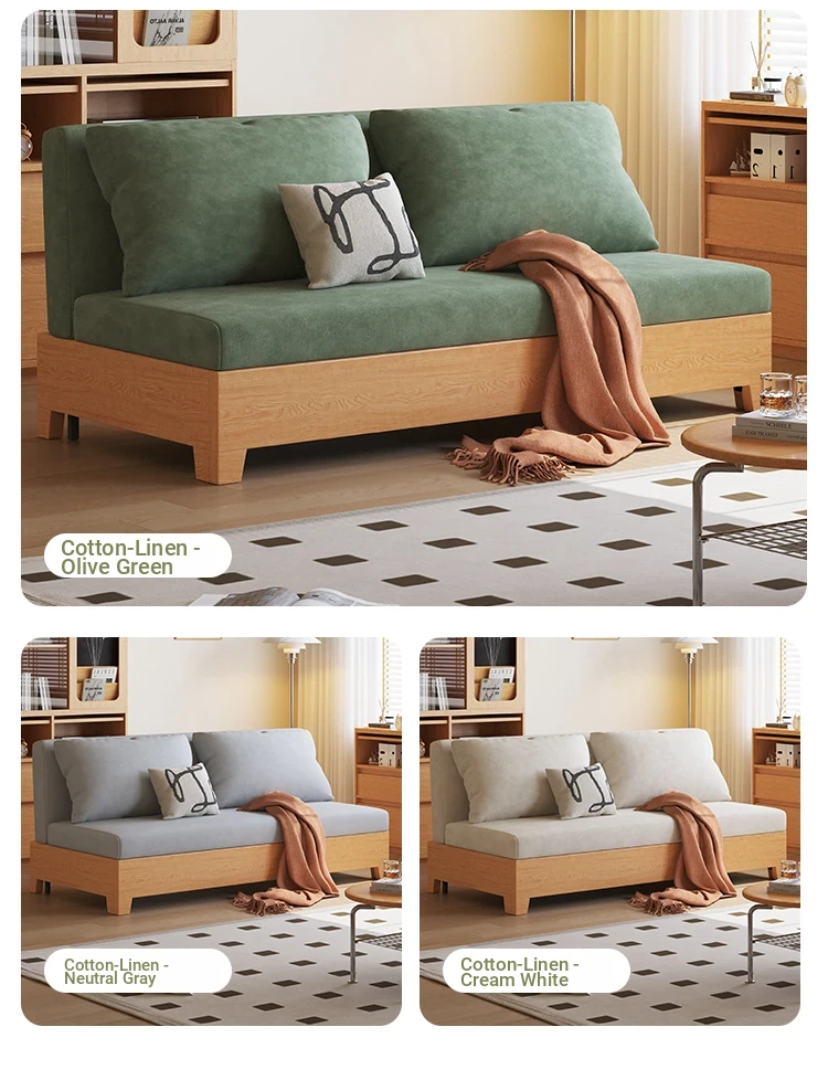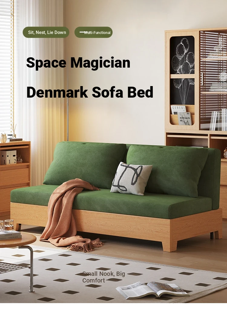 2025 New Danish Style Expandable Sofa Bed by Mugen Crafts - Versatile Space-Saving Solution for Small Living Rooms, Made with Solid Wood, Perfect for Couples