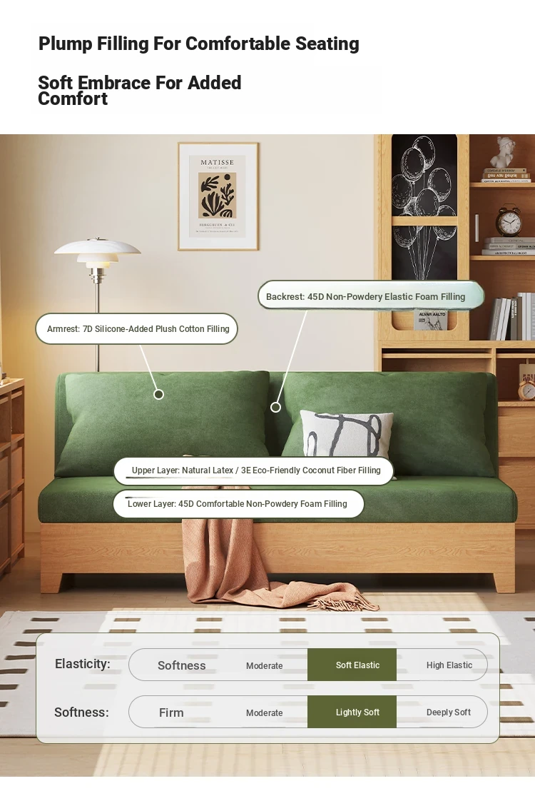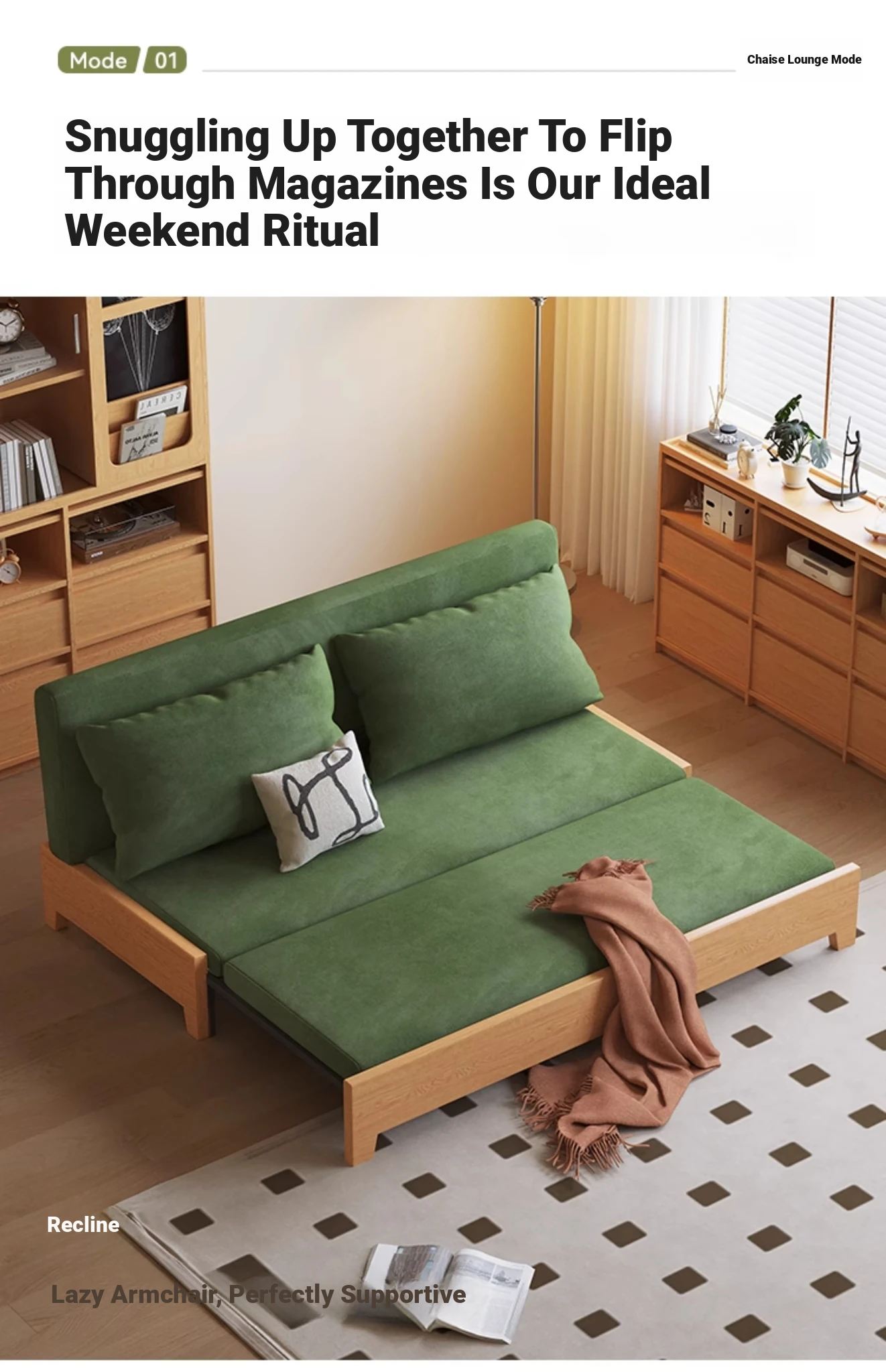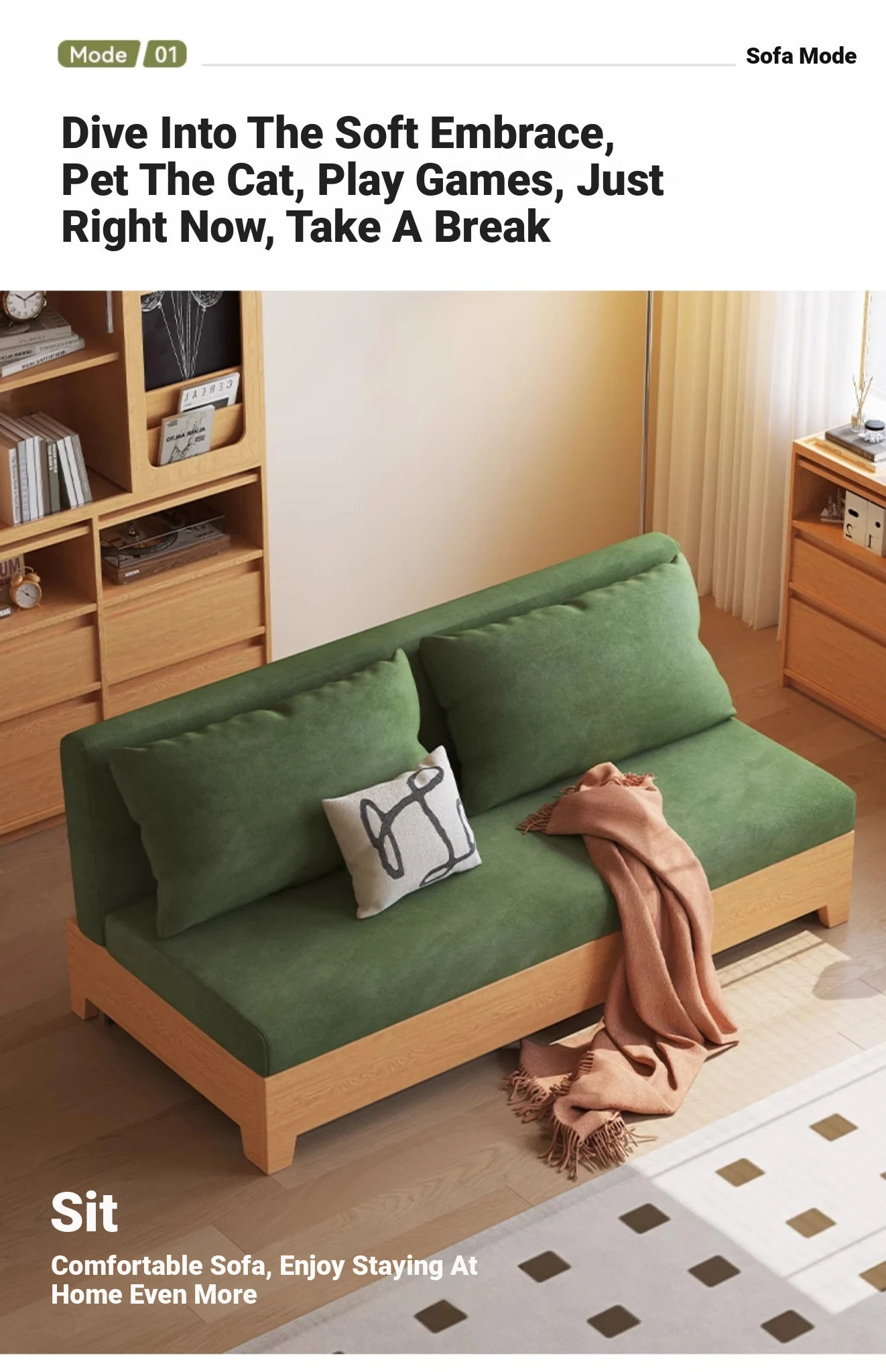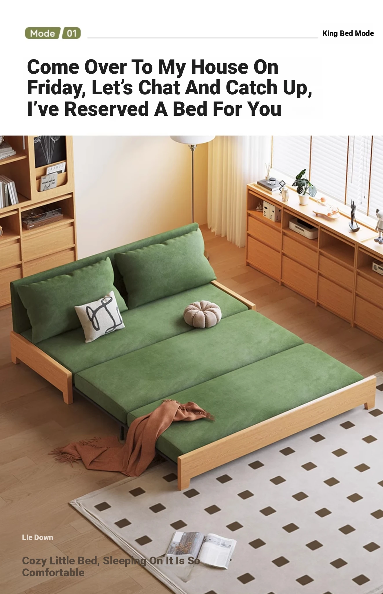 2025 New Danish Style Expandable Sofa Bed by Mugen Crafts - Versatile Space-Saving Solution for Small Living Rooms, Made with Solid Wood, Perfect for Couples