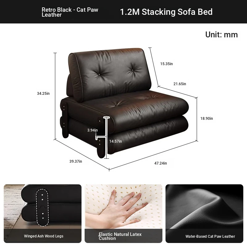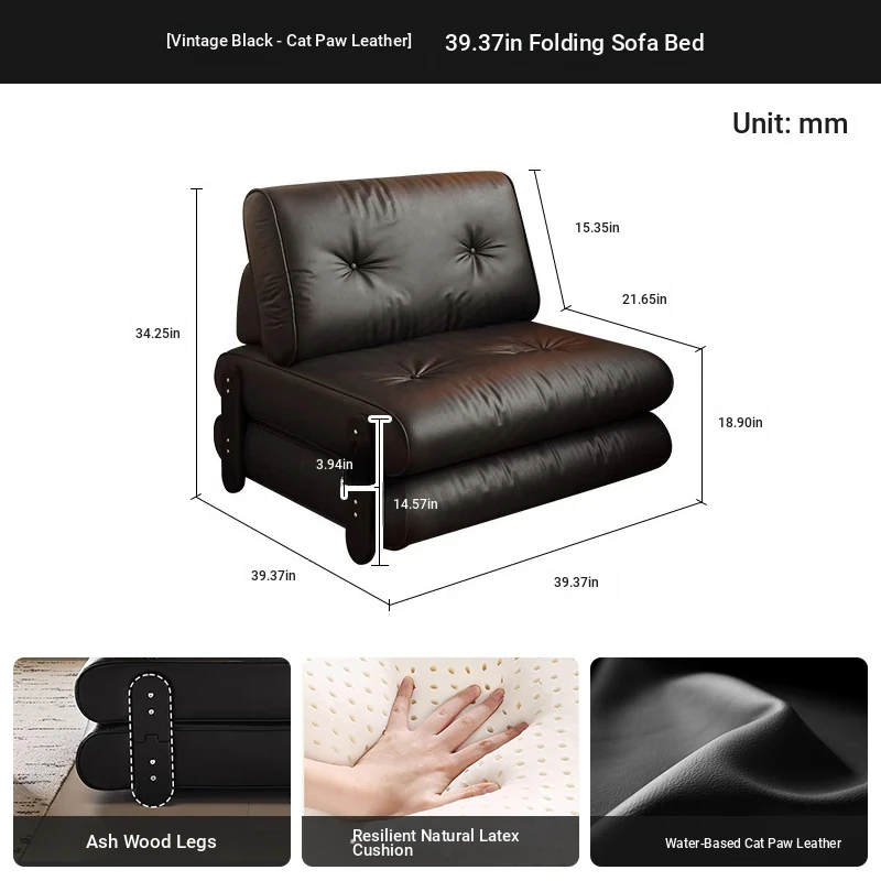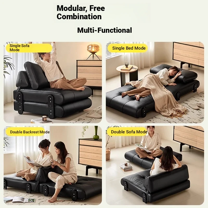 2025 New Stylish Italian Minimalist Folding Sofa Bed for Small Apartments - Multi-functional Single Leather Sofa Bed for Smart Living Spaces