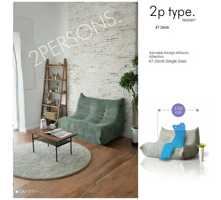 Exclusive edition: Double sofa/gray green [SS grade breathable corduroy fabric + Frameless full sponge structure]]