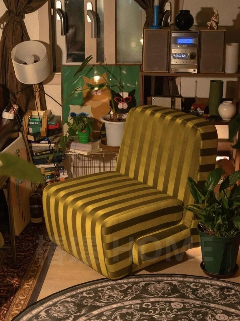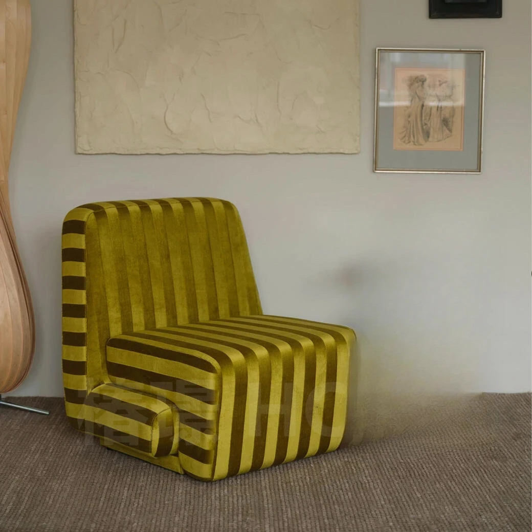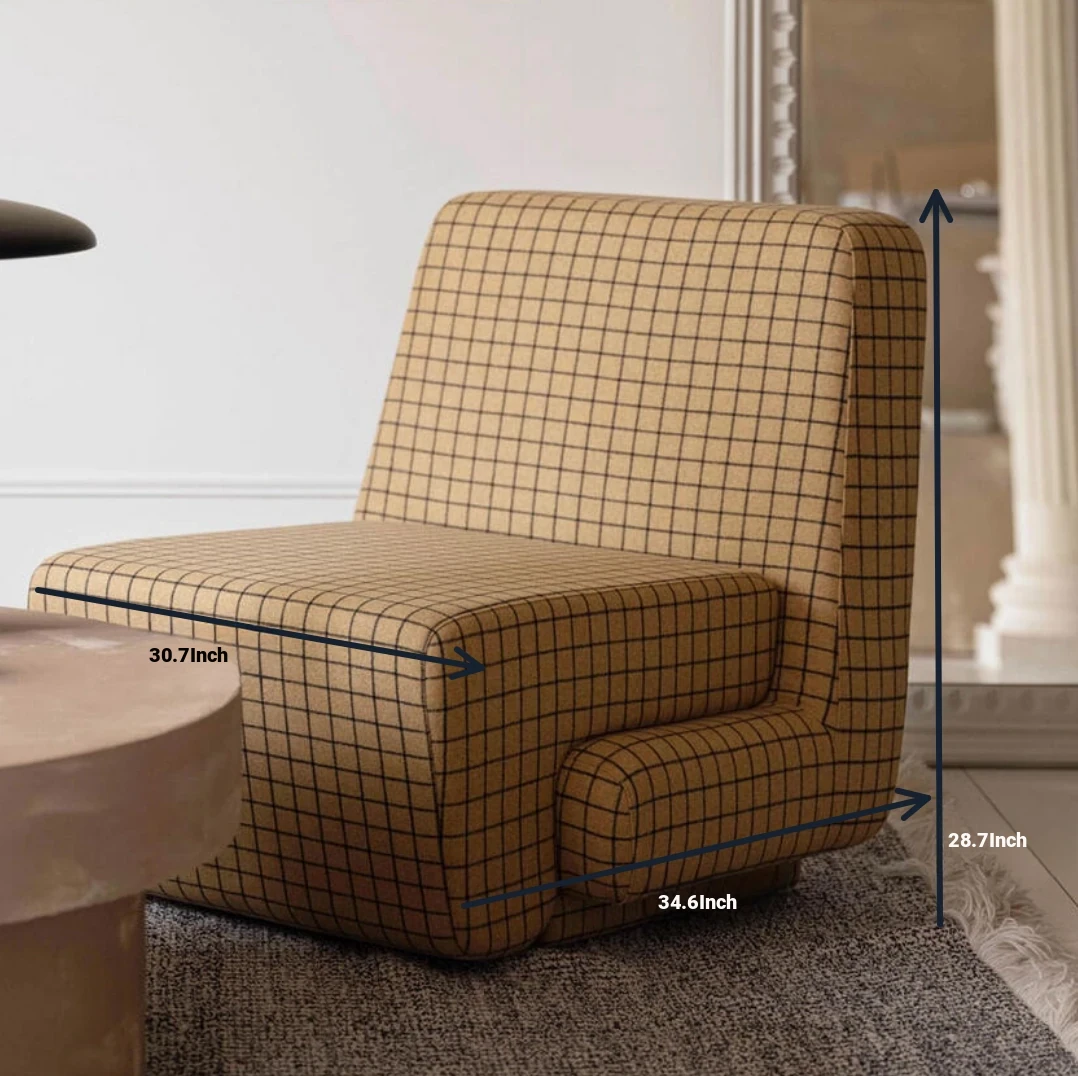 Chic Vintage Plaid Single Sofa Chair - French Retro Style for Living Room and Balcony, Cozy Fabric Armchair with Unique Striped Design