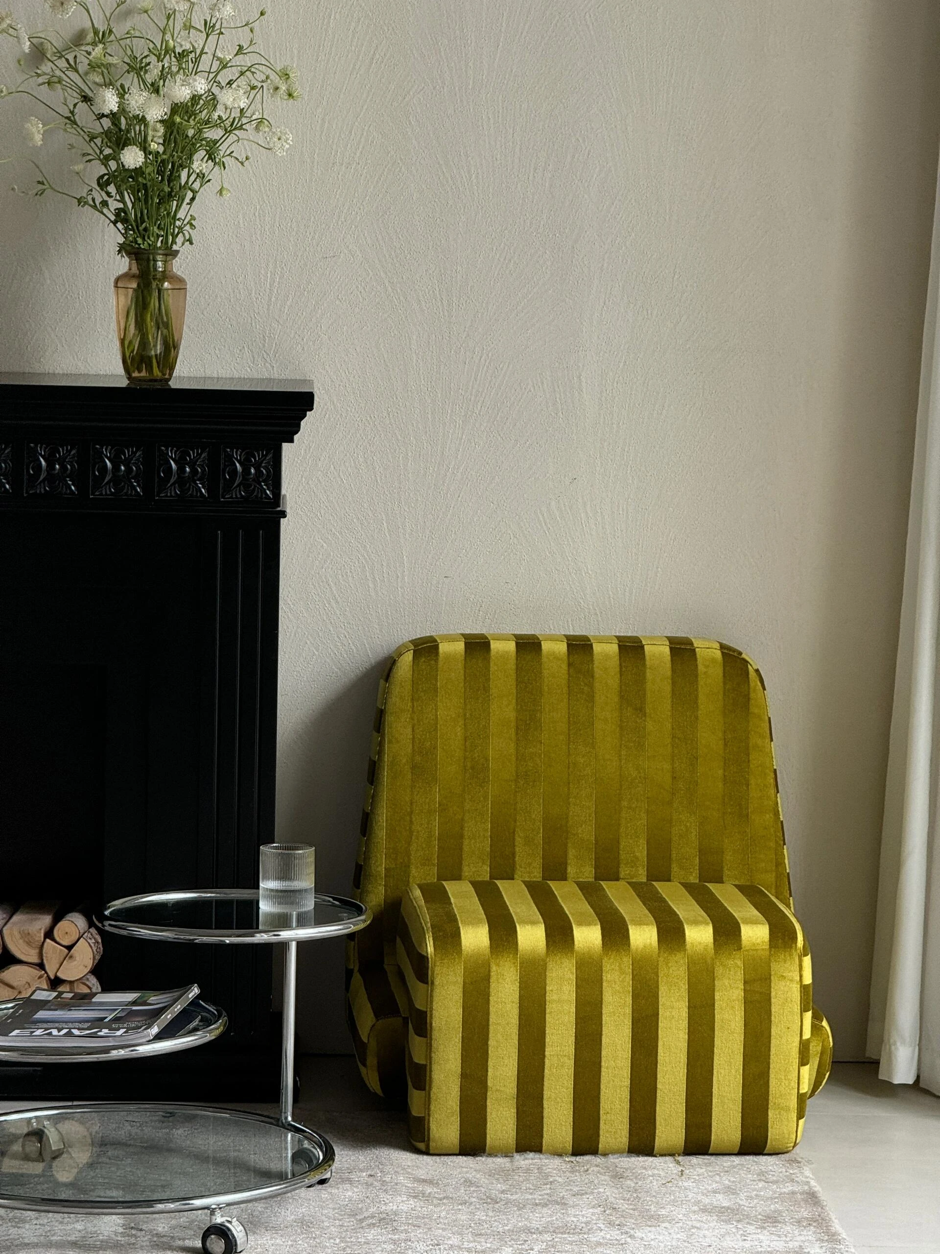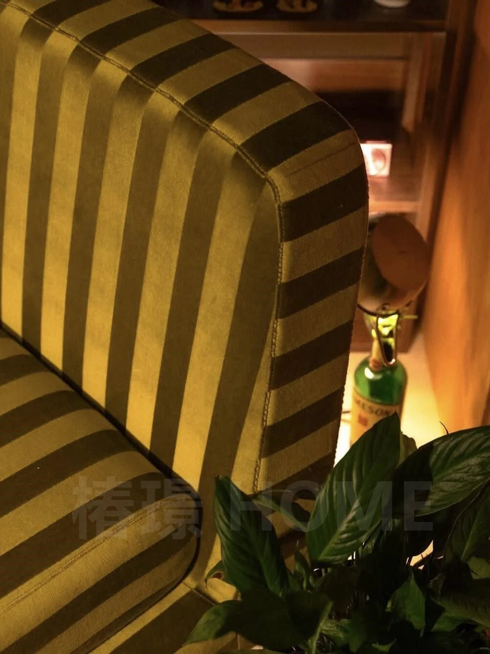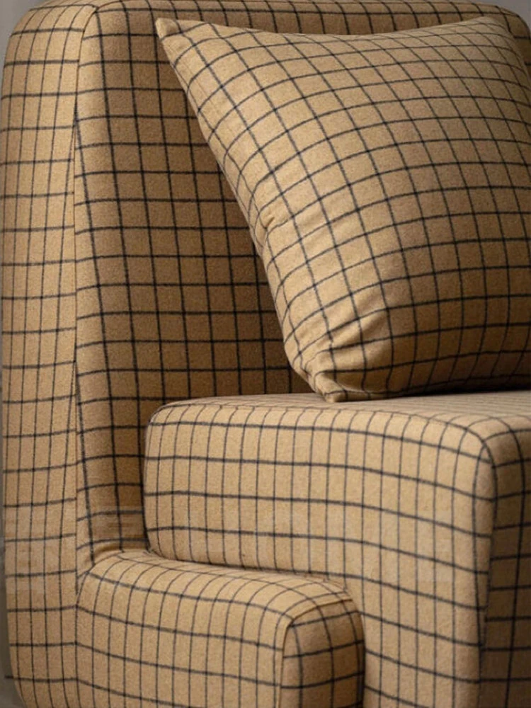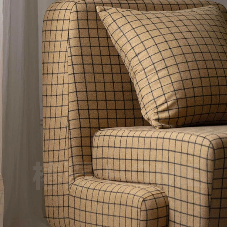 Chic Vintage Plaid Single Sofa Chair - French Retro Style for Living Room and Balcony, Cozy Fabric Armchair with Unique Striped Design