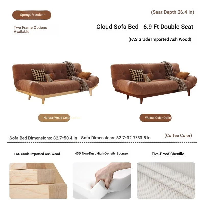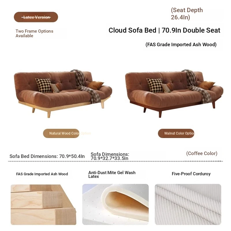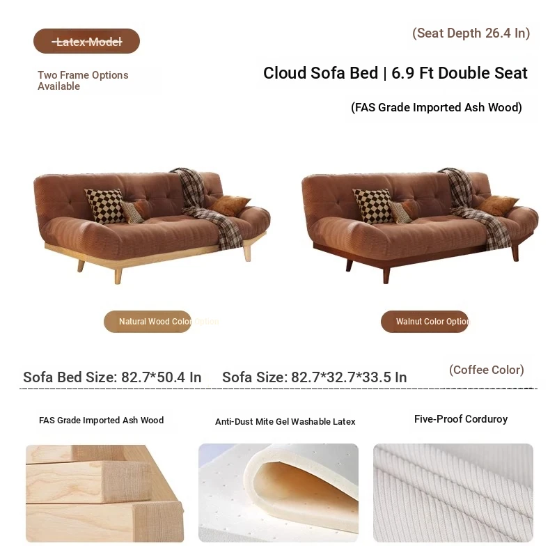 82.68 in sofa bed | Brown [five anti-wash-free corduroy-upgraded latex] all solid wood sofa