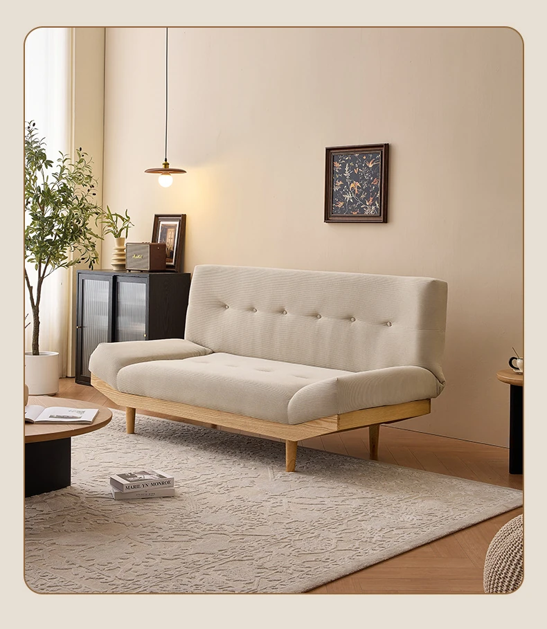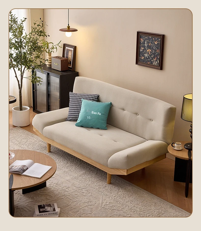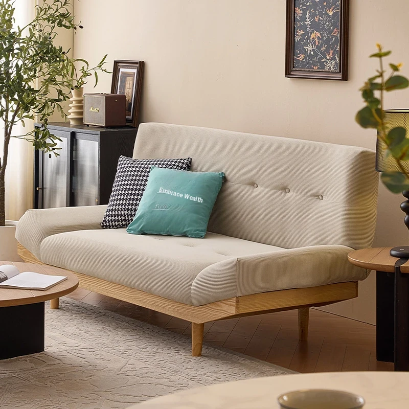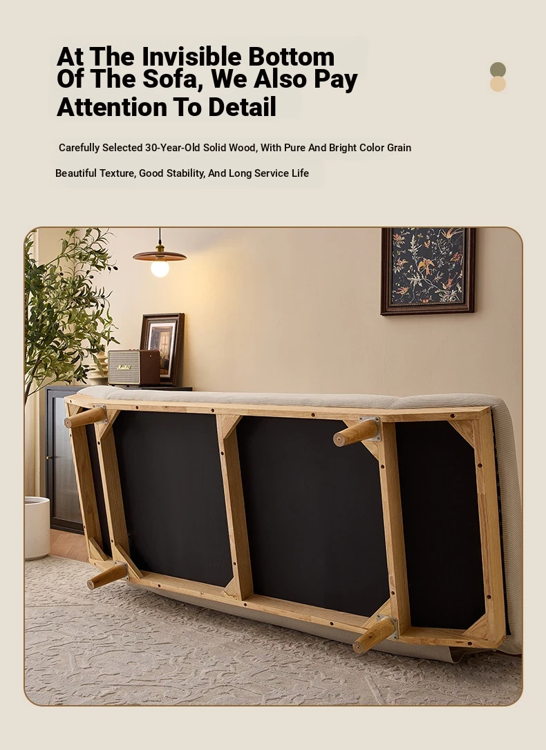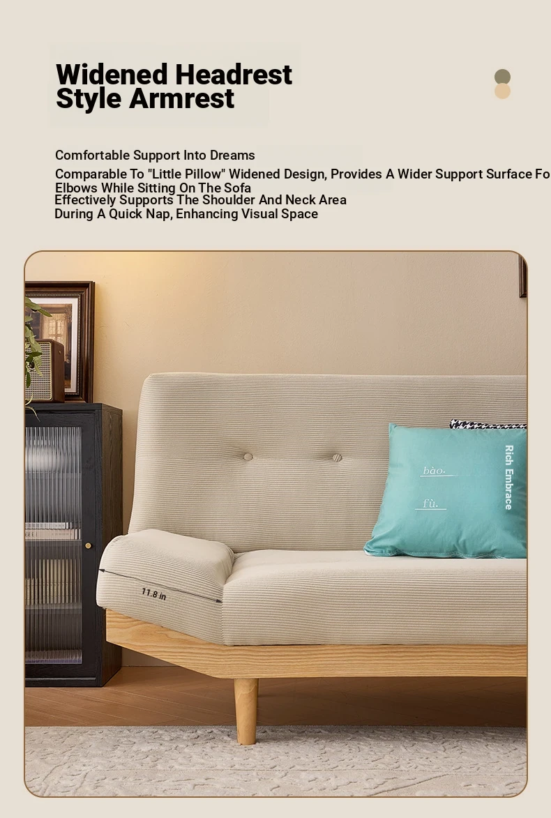 82.68 in sofa bed | Creamy-white [five anti-wash-free corduroy-upgraded latex] all solid wood sofa
