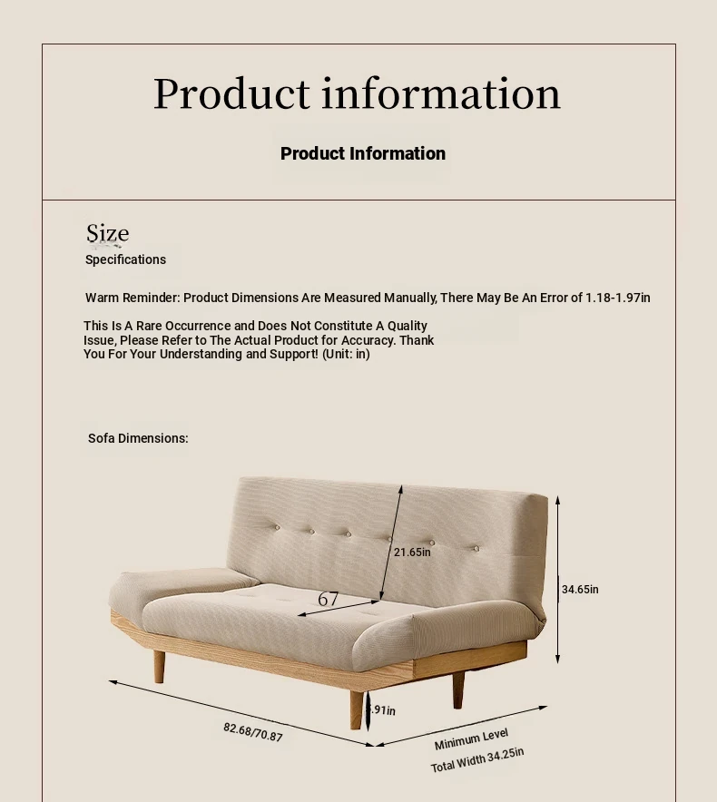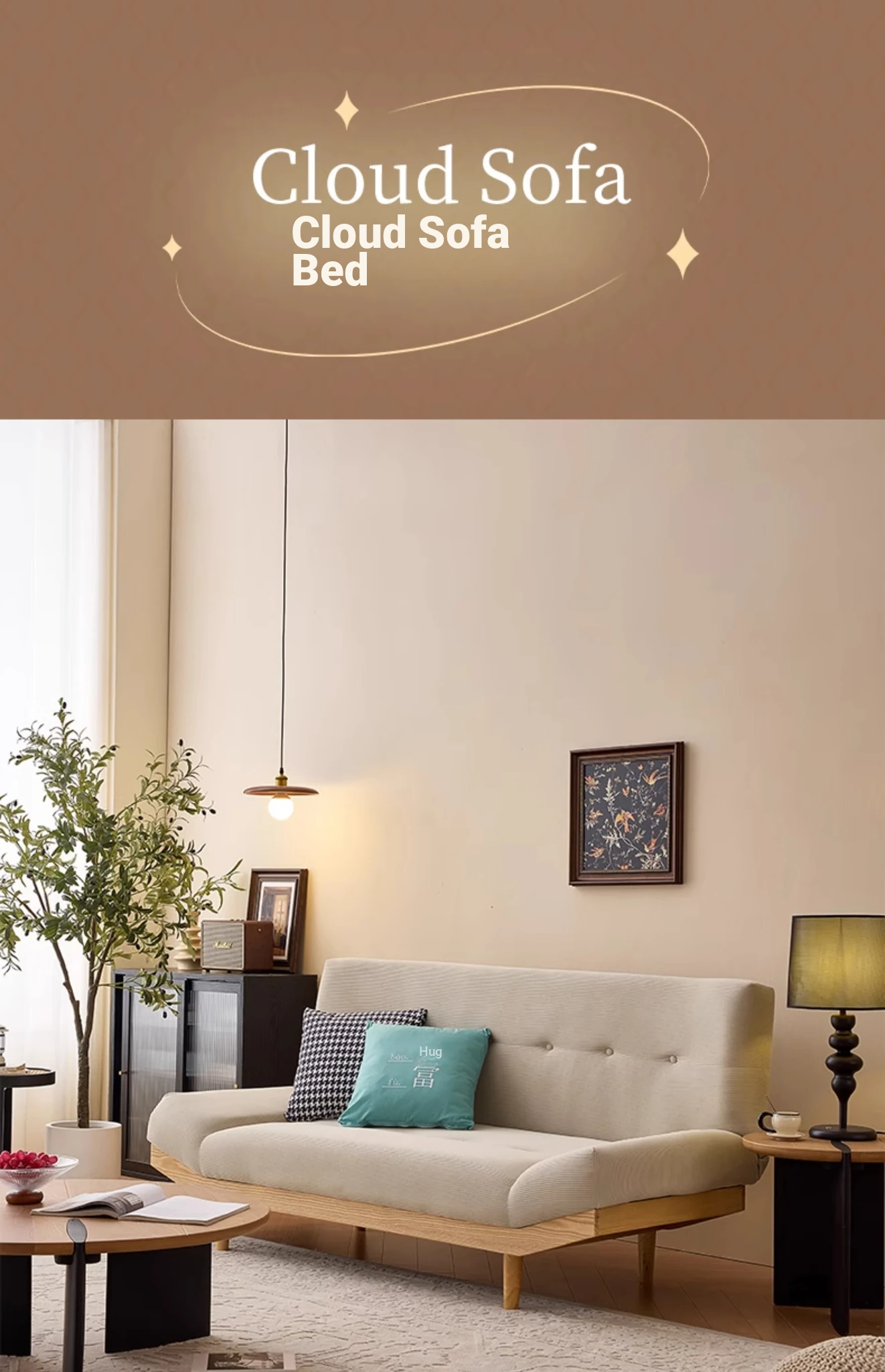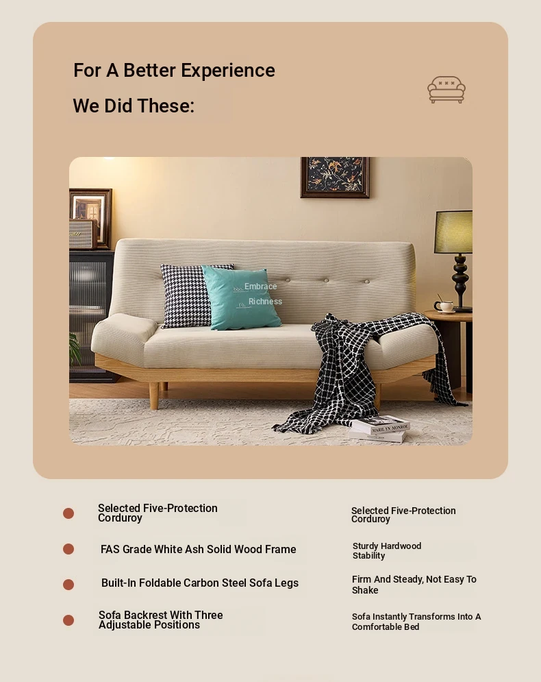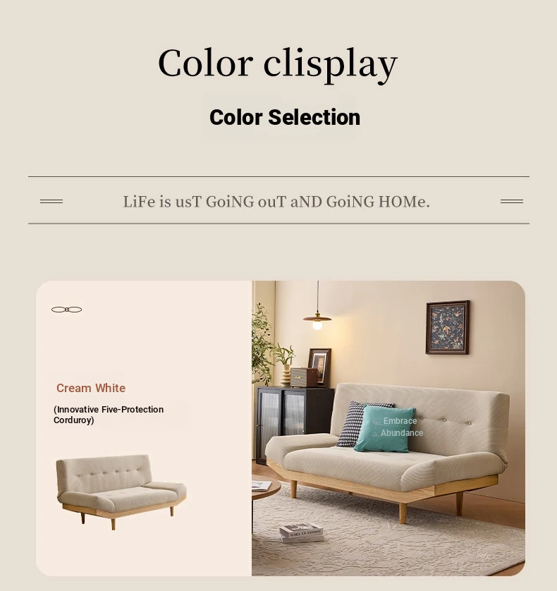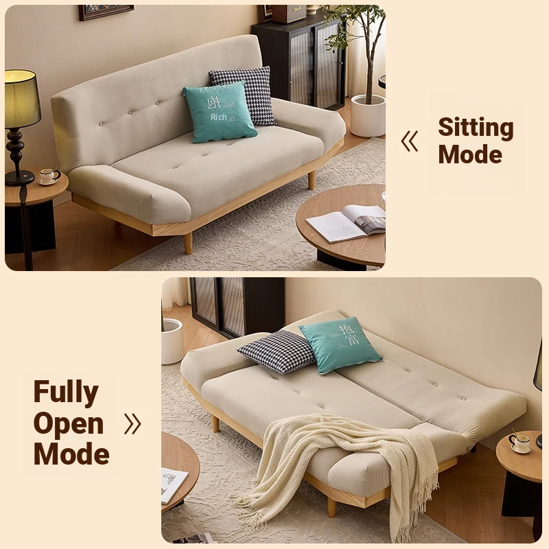 82.68 in sofa bed | Creamy-white [five anti-wash-free corduroy-upgraded latex] all solid wood sofa