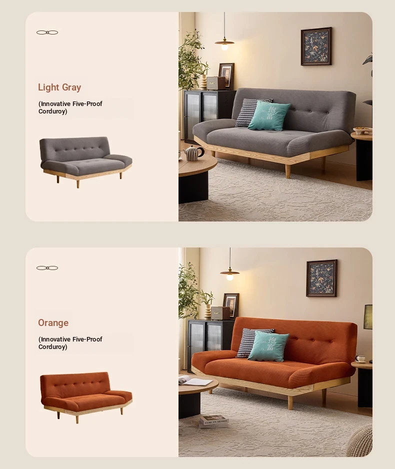 82.68 in sofa bed | Lava Orange [five-prevention washable corduroy-upgraded latex] all solid wood sofa