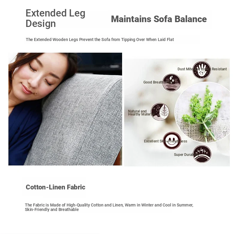 Exclusive Edition: Sofa + Foot [Mist Grey] [SS Class Comfortable Breathable Cotton and Hemp Fabric + High Resilience Sponge]]