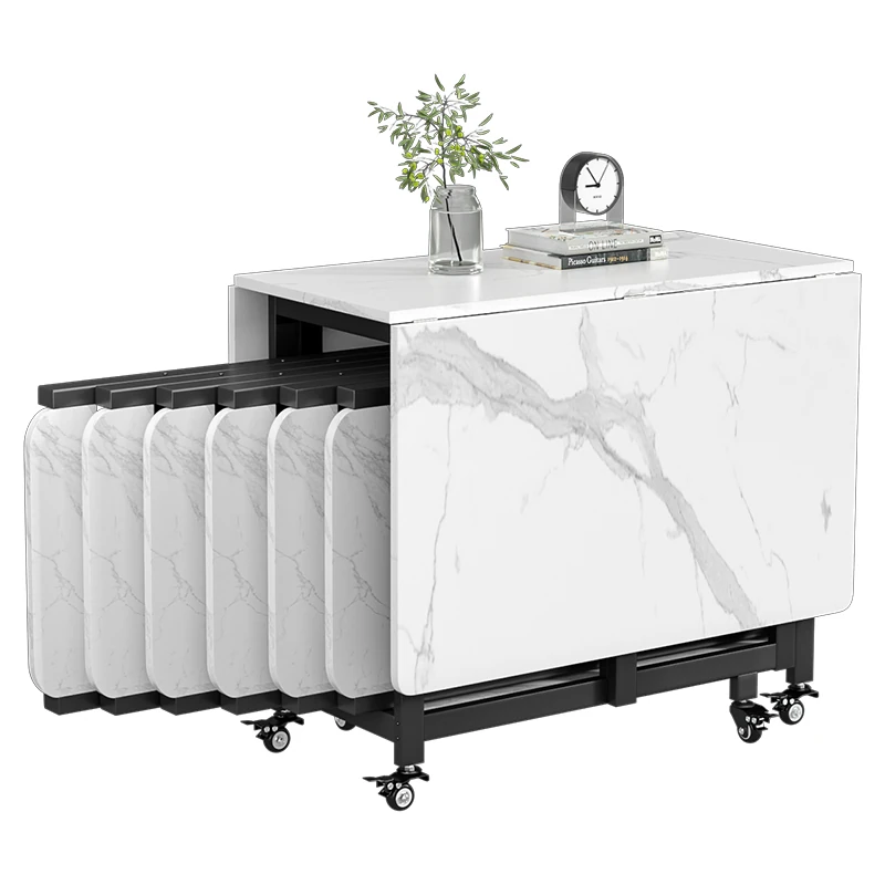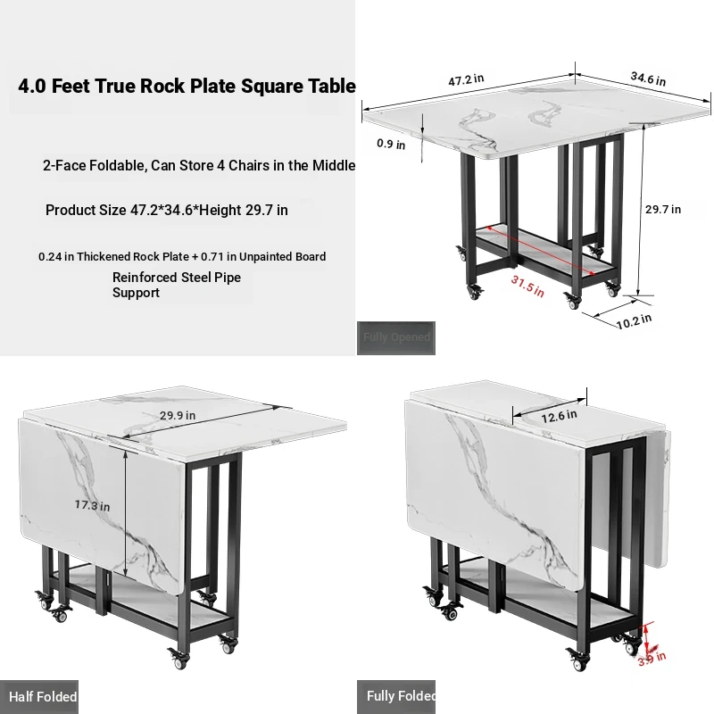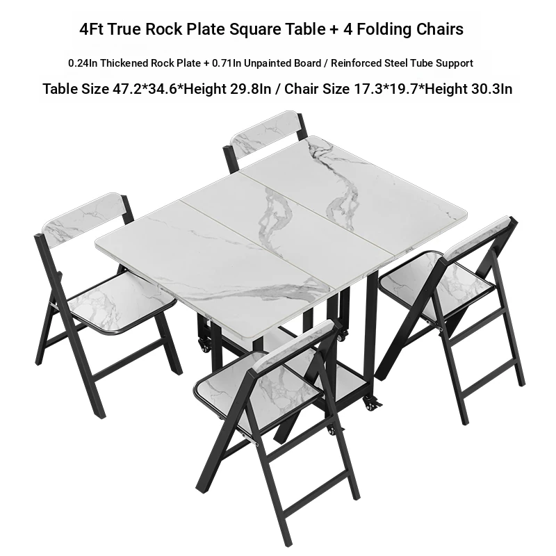 47.24 in Dining Table [Real Rock Board-Jazz White] +4 Faux Rock Board Folding Chairs