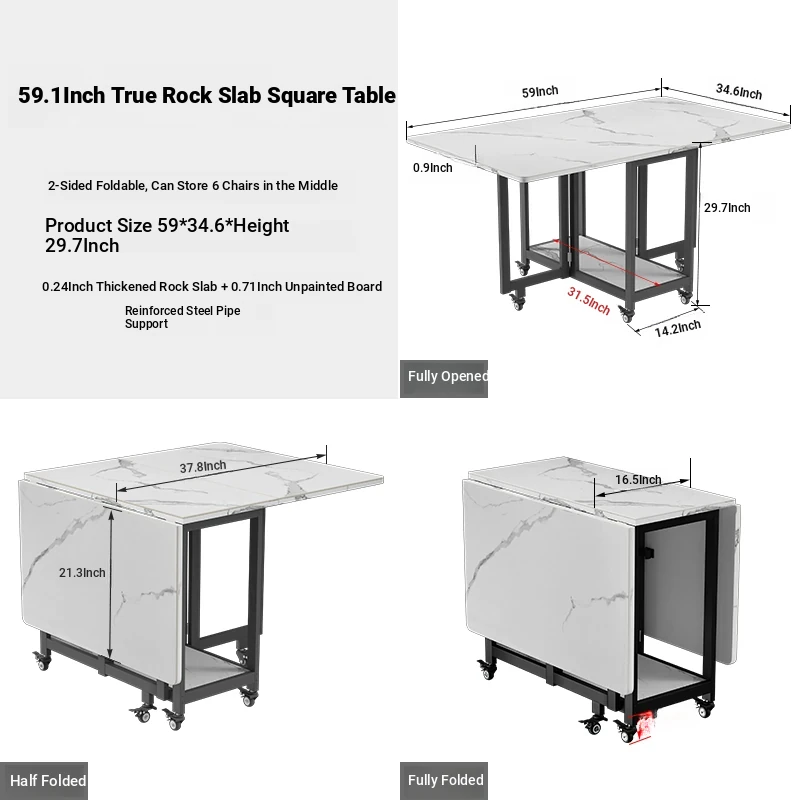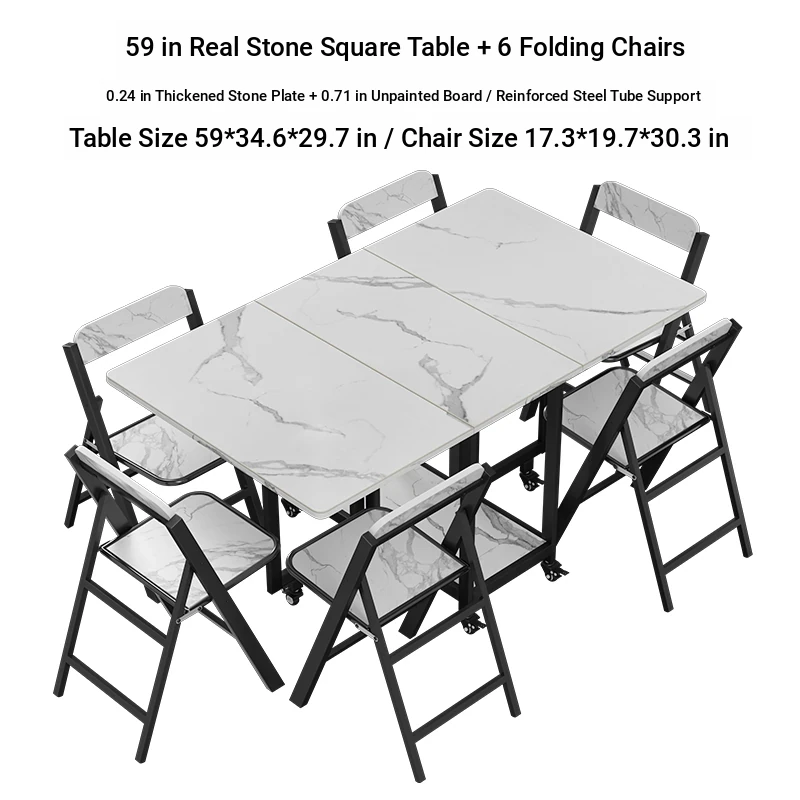 59.06 in dining table [real rock board-jazz White] +6 imitation rock board folding chairs