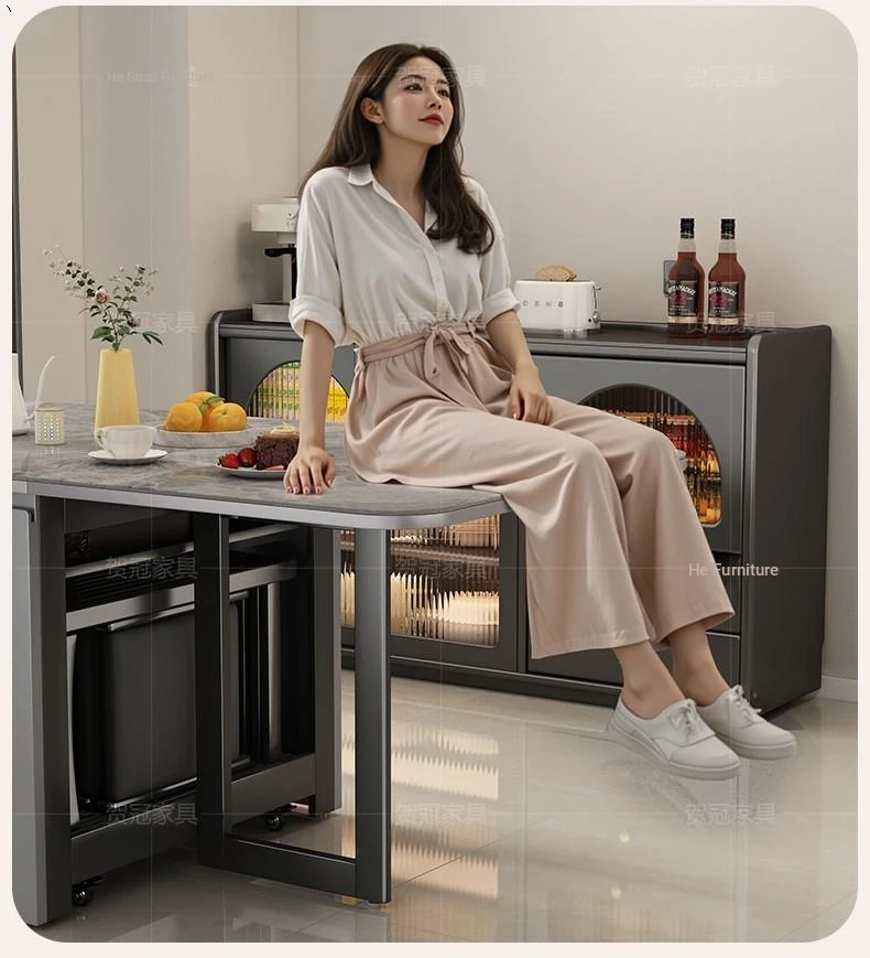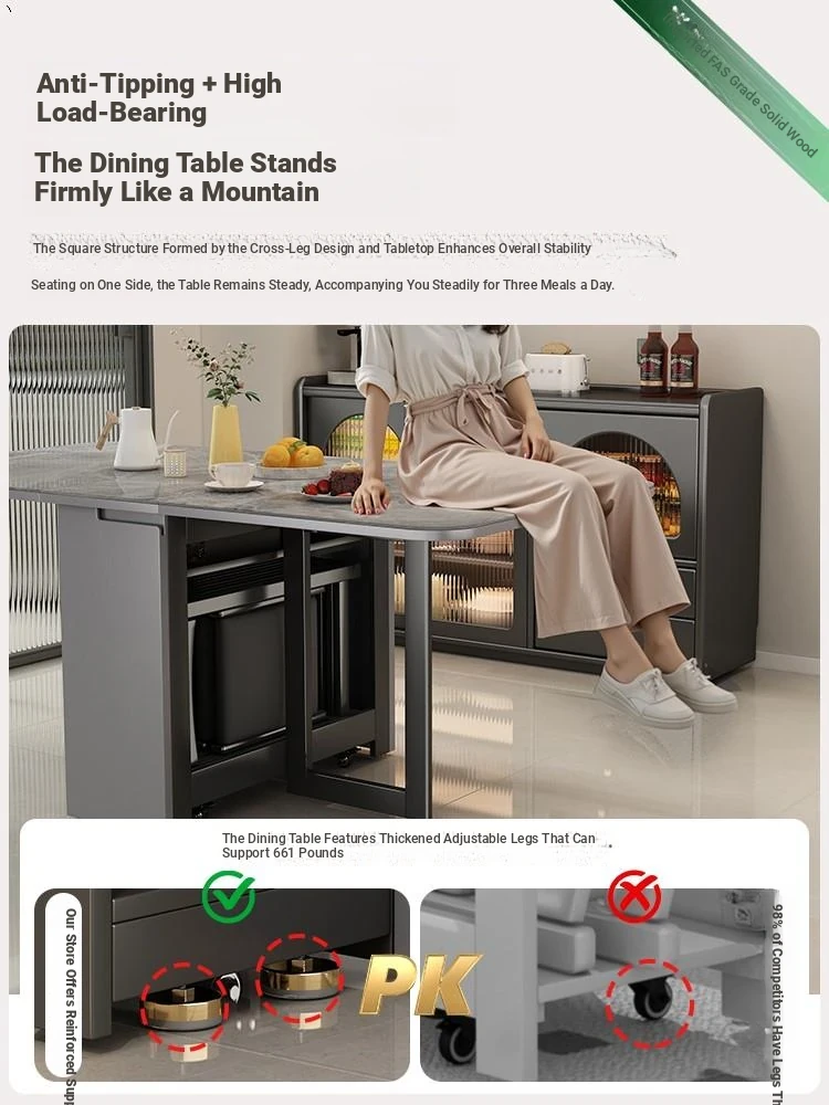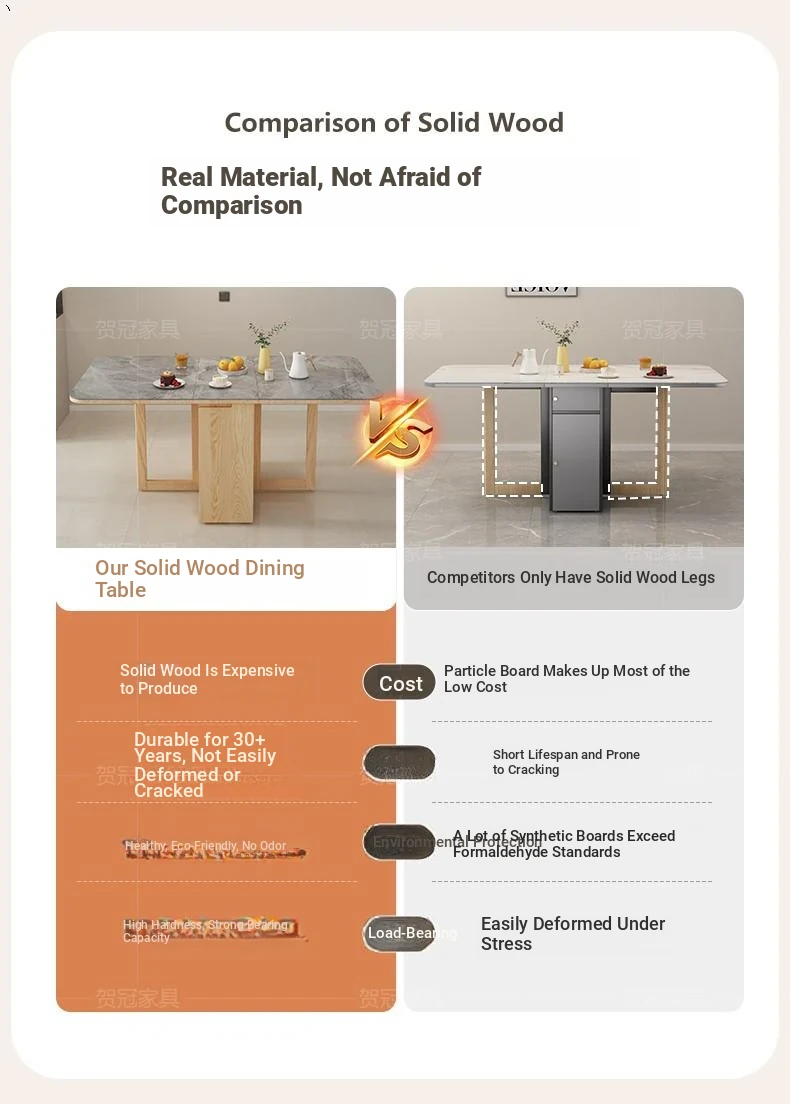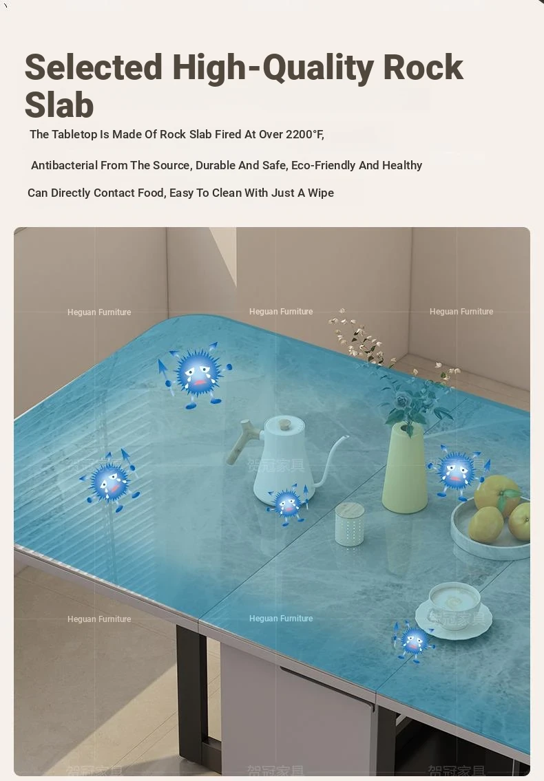 66.93 in pure solid wood Foldable table + Induction cooker [nano silver ion antibacterial Italian limestone board]]