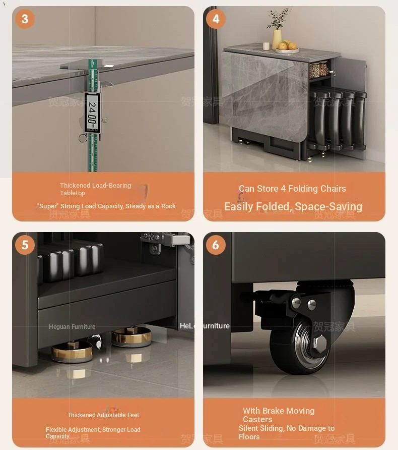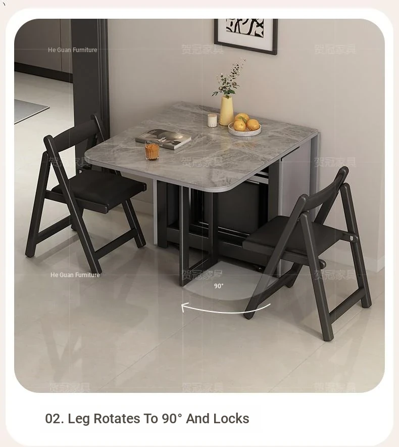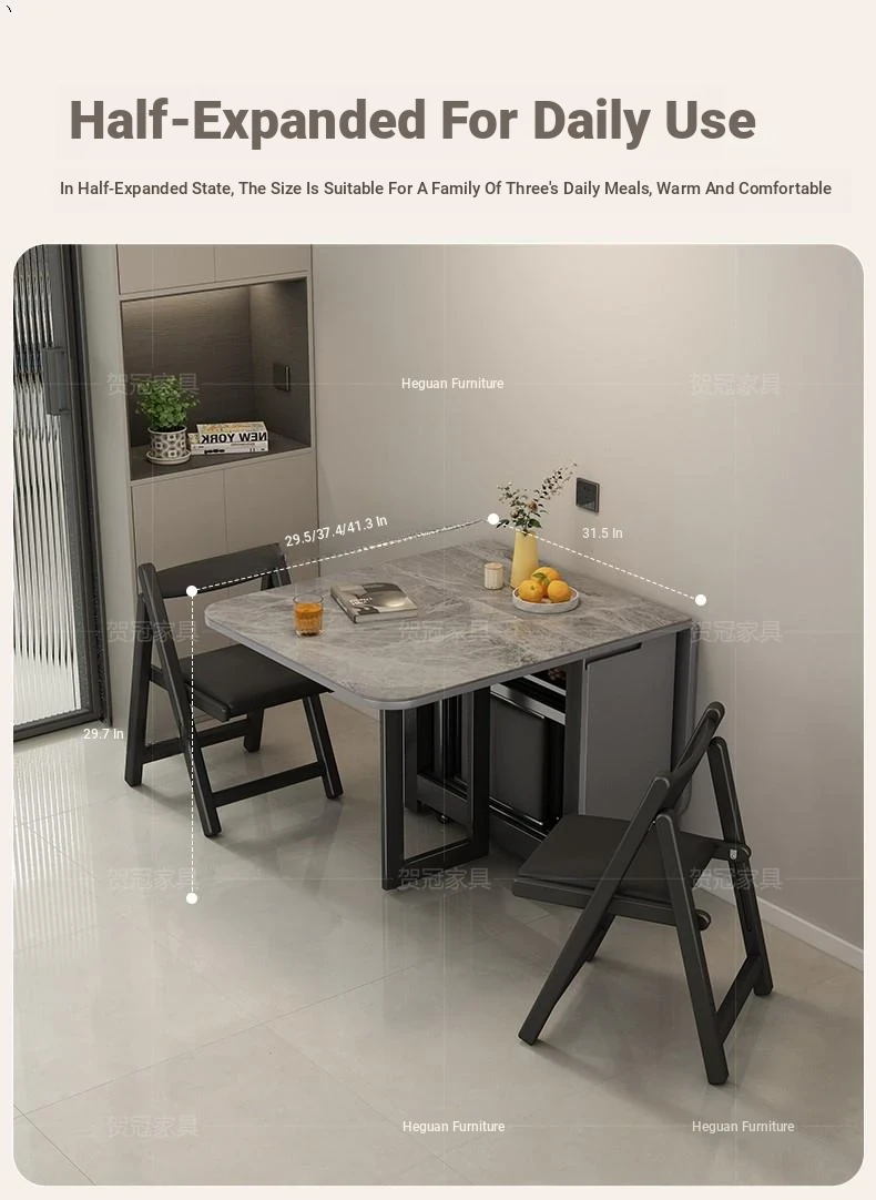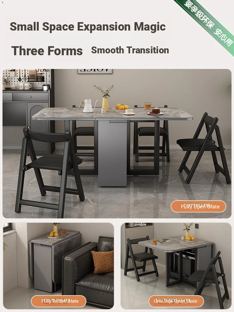 66.93 in pure solid wood Foldable dining table + Induction cooker [nano silver ion antibacterial Italian limestone board] + Foldable soft bag dining chair * 4