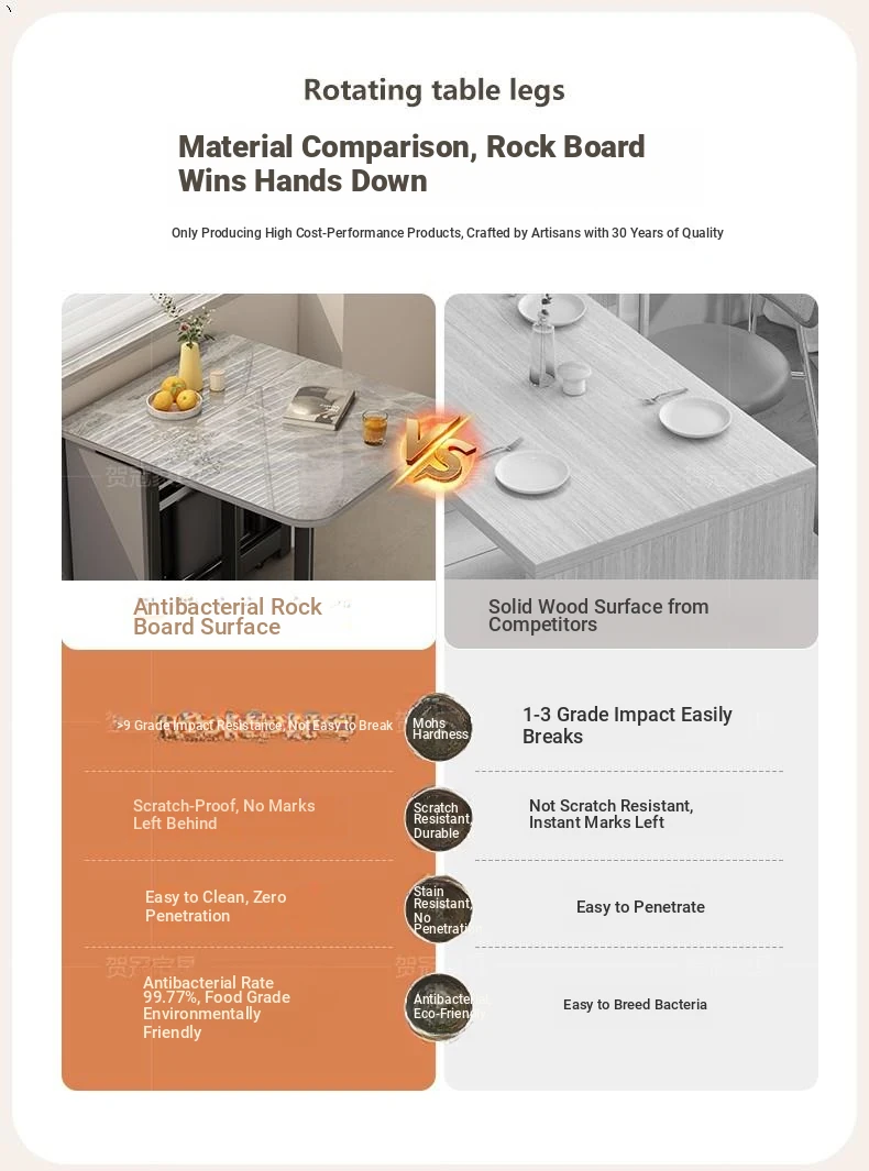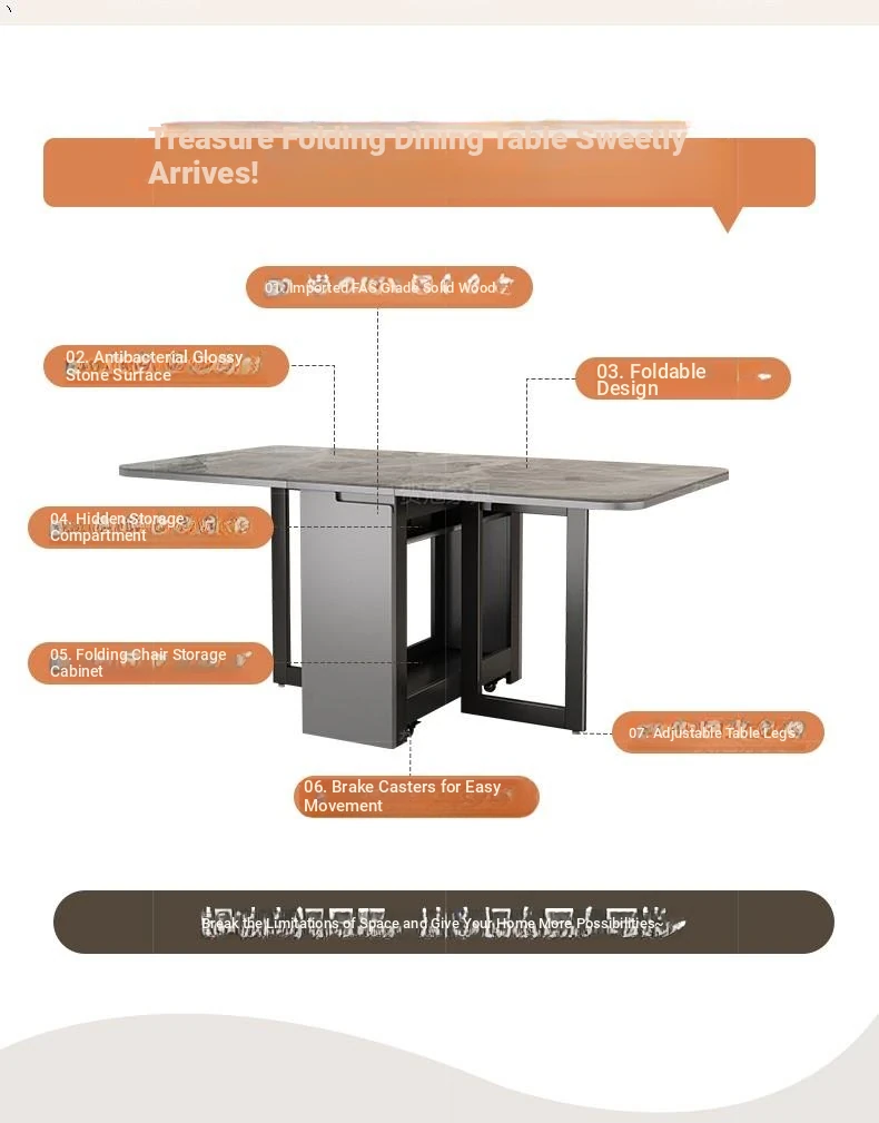 66.93 in pure solid wood Foldable table [nano silver ion antibacterial Italian limestone board]]