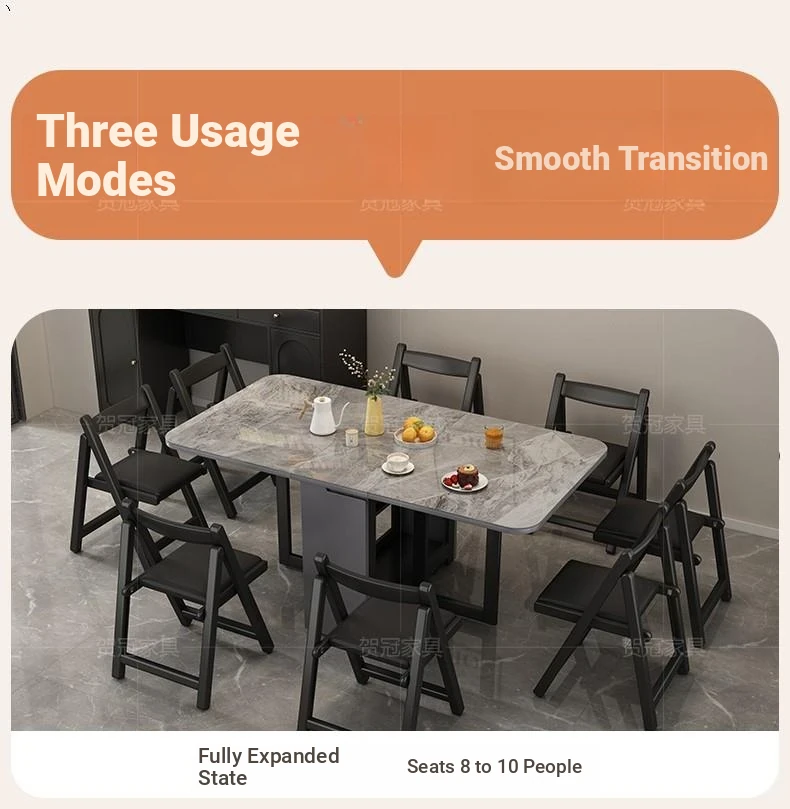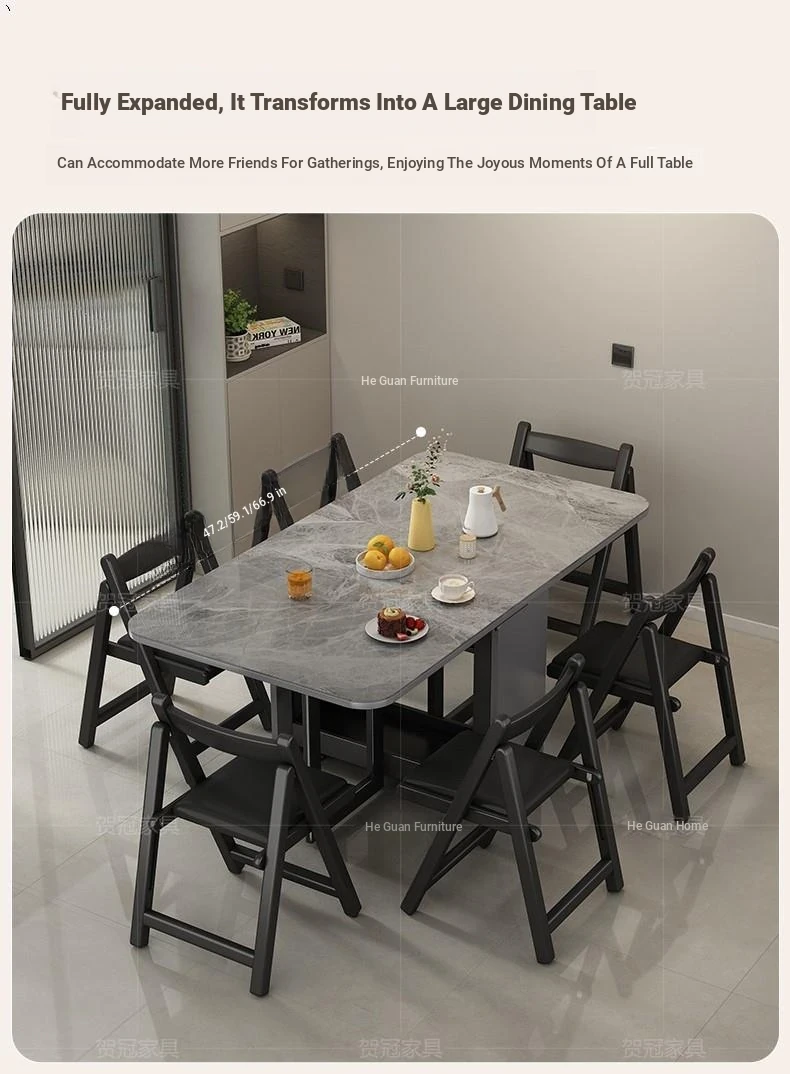 66.93 in pure solid wood Foldable dining table + Induction cooker [nano silver ion antibacterial Italian limestone board] + Foldable soft bag dining chair * 6