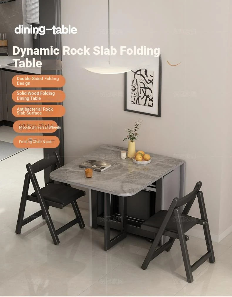 47.24 in pure solid wood Foldable table + Induction cooker [nano silver ion antibacterial Italian limestone board]]
