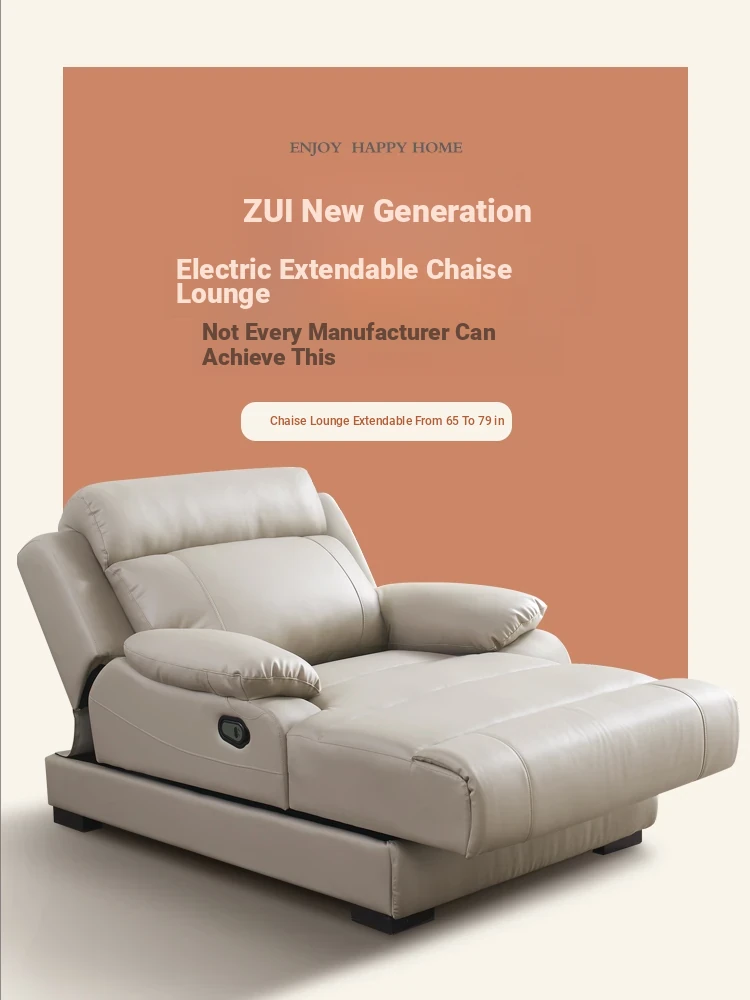 Electric Reclining Chaise Lounge Sofa – Premium Genuine Leather, Top Quality Cowhide, Transformable Space Capsule Design for Living Room, Elegant Daybed and Lounger Combination