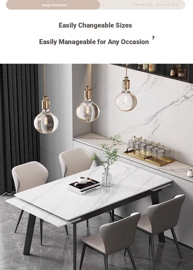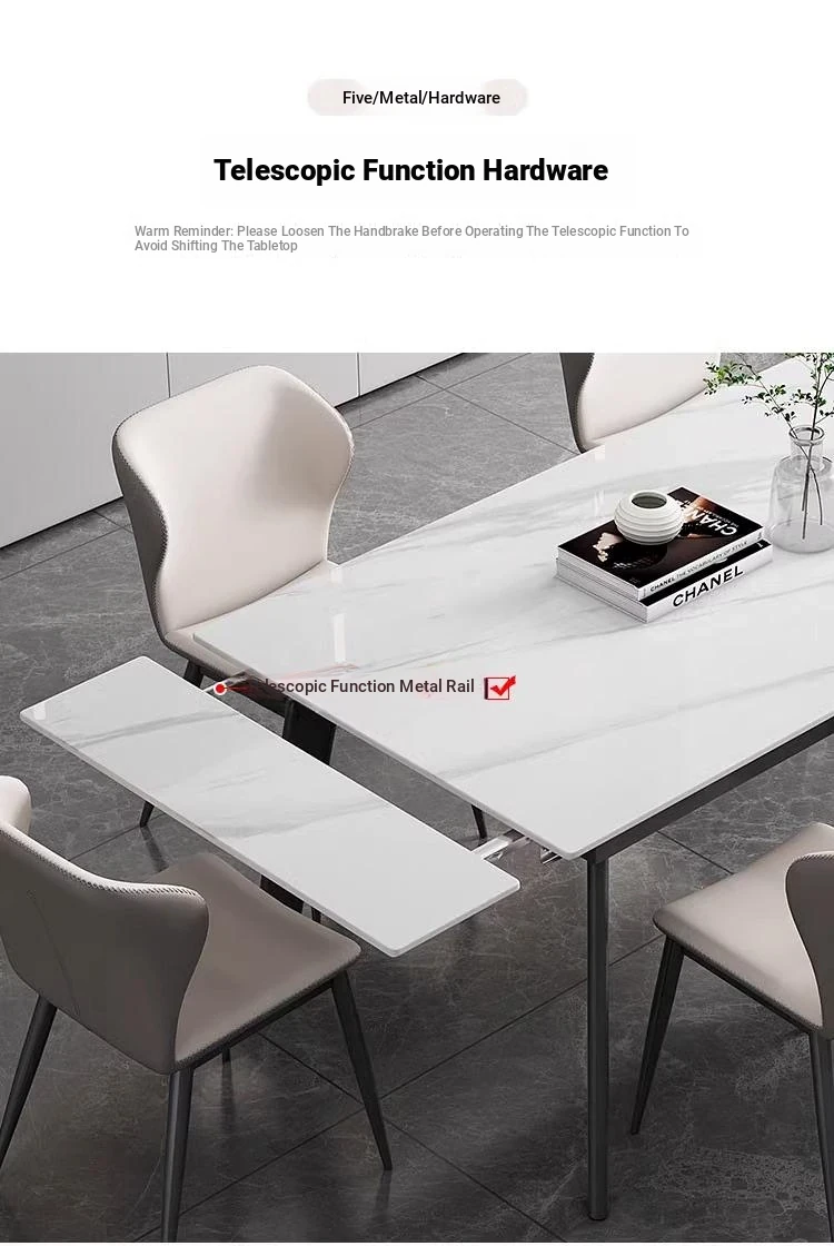 55.12 in telescopic 78.74 in dining table + A 6 dining chairs