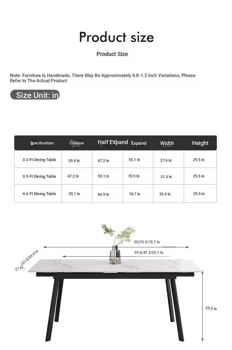 55.12 in telescopic 78.74 in dining table + A 4 dining chairs
