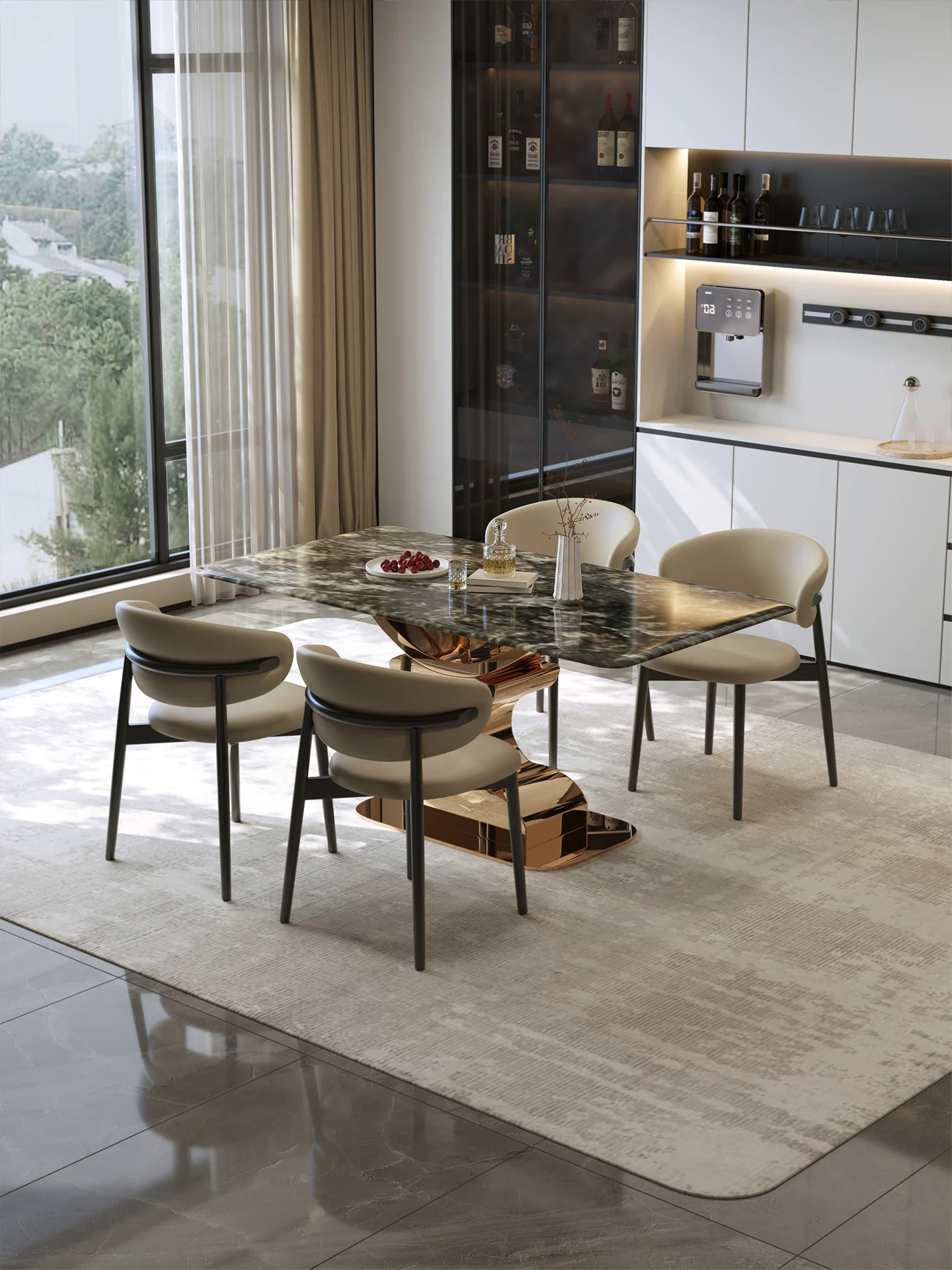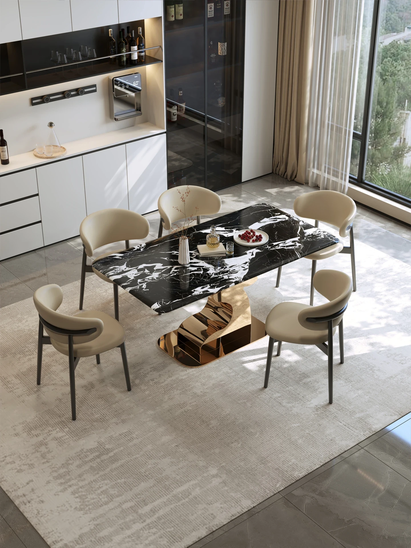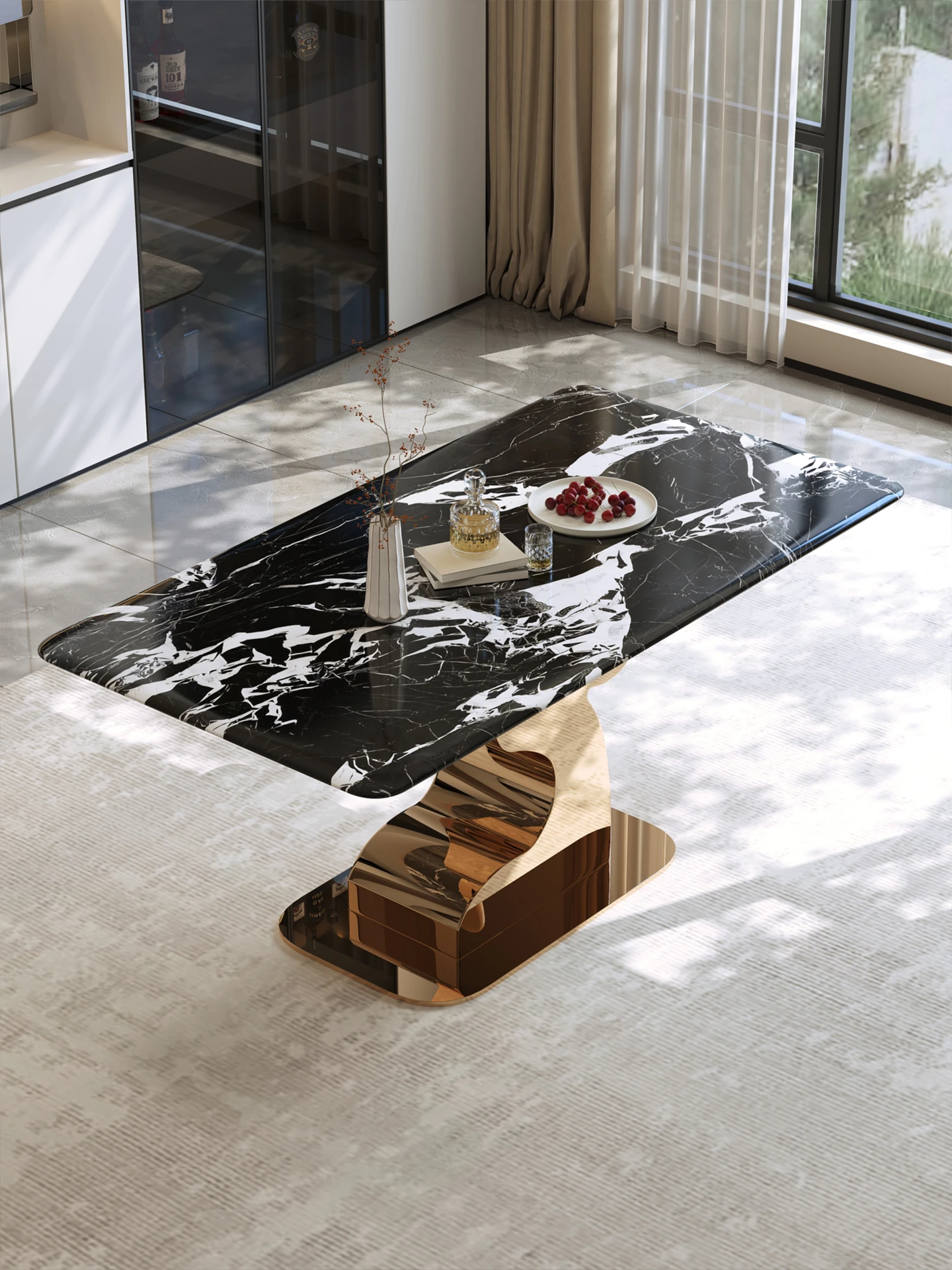 Island Designer Original Antler Luxurious Stone Dining Table - Modern Rectangular Table with Chairs for Home, Perfect for Elegant Dining Experiences.