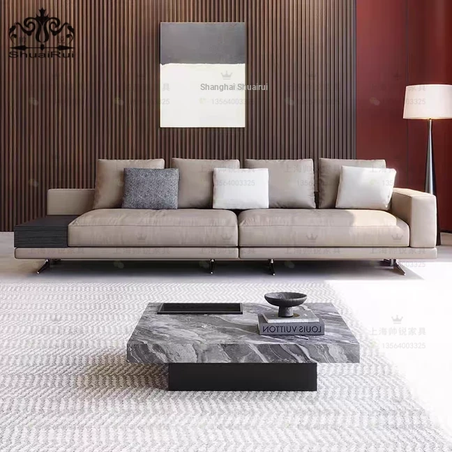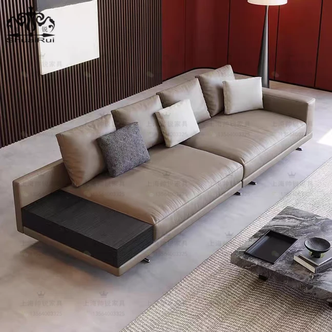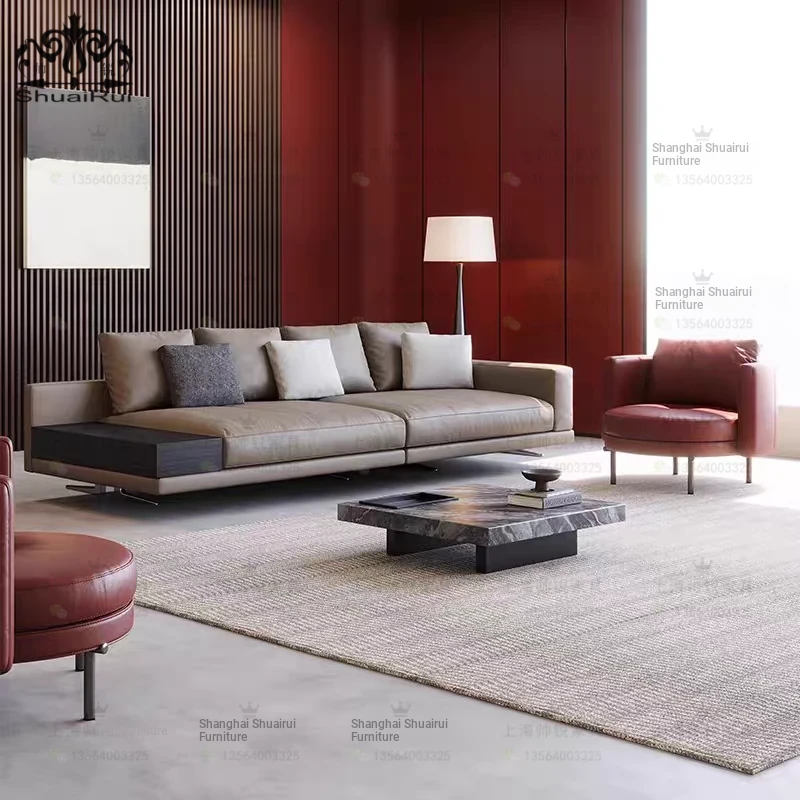 Italian Minimalist Genuine Leather Sofa for Living Room – Modern Luxury High-End Designer Creative Multi-Functional Sofa