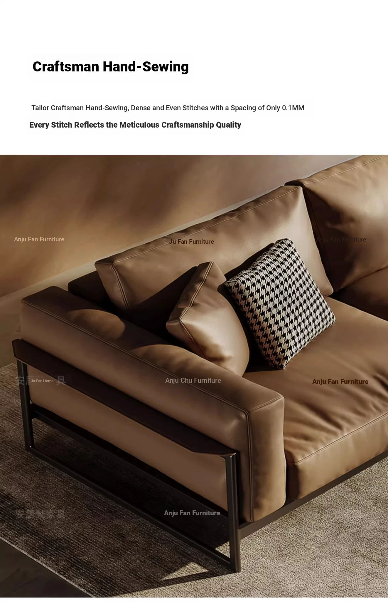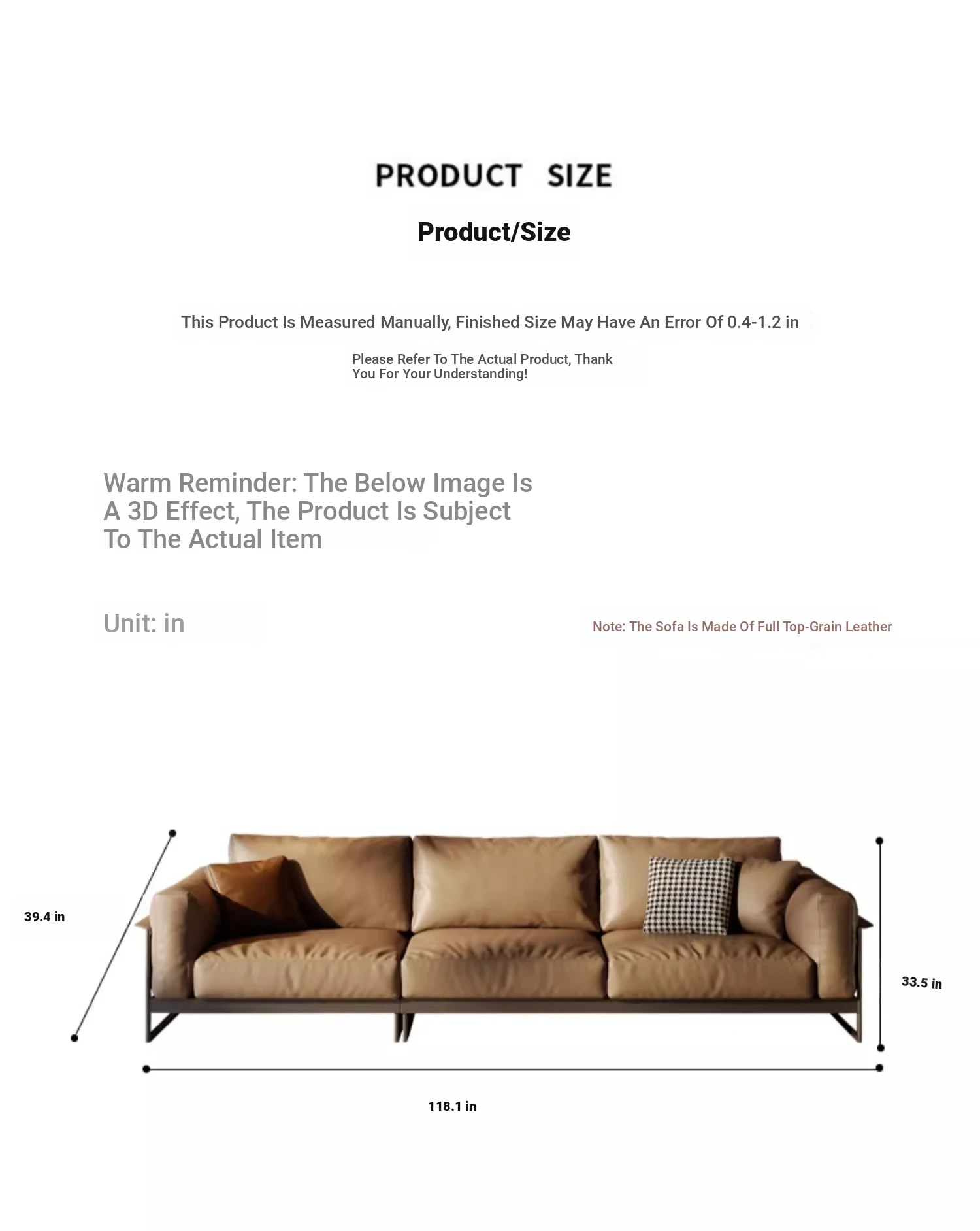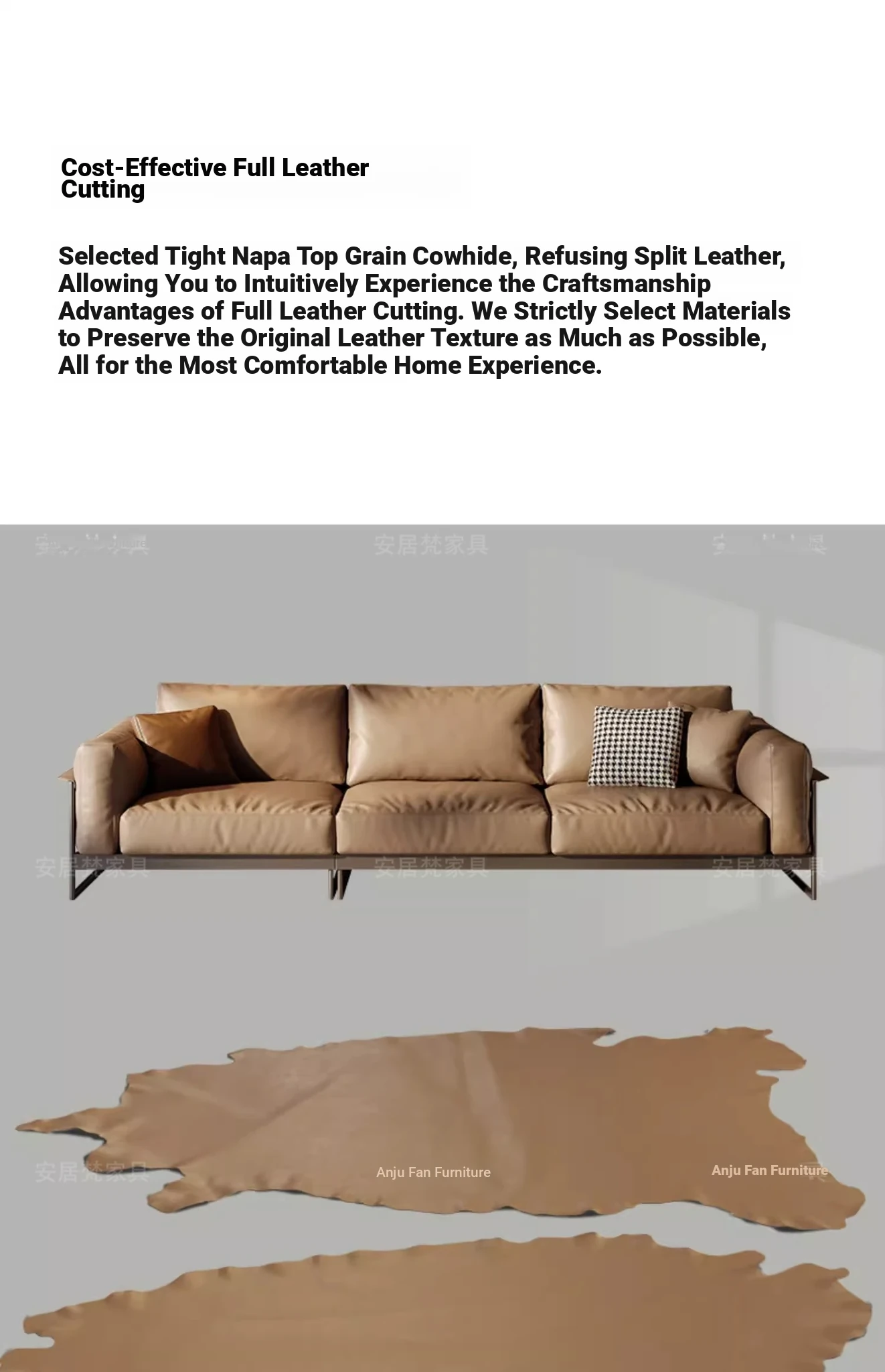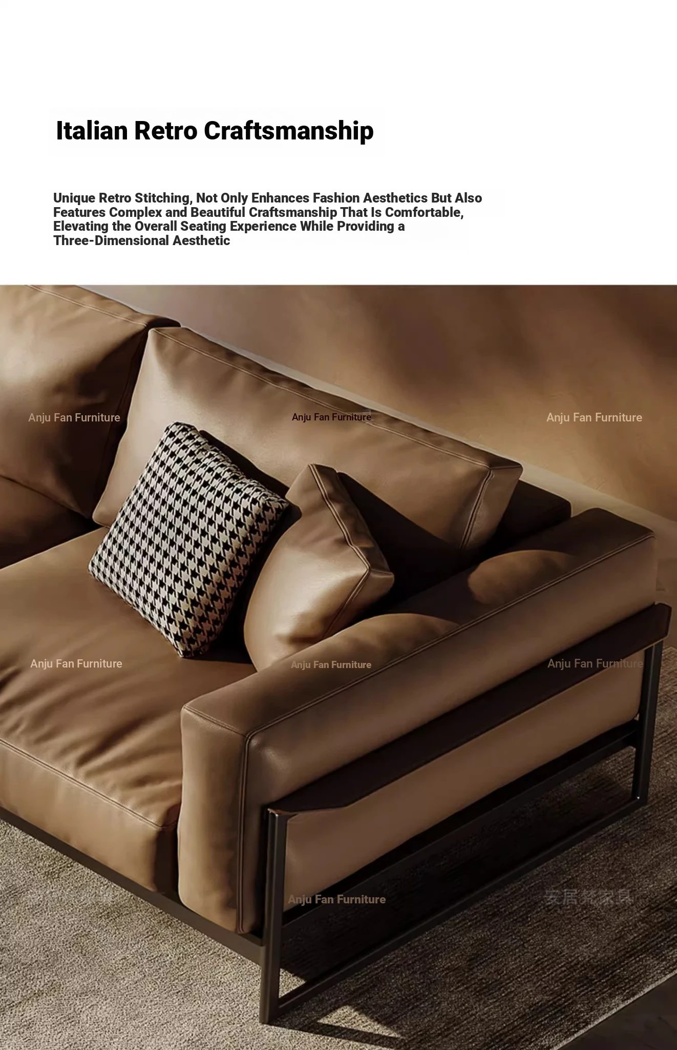 Italian Minimalist Genuine Leather Sofa - Modern Luxury Design with Top-Grain Cowhide, Perfect for Spacious Living Rooms; Features Down-Filled Cushions and Sturdy Steel Frame.