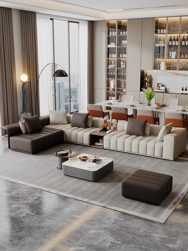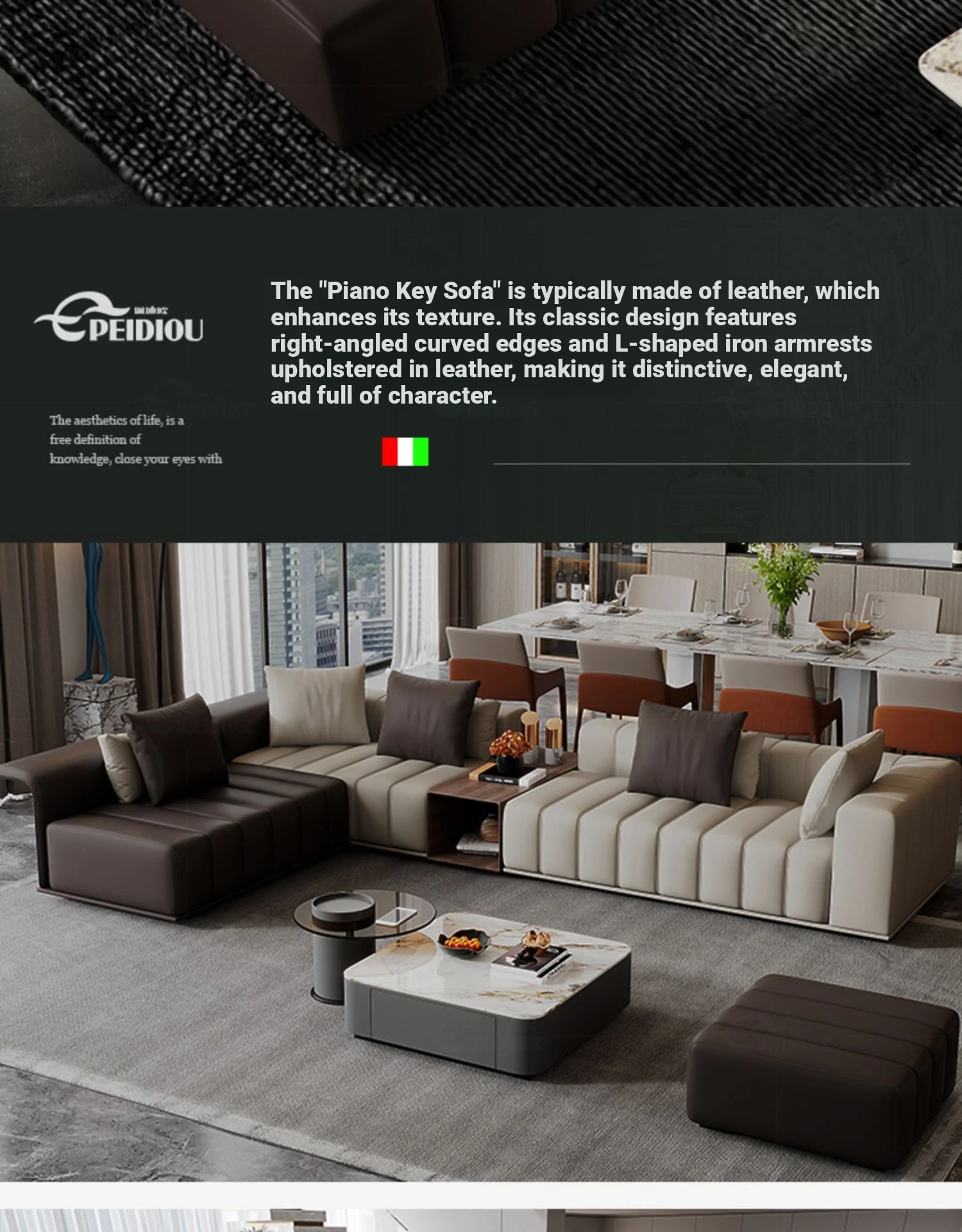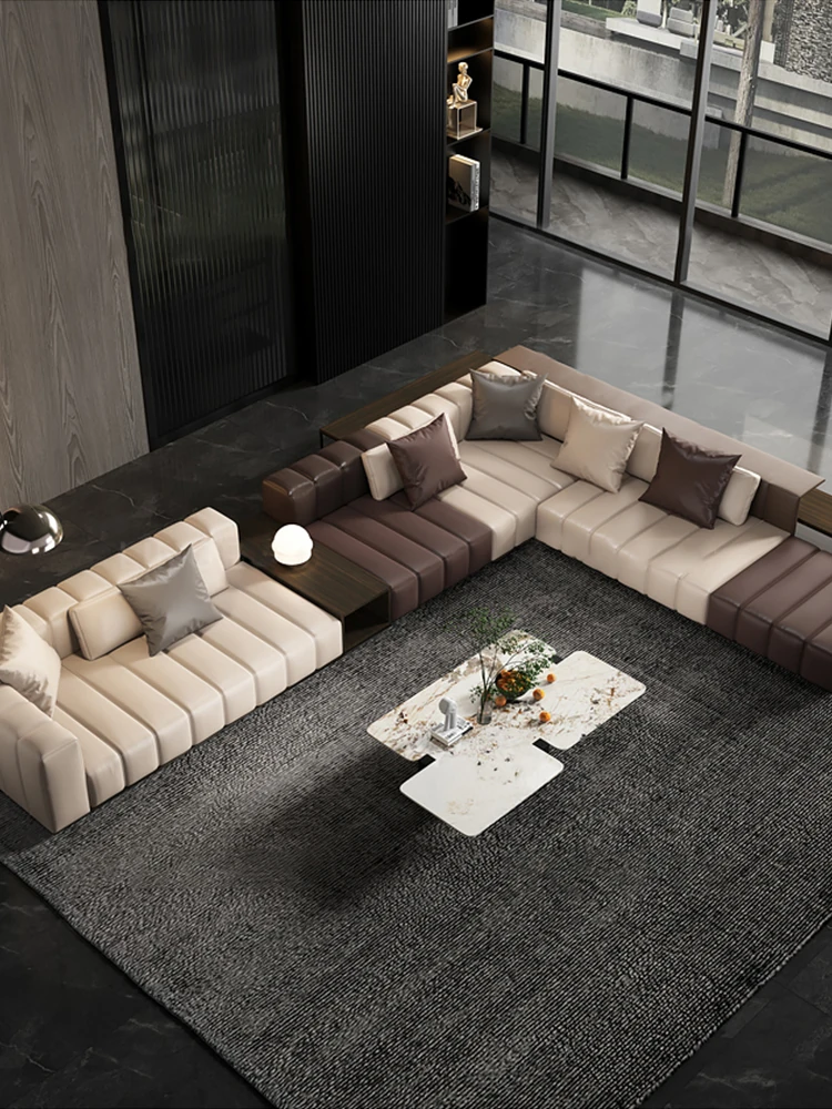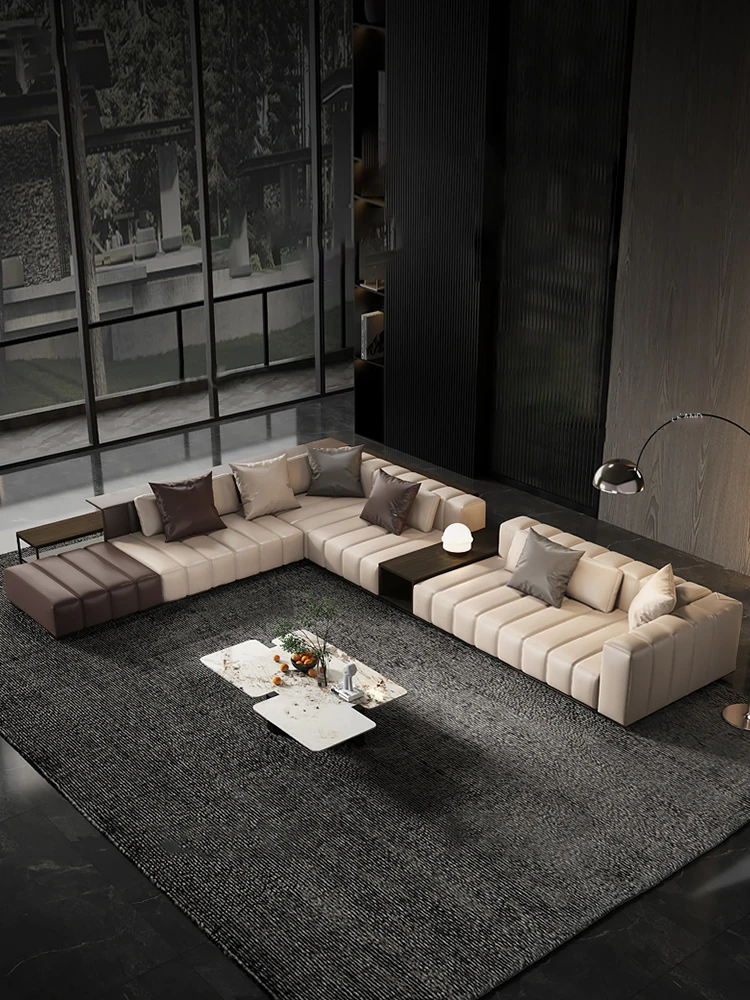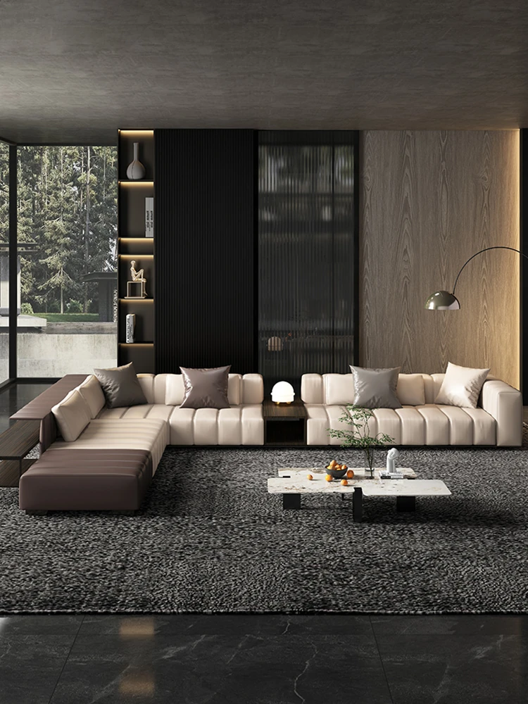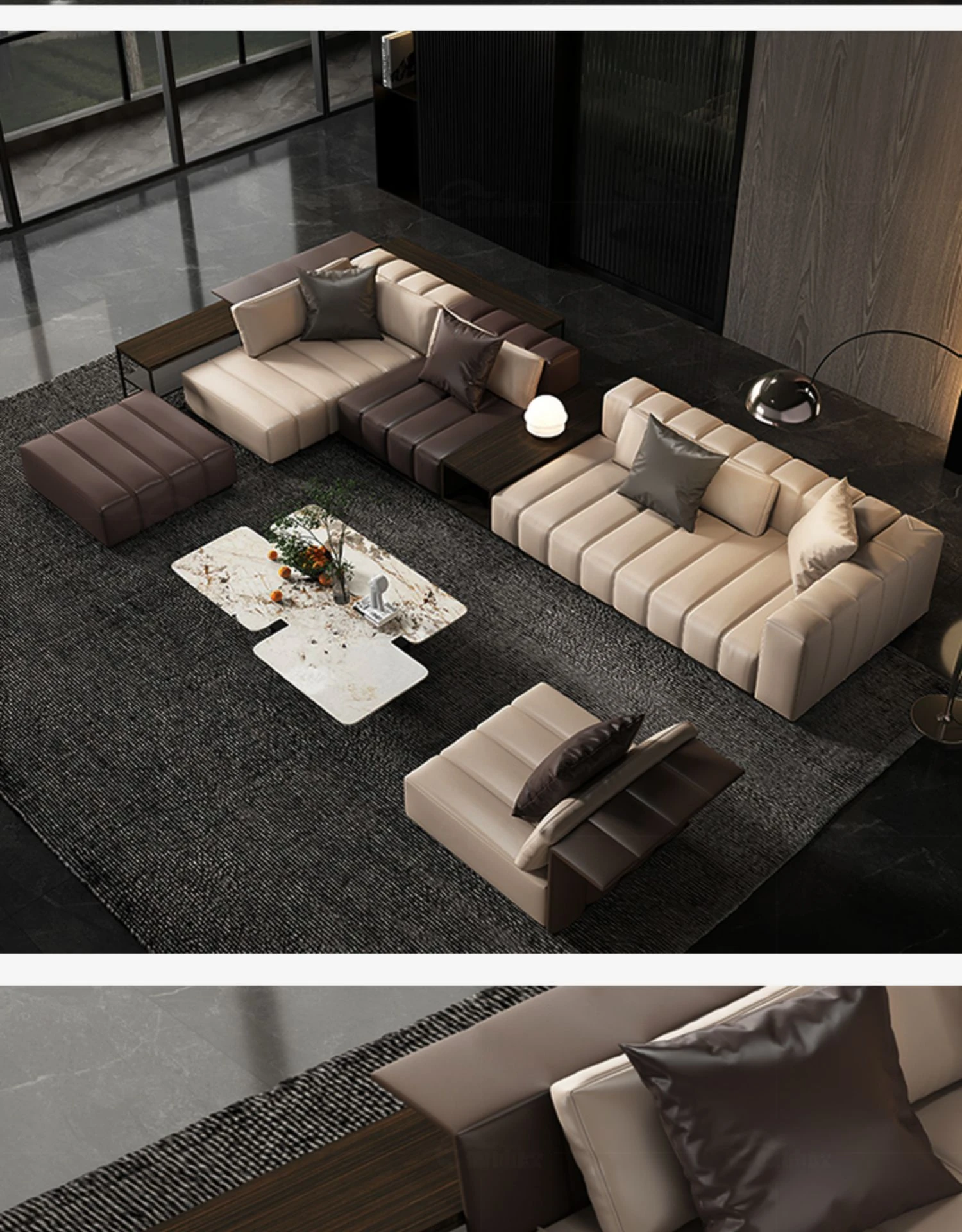 Italian Minimalist Genuine Leather Sofa - Top Grain Cowhide with Piano Key Design, Perfect for Villas and Spacious Living Rooms - Freeman Corner Sofa Set