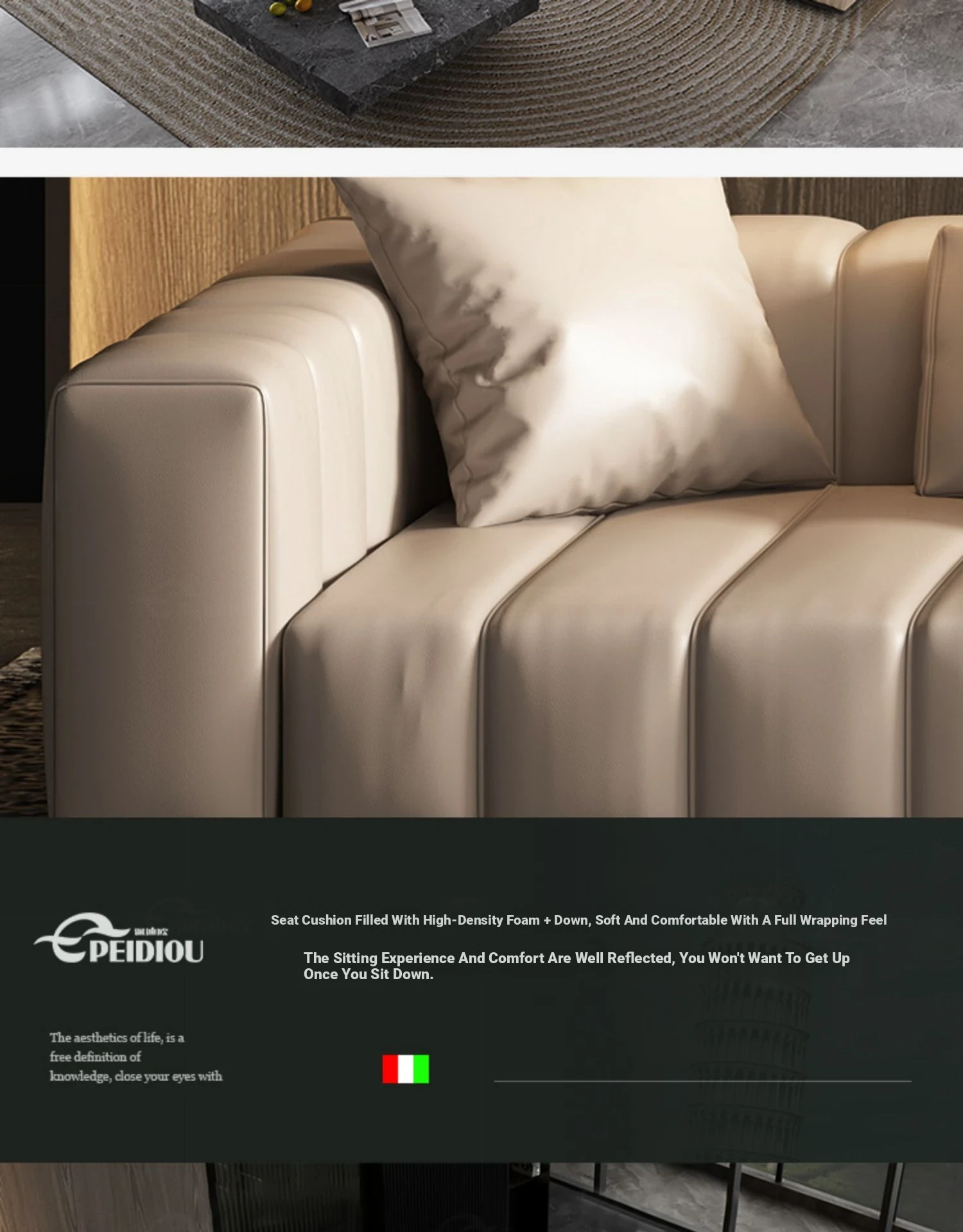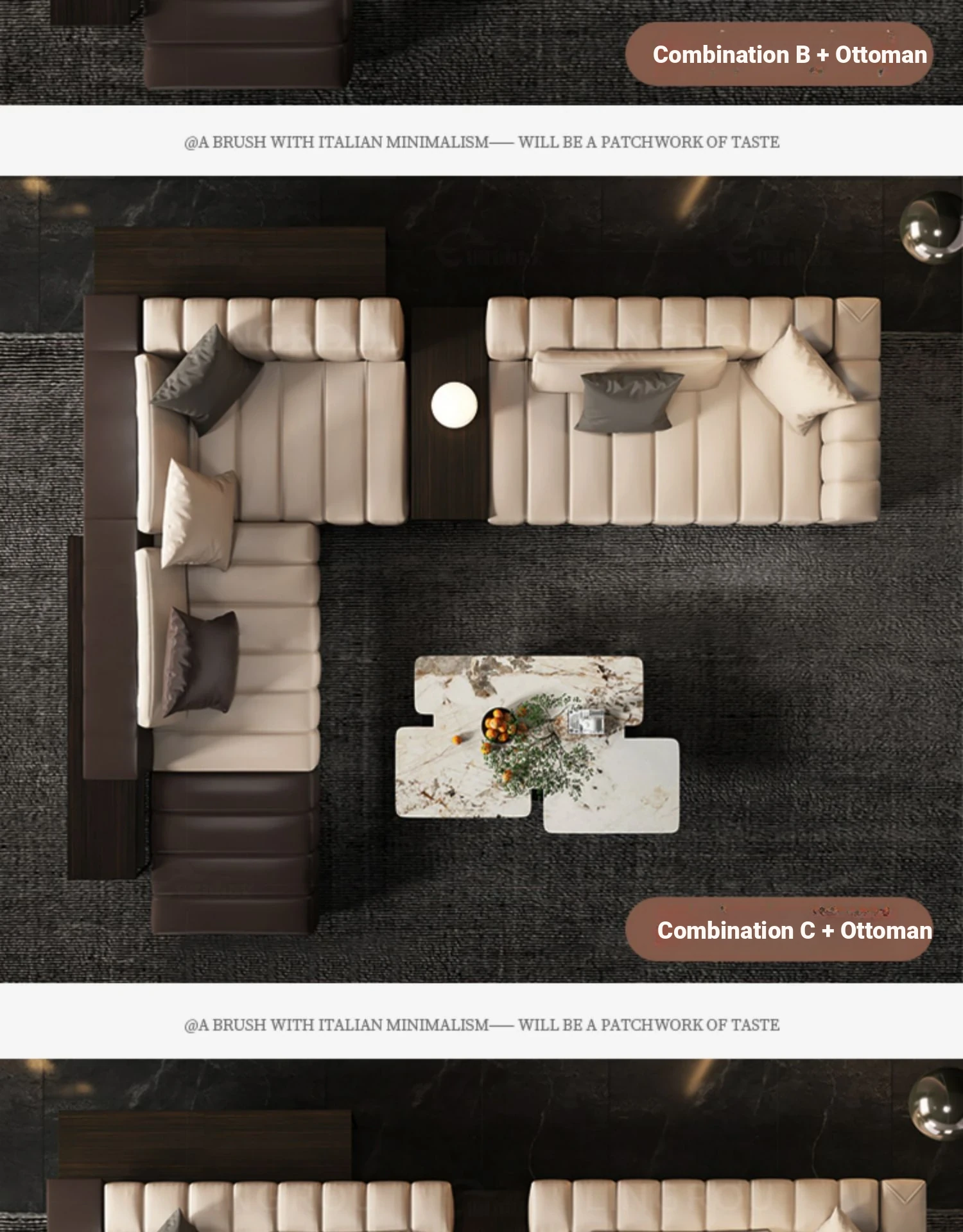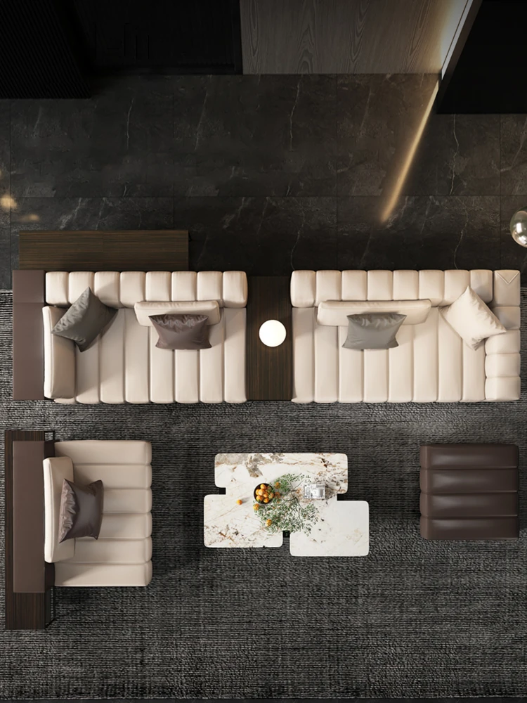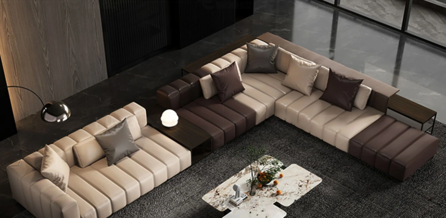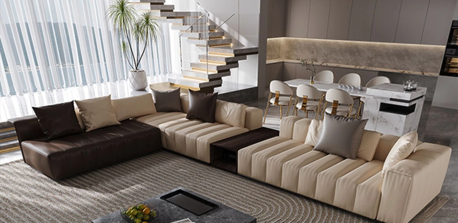 Italian Minimalist Genuine Leather Sofa - Top Grain Cowhide with Piano Key Design, Perfect for Villas and Spacious Living Rooms - Freeman Corner Sofa Set