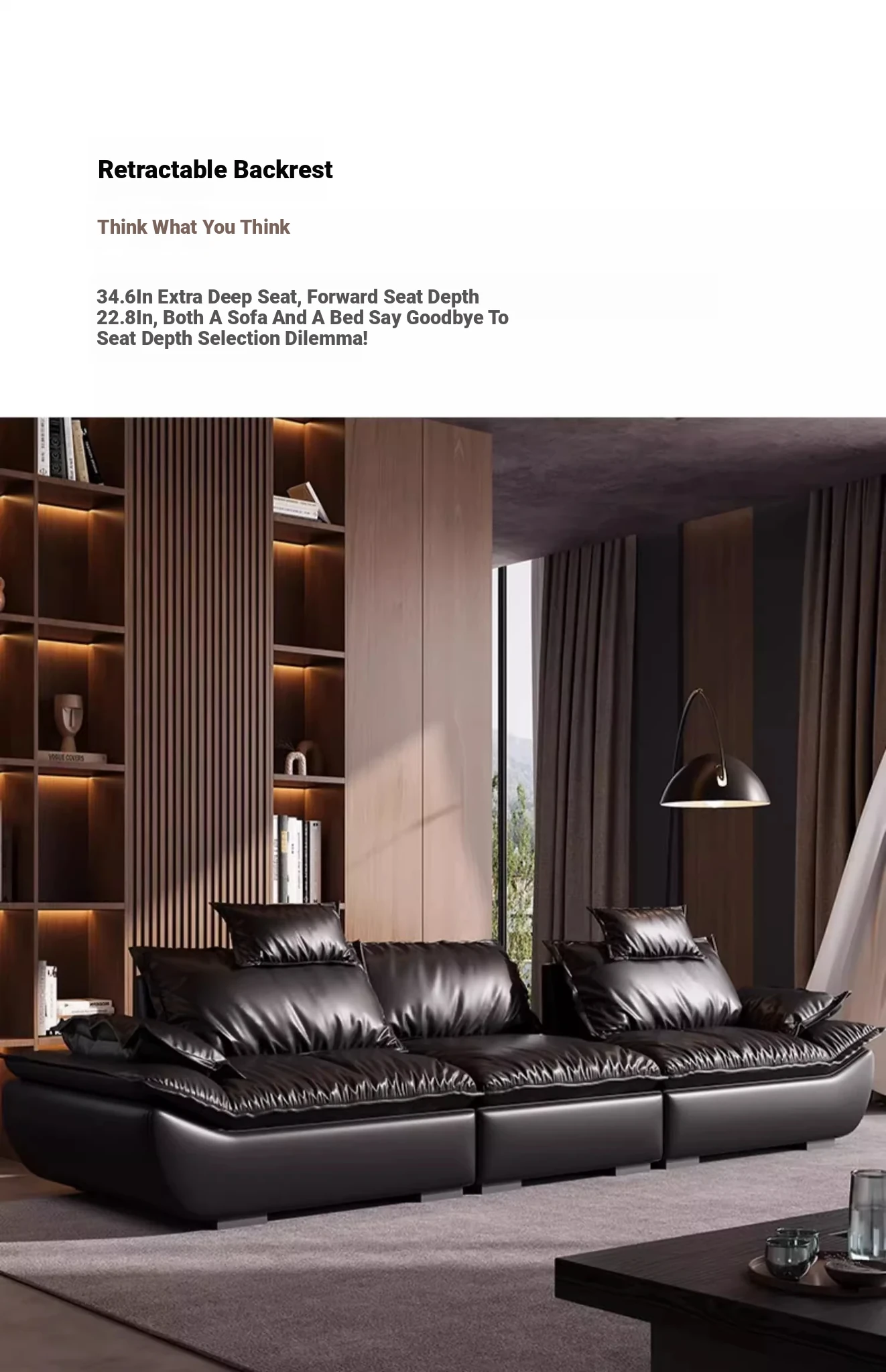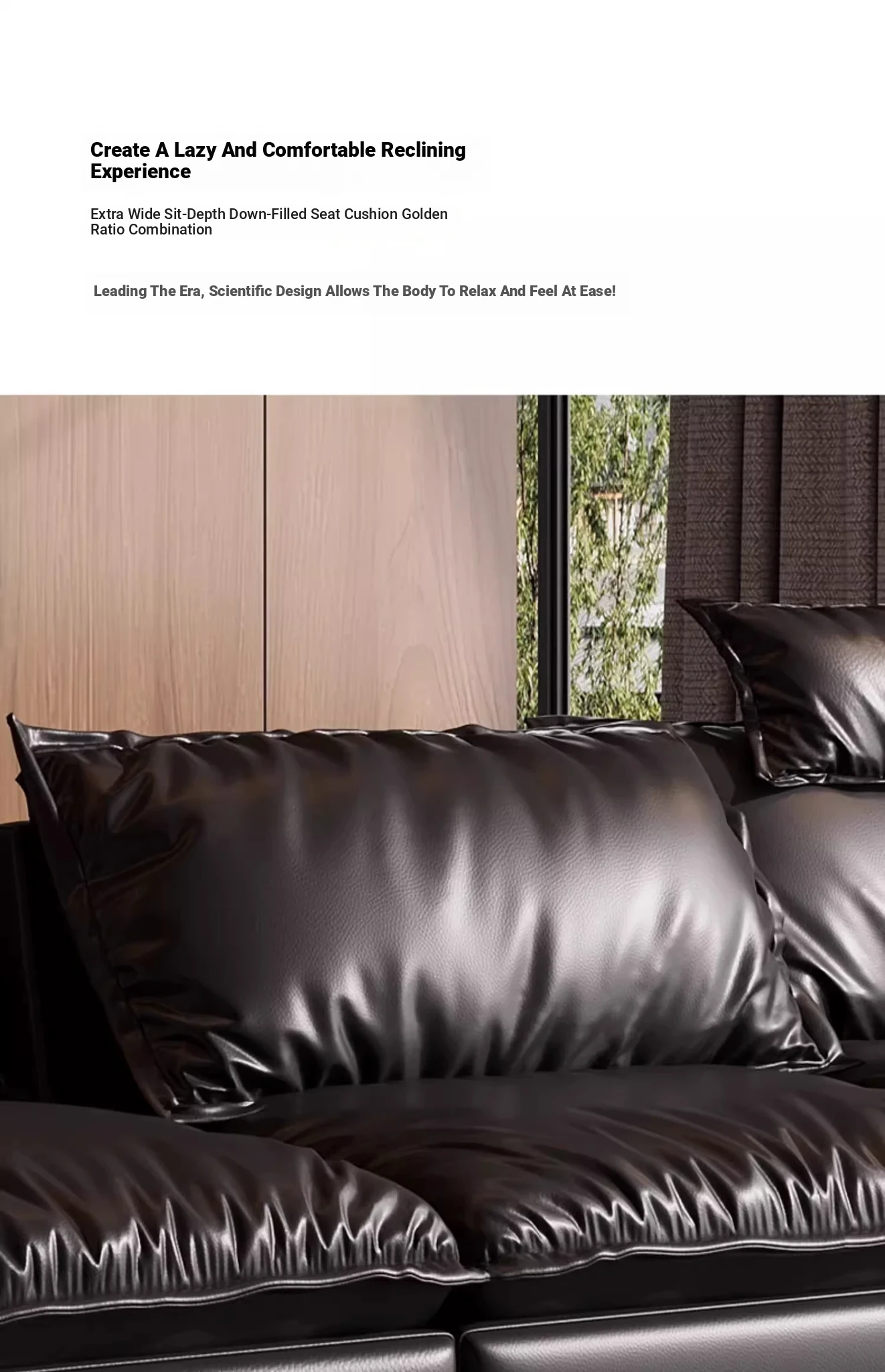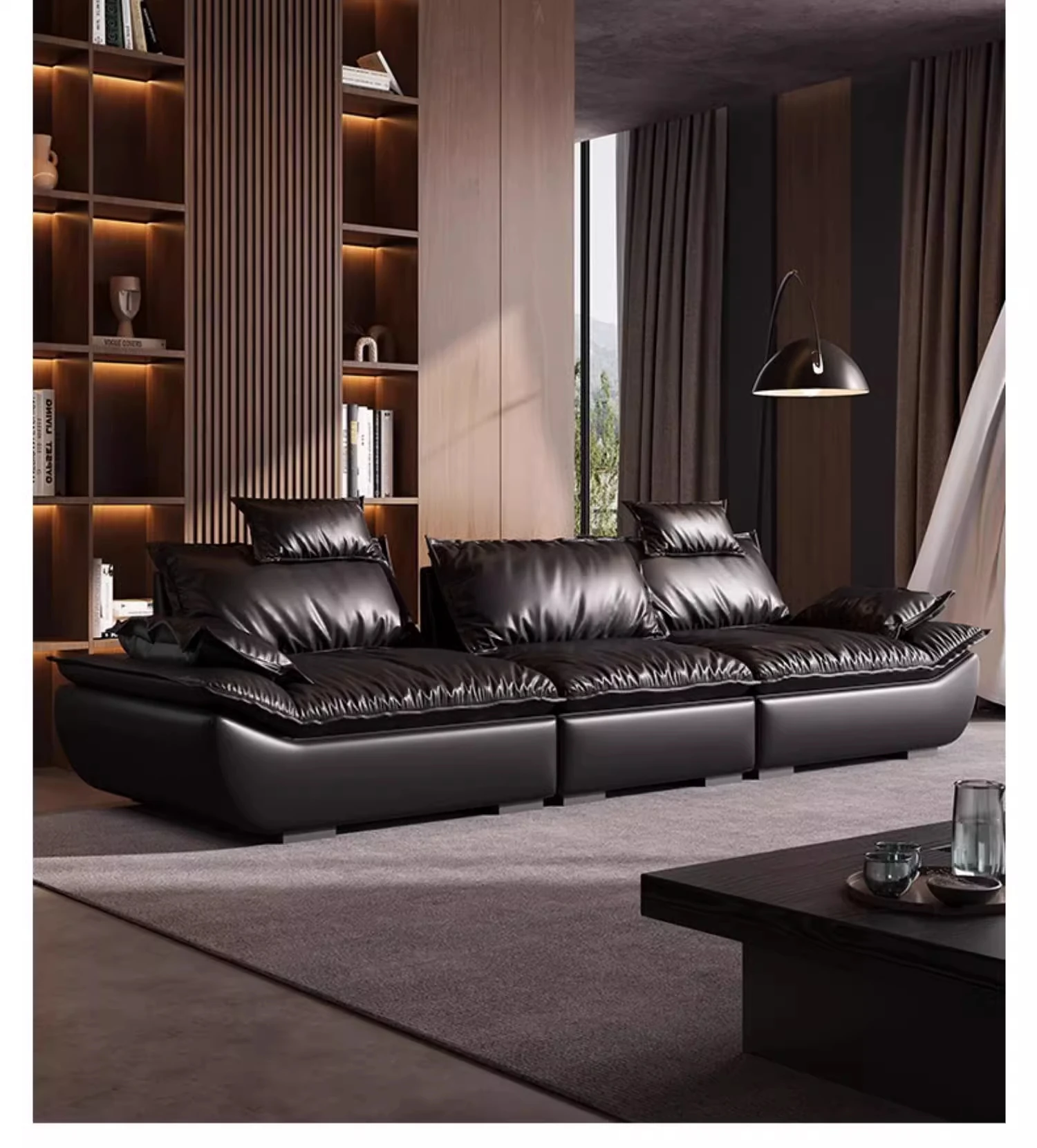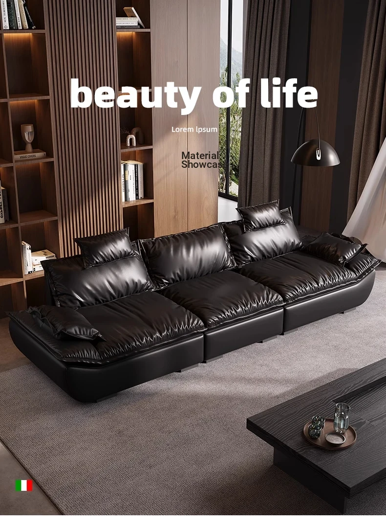 Italian Minimalist Sailboat Sofa - Luxurious Black Top-Grain Leather, Adjustable Backrest, Deep Seating - Perfect for Villas and Living Rooms