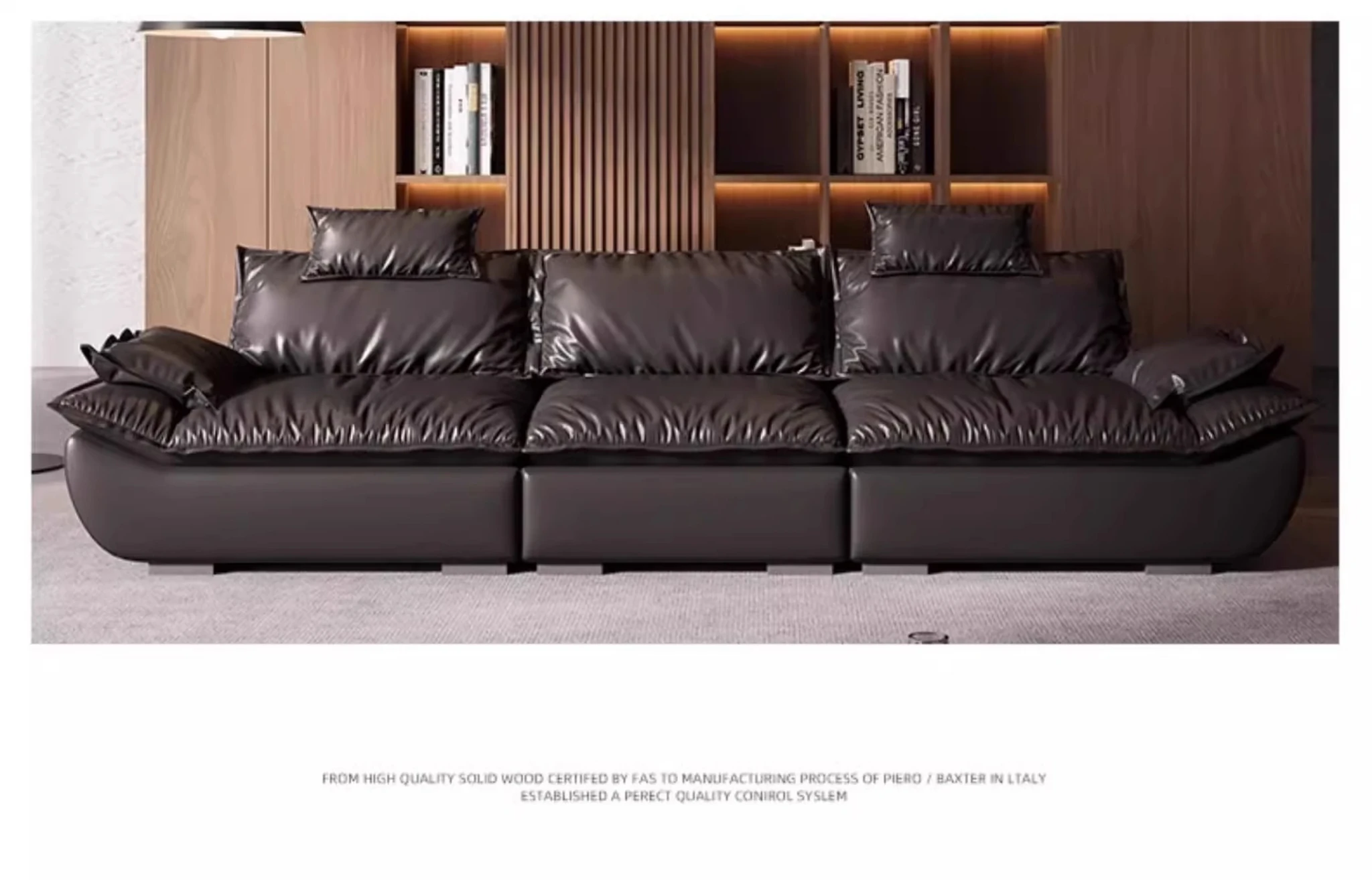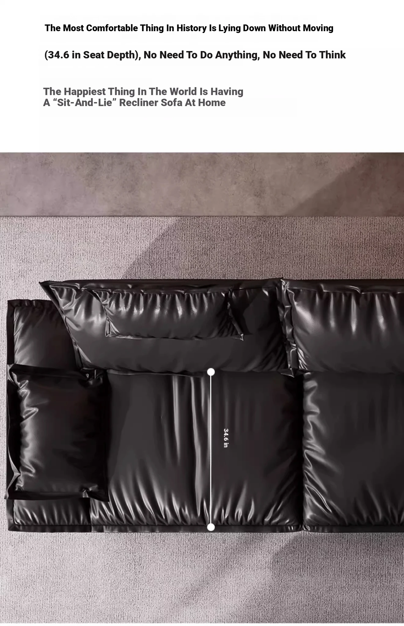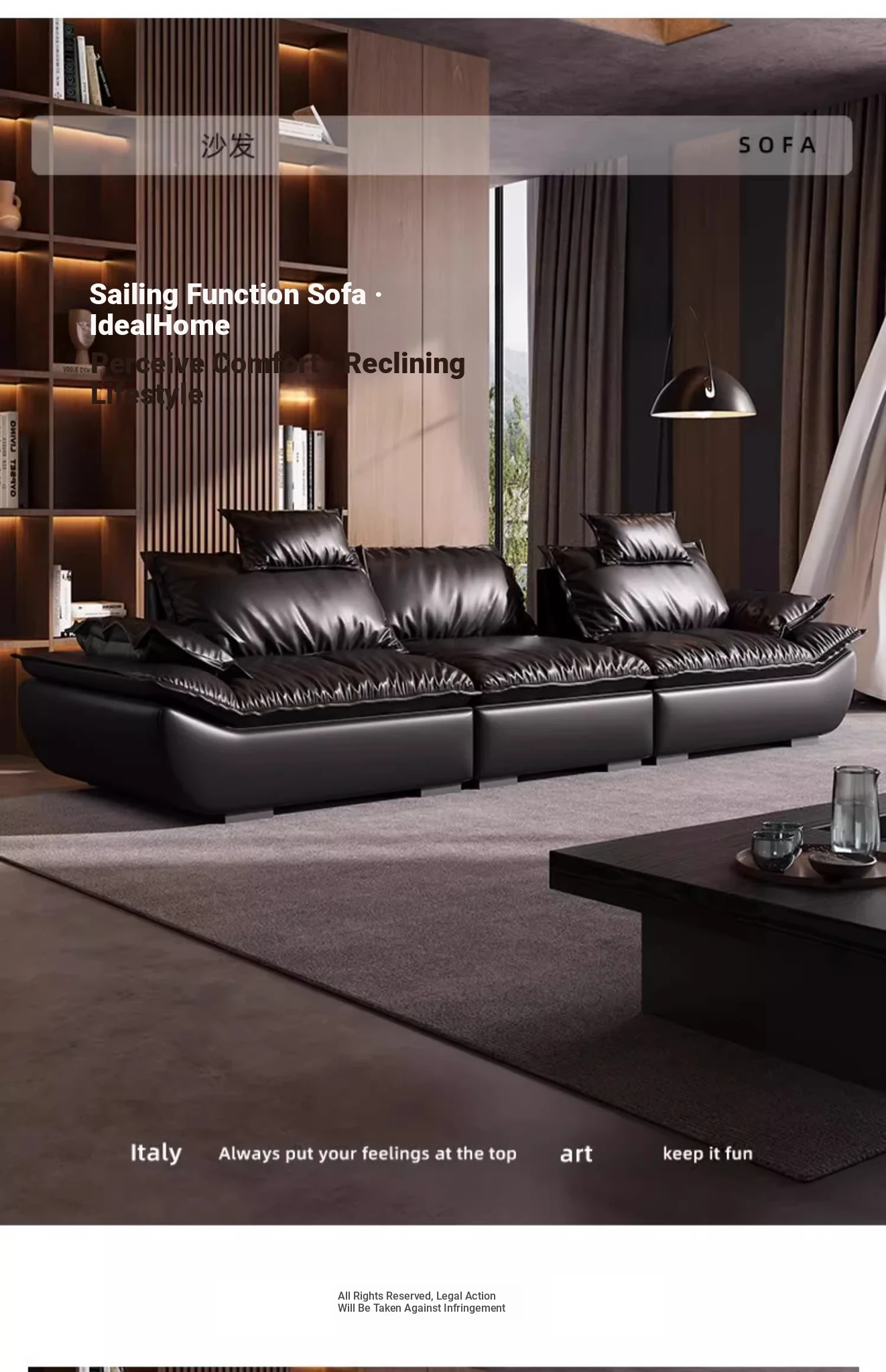 Italian Minimalist Sailboat Sofa - Luxurious Black Top-Grain Leather, Adjustable Backrest, Deep Seating - Perfect for Villas and Living Rooms