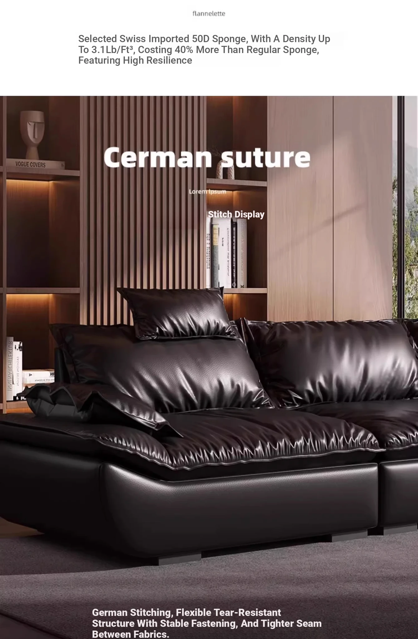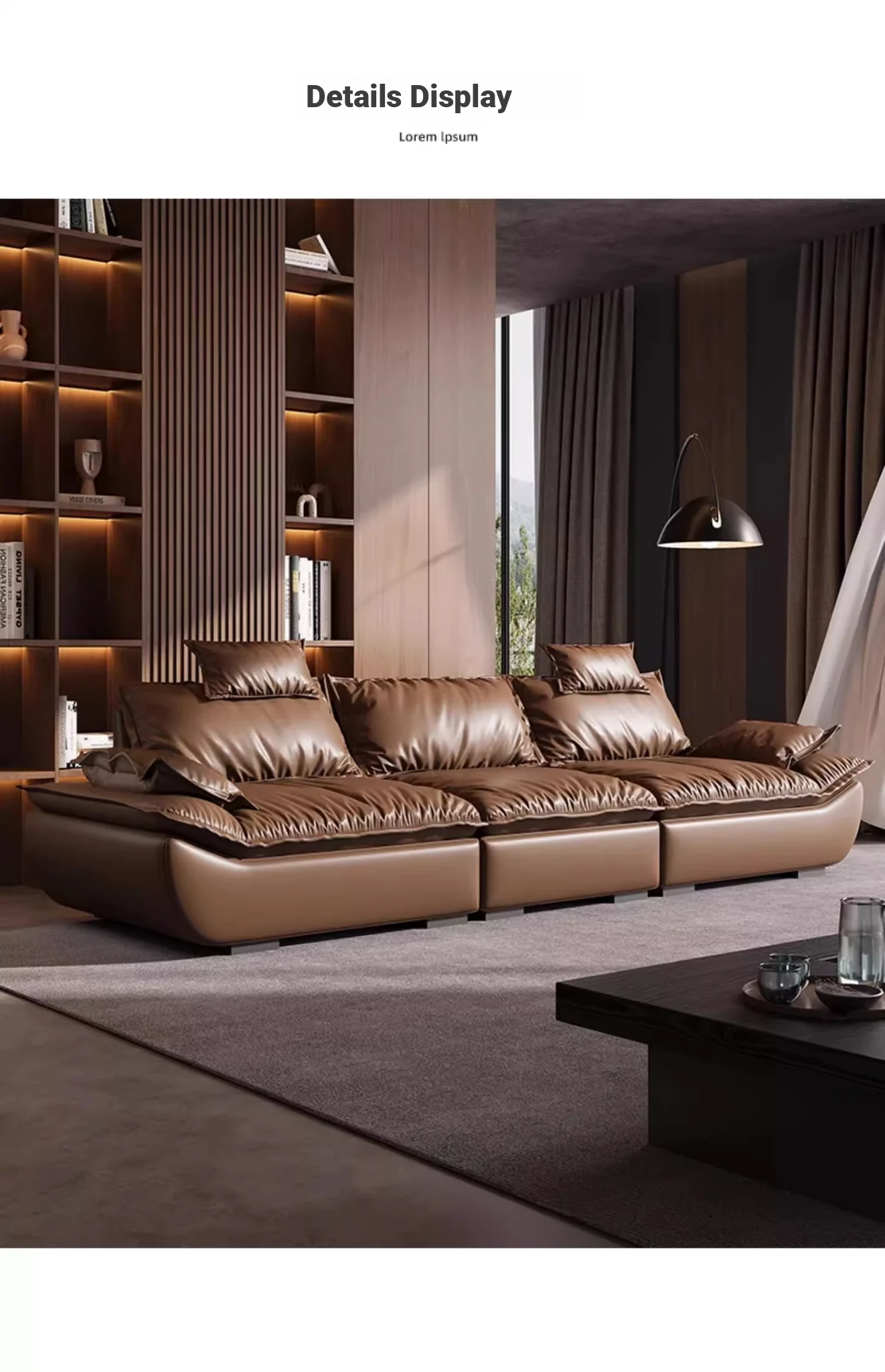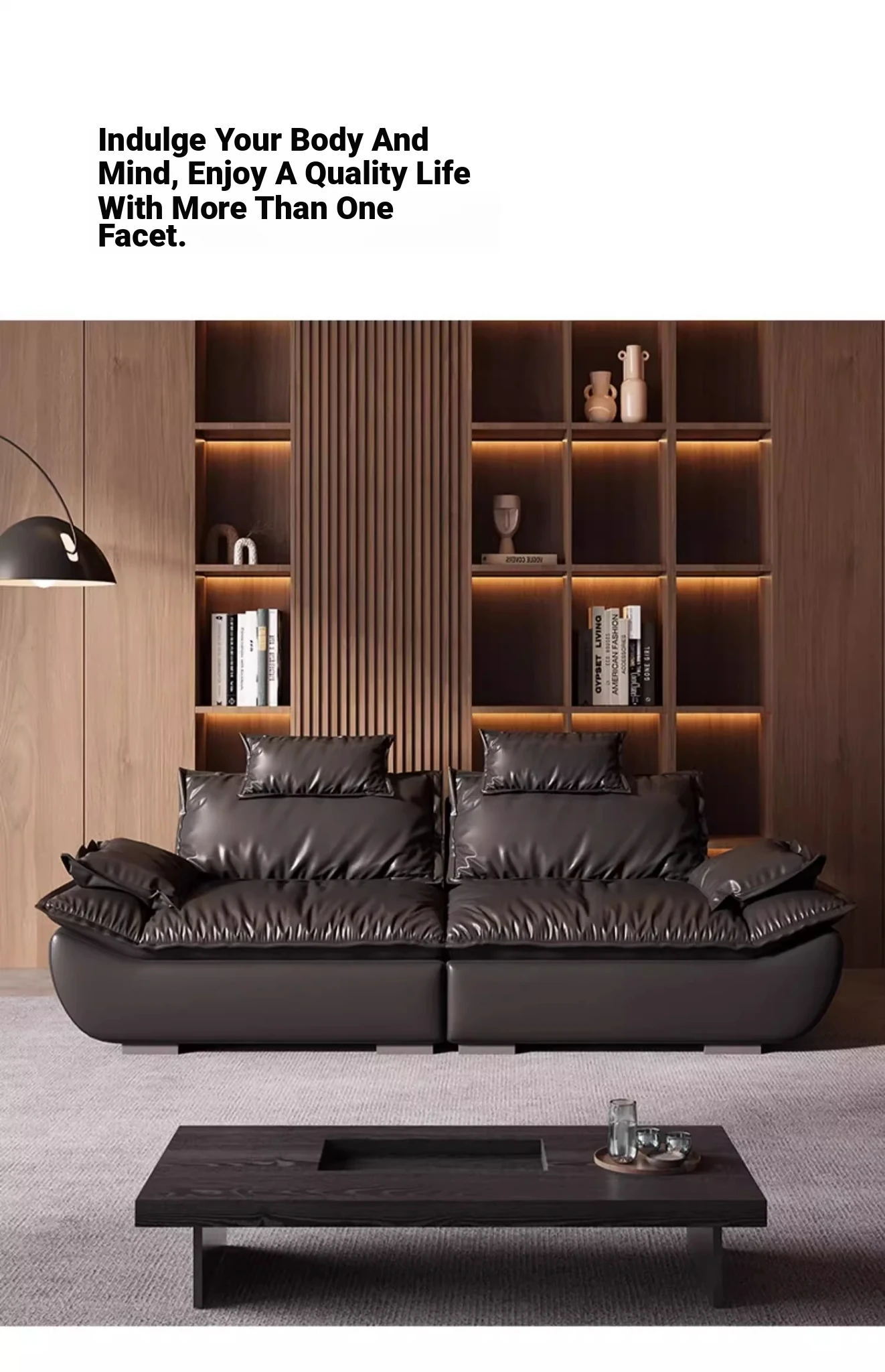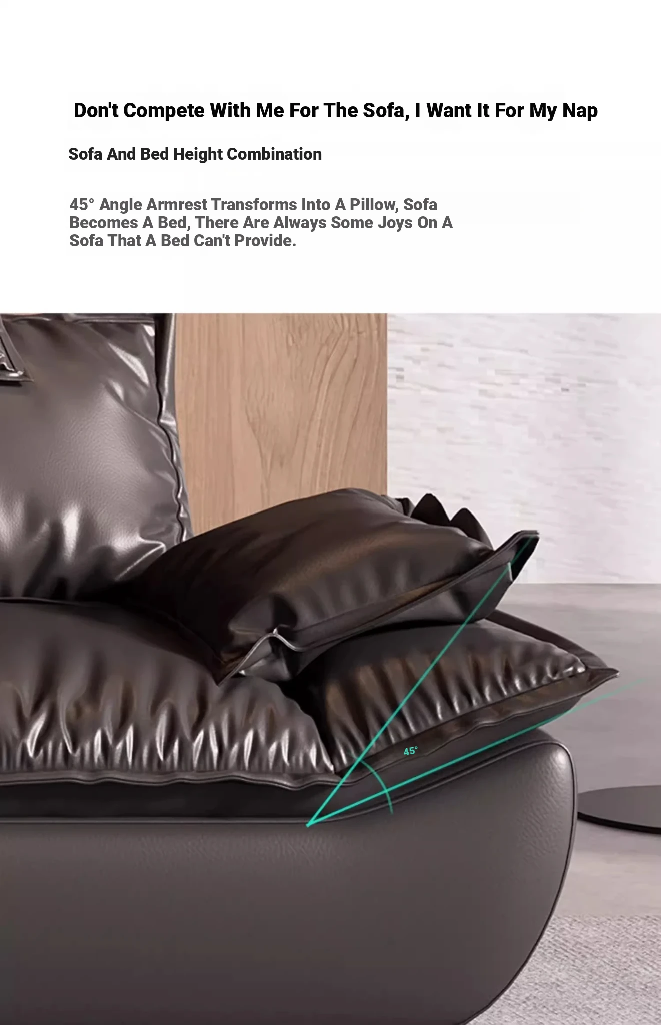 Italian Minimalist Sailboat Sofa - Luxurious Black Top-Grain Leather, Adjustable Backrest, Deep Seating - Perfect for Villas and Living Rooms