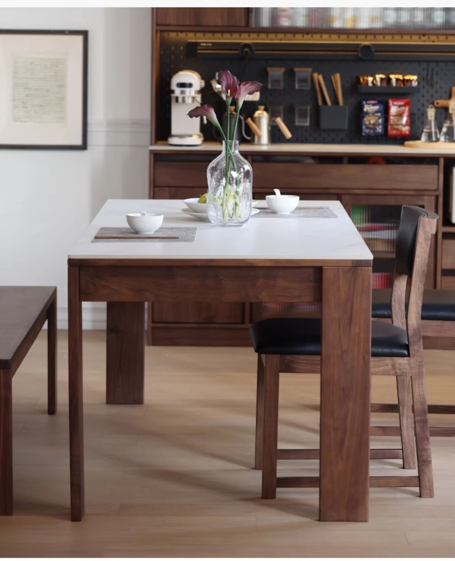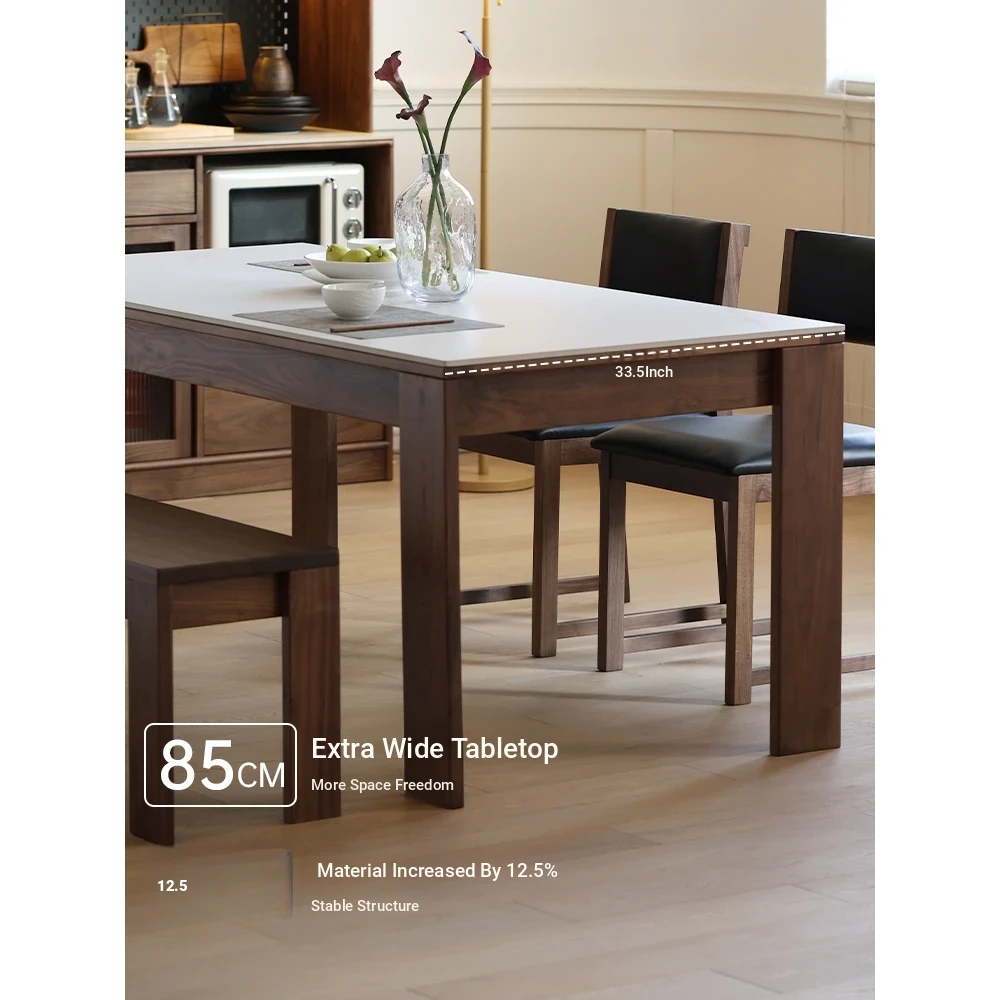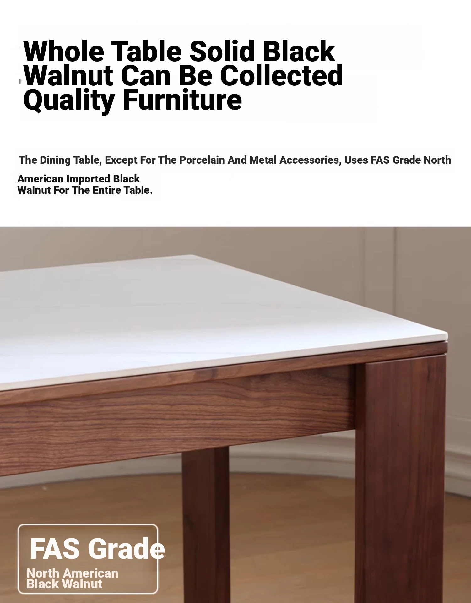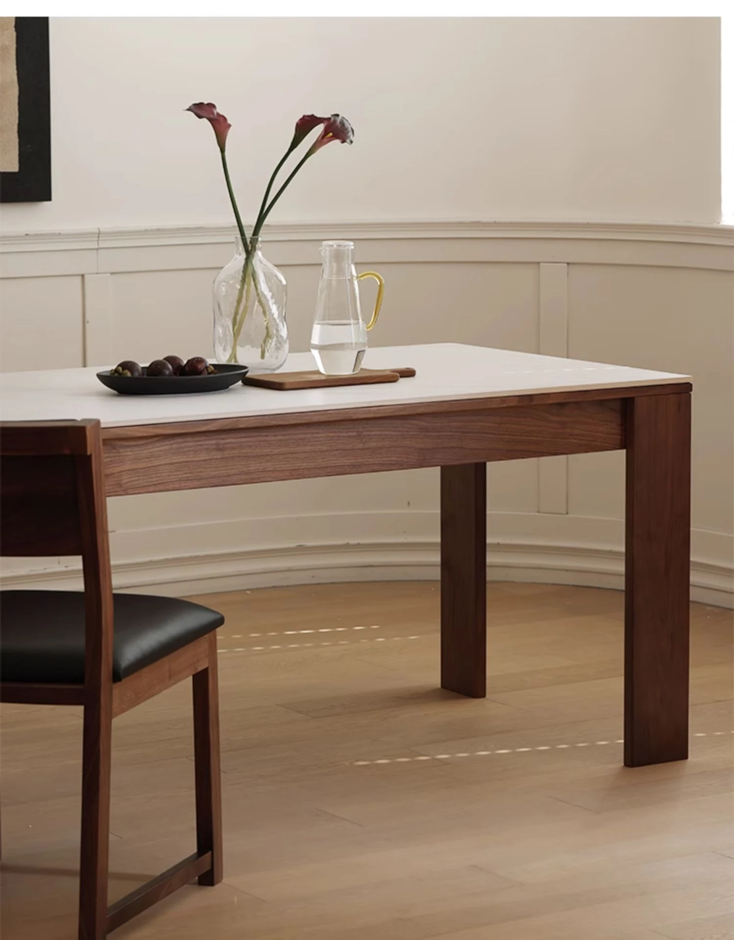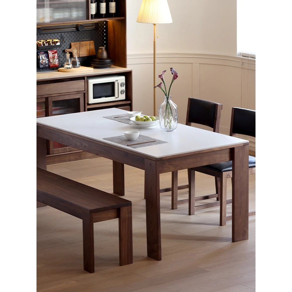 Modern Black Walnut Dining Table - Rectangular, Minimalist Design, Matte Finish, Ideal for Home, Light Luxury Style, Perfect for Family Gatherings and Elegant Dining Experiences.