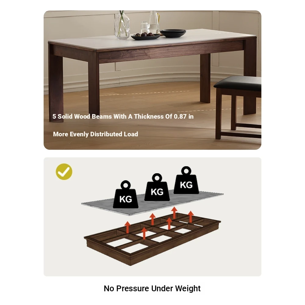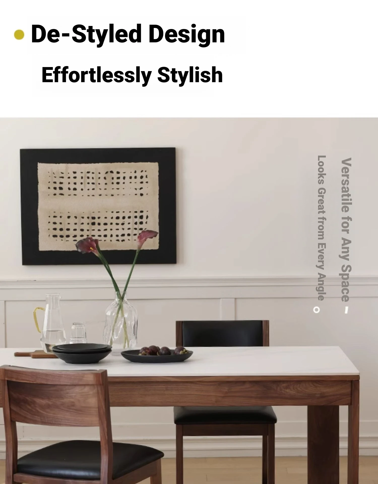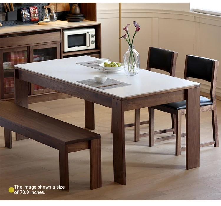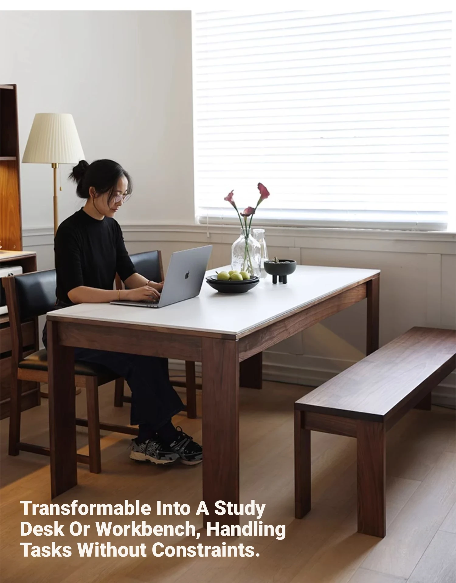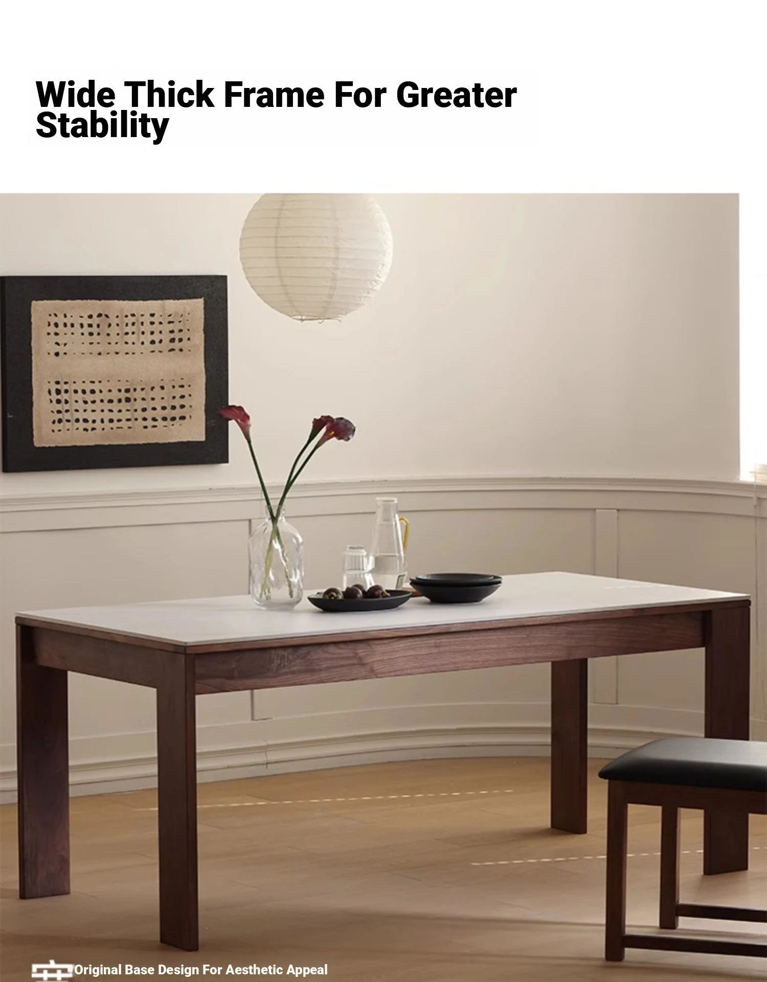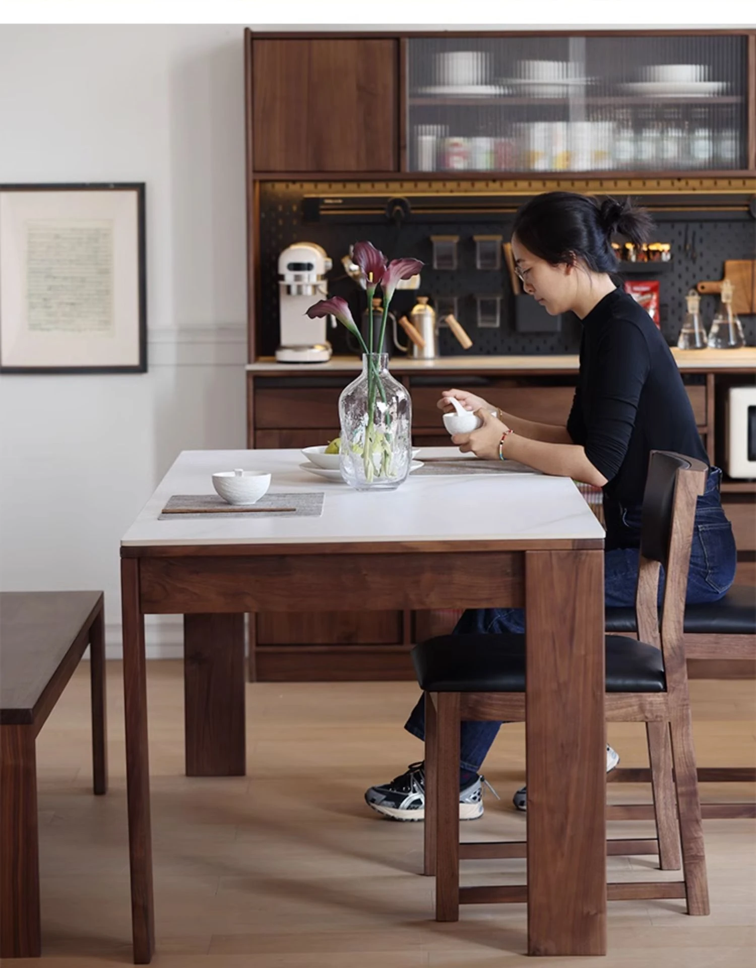 Modern Black Walnut Dining Table - Rectangular, Minimalist Design, Matte Finish, Ideal for Home, Light Luxury Style, Perfect for Family Gatherings and Elegant Dining Experiences.