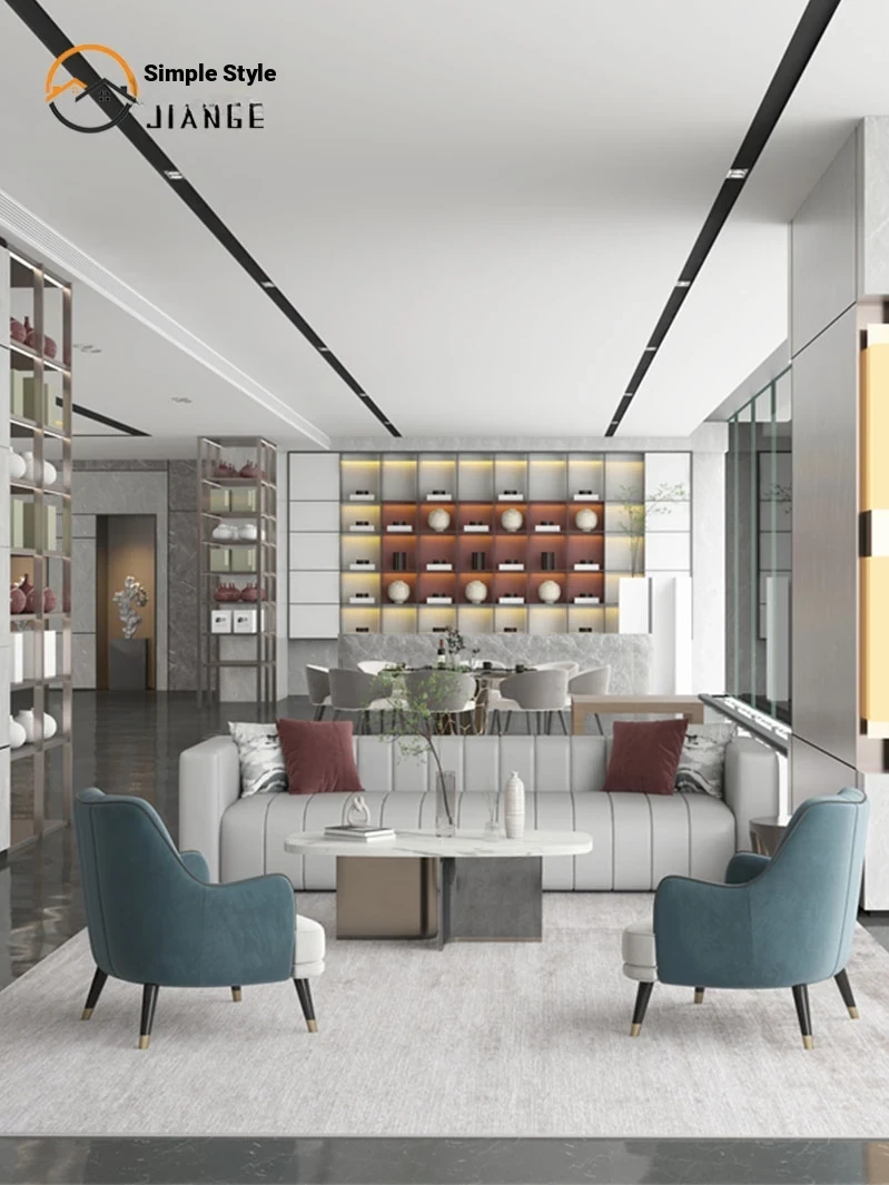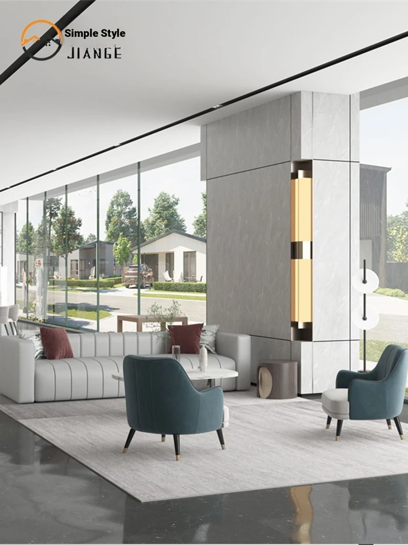 Modern Light Luxury Reception Sofa for Sales Office - Stylish Fabric and Leather Sofa for Hotel Lobby and Marketing Center, Perfect for Client Meetings and Discussions