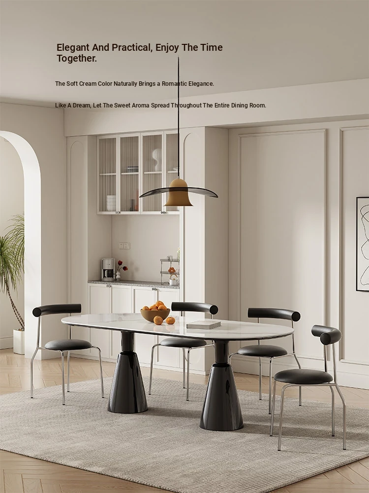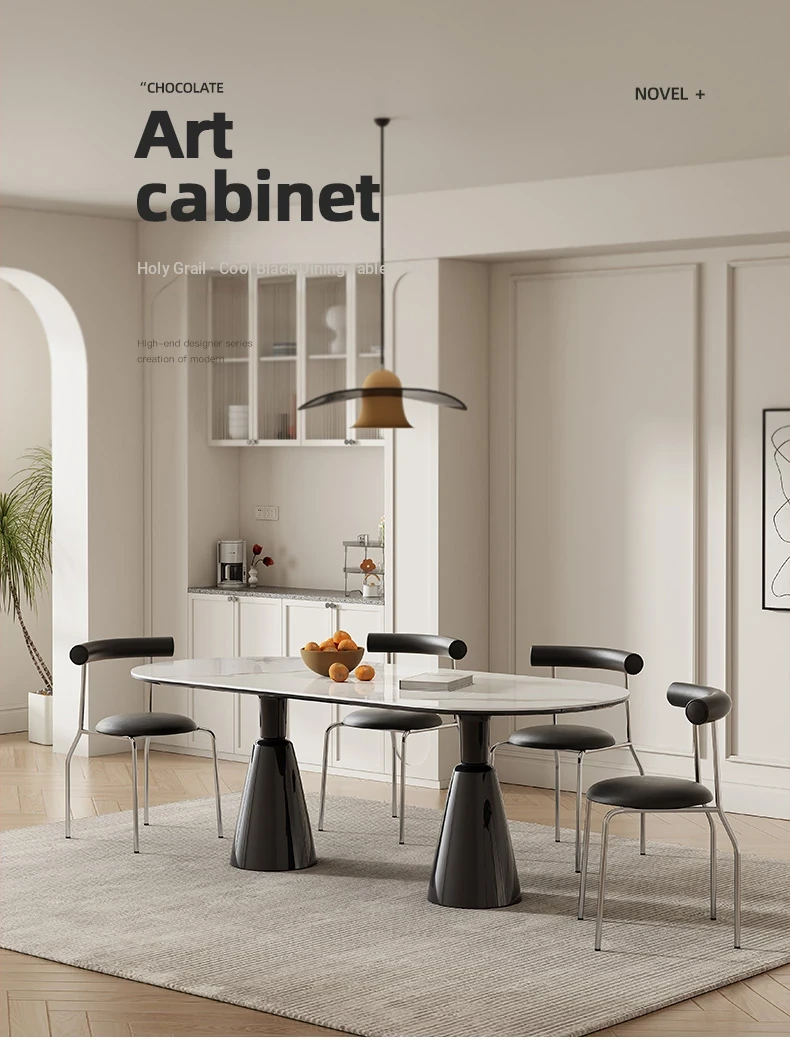 Modern Minimalist Black Stone Dining Table and Chair Set - Stylish Italian Design for Small Spaces, Perfect for Home Dining Rooms, Trendy and Creative Furniture