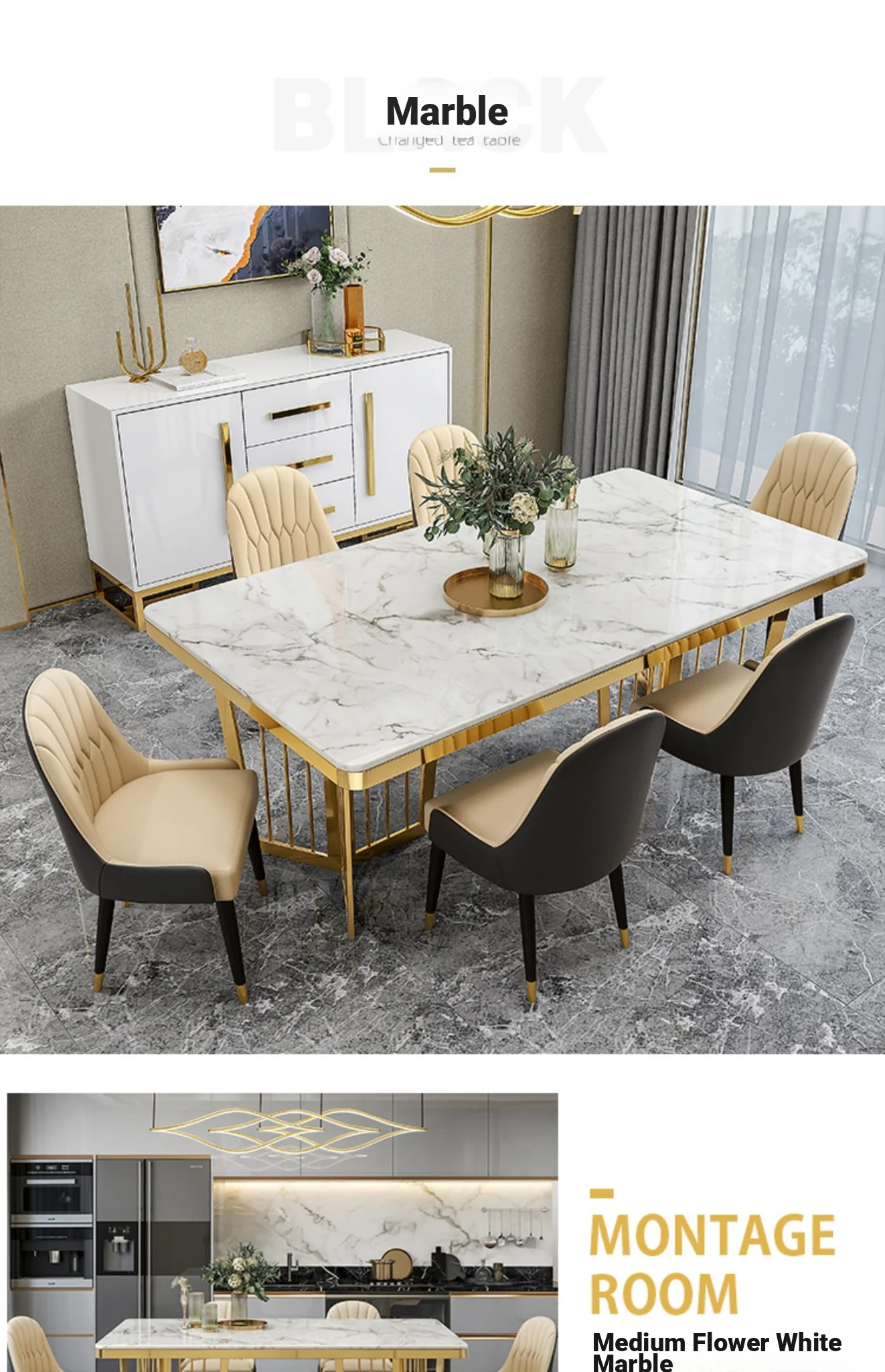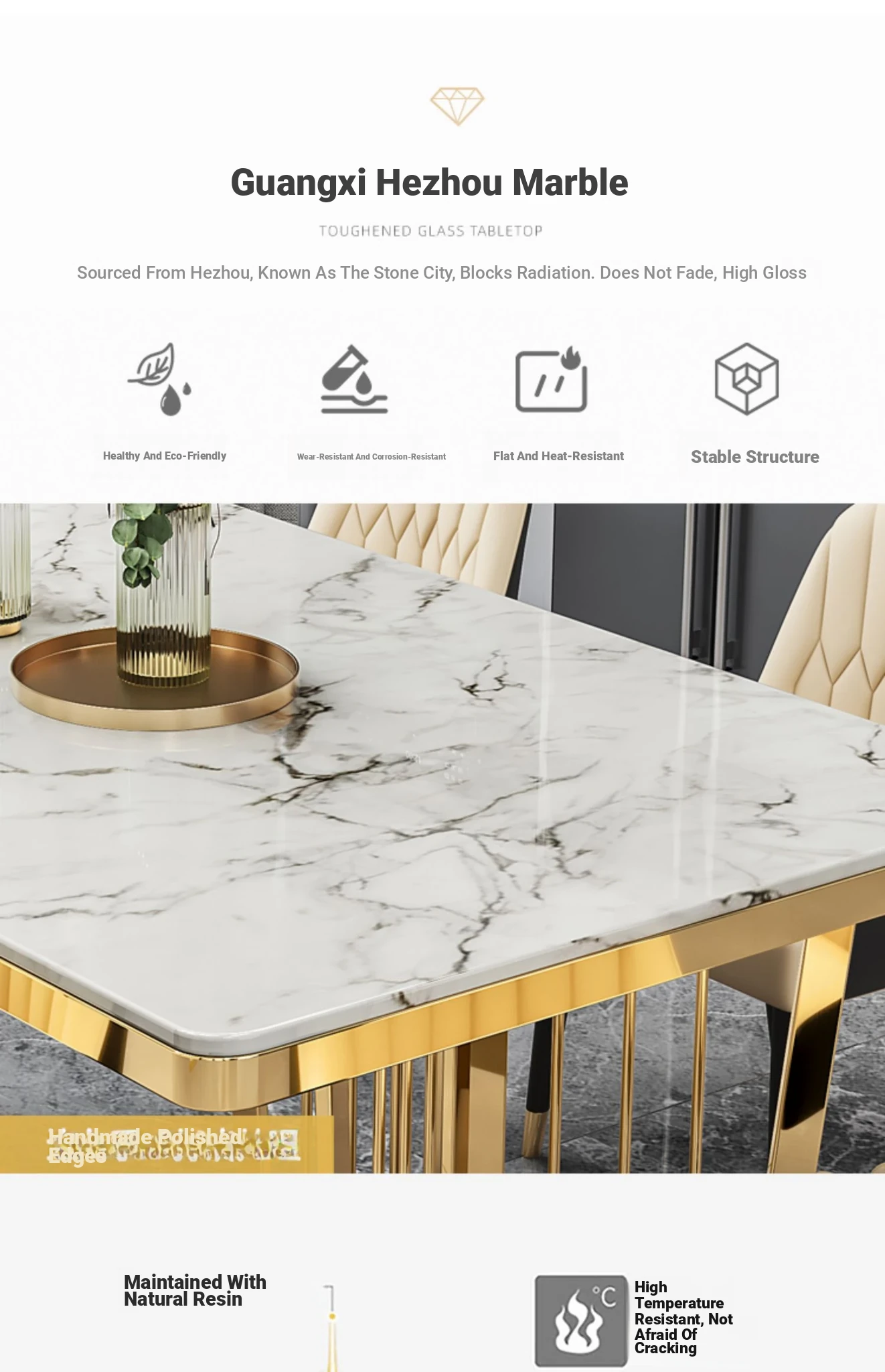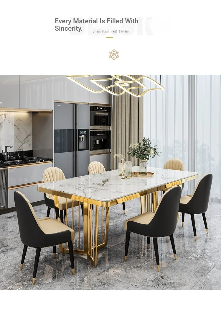 Modern Minimalist Marble Dining Table and Chair Set - Elegant Luxury Design for Small Spaces, Rectangular Nordic Style, Perfect for Home Dining