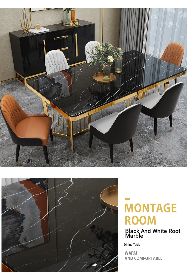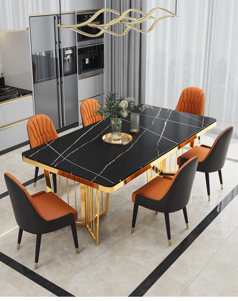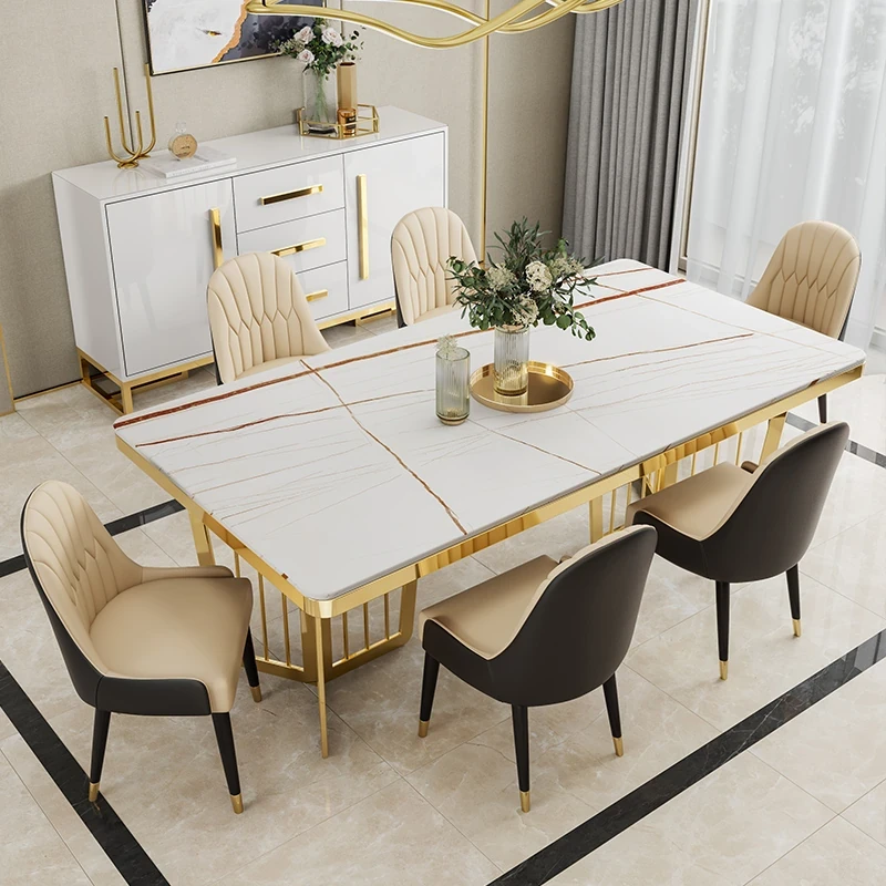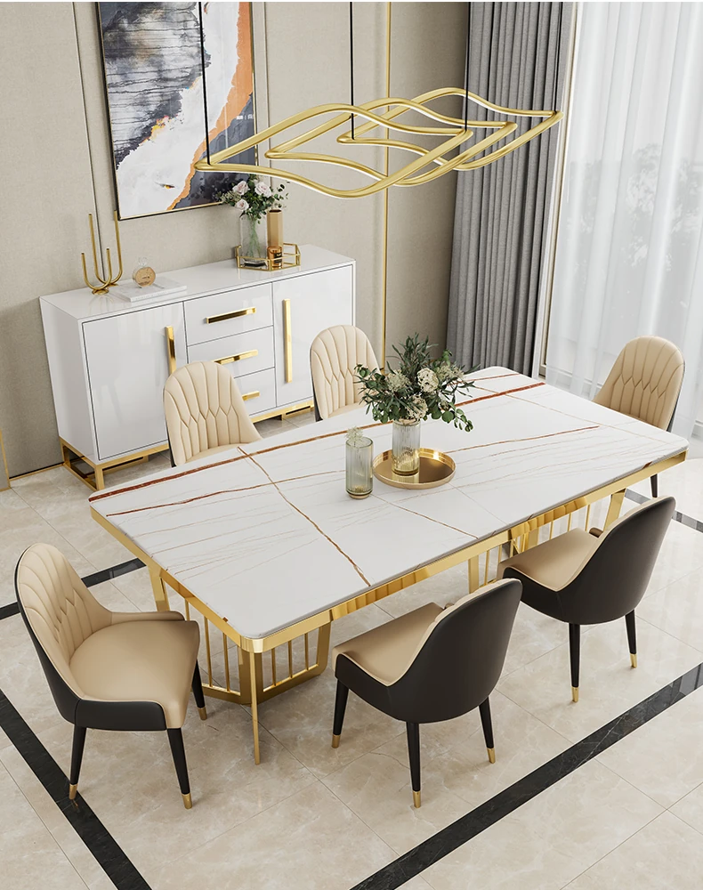 Modern Minimalist Marble Dining Table and Chair Set - Elegant Luxury Design for Small Spaces, Rectangular Nordic Style, Perfect for Home Dining