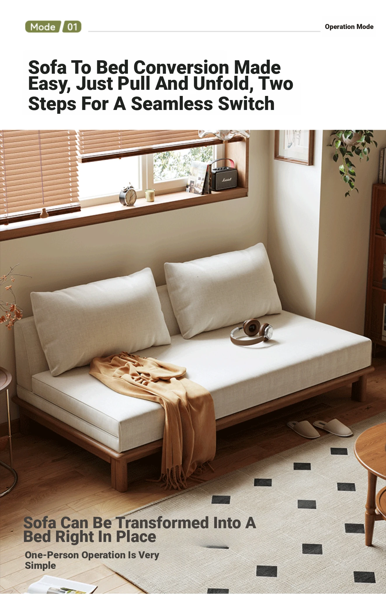 Mu Gong Craft Green Sofa Bed - Versatile 2-in-1 Foldable and Expandable Design for Small Spaces, 2025 New Model