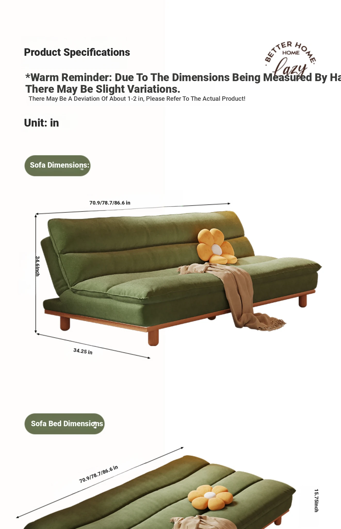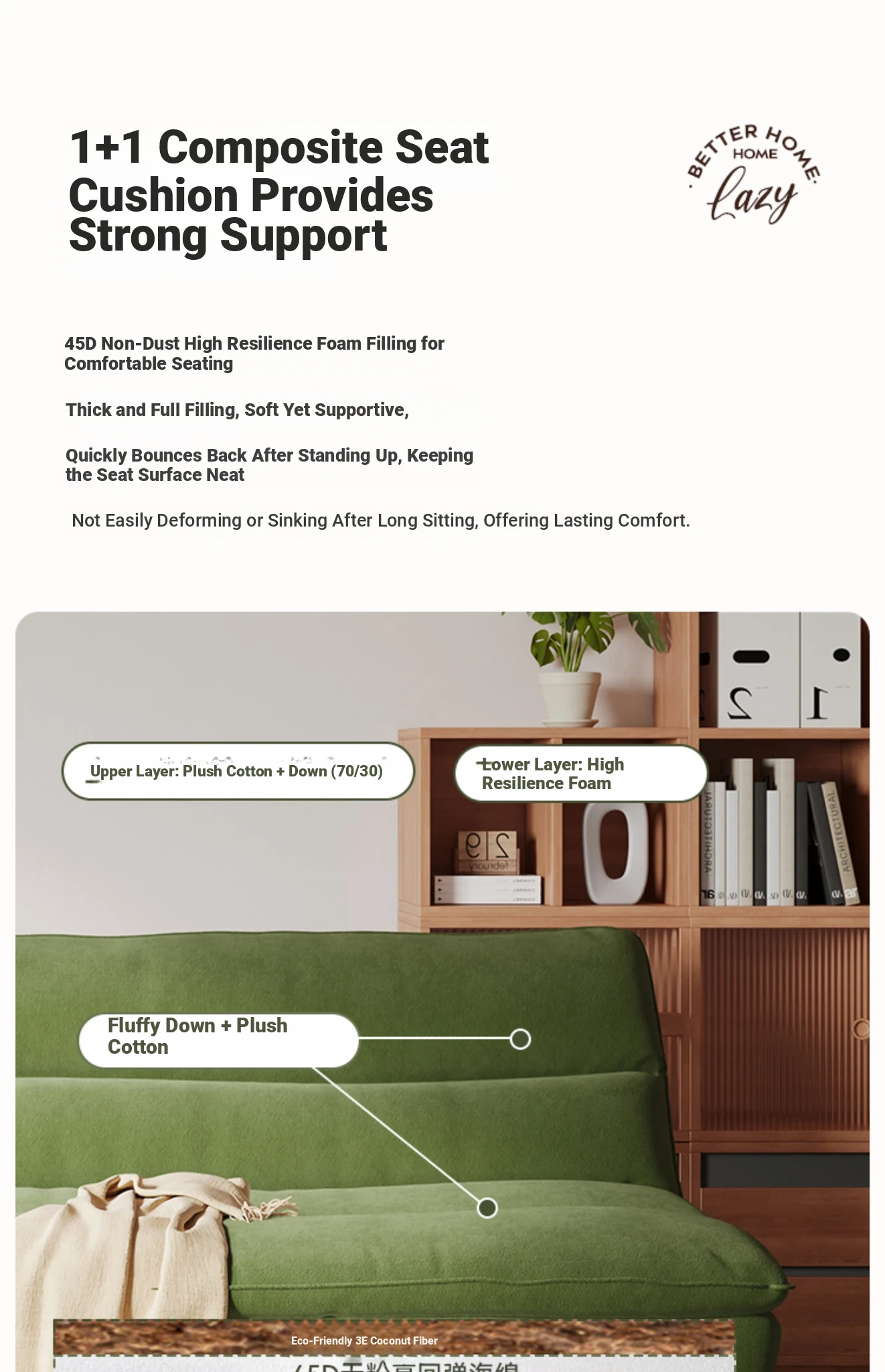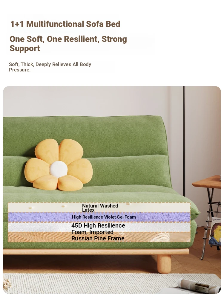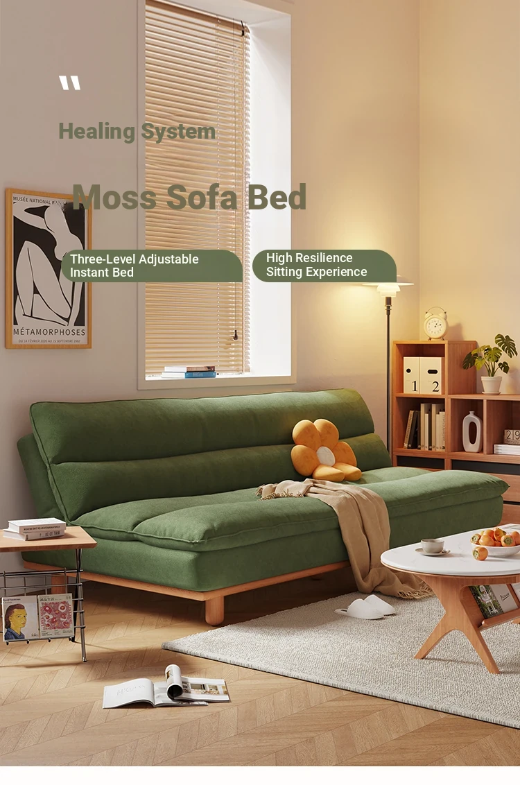 Mugong Crafts Moss Sofa Bed - Versatile 2-in-1 Design for Small Spaces, Stylish and Space-Saving, Double Size with Extendable and Foldable Features - New 2025 Model